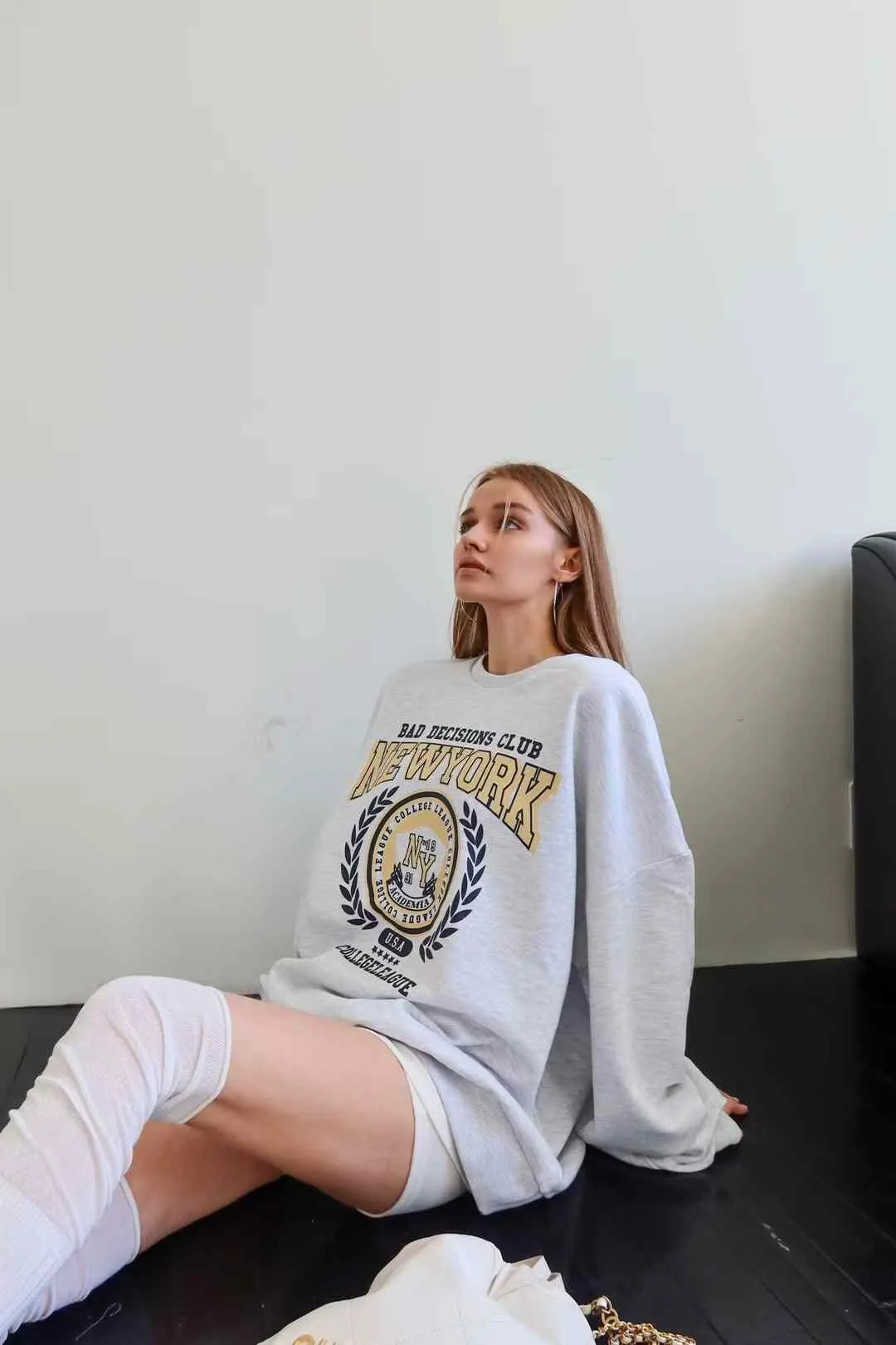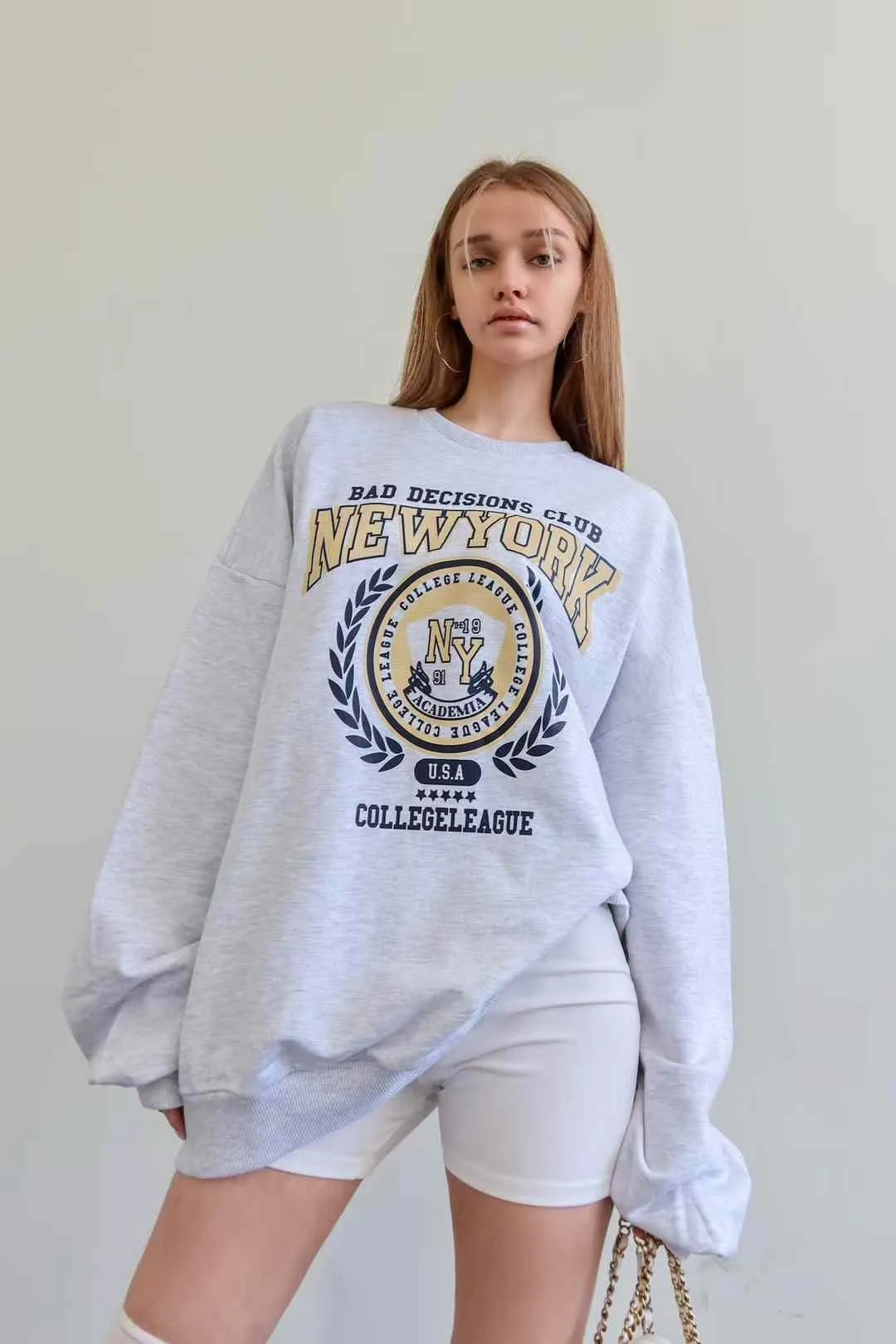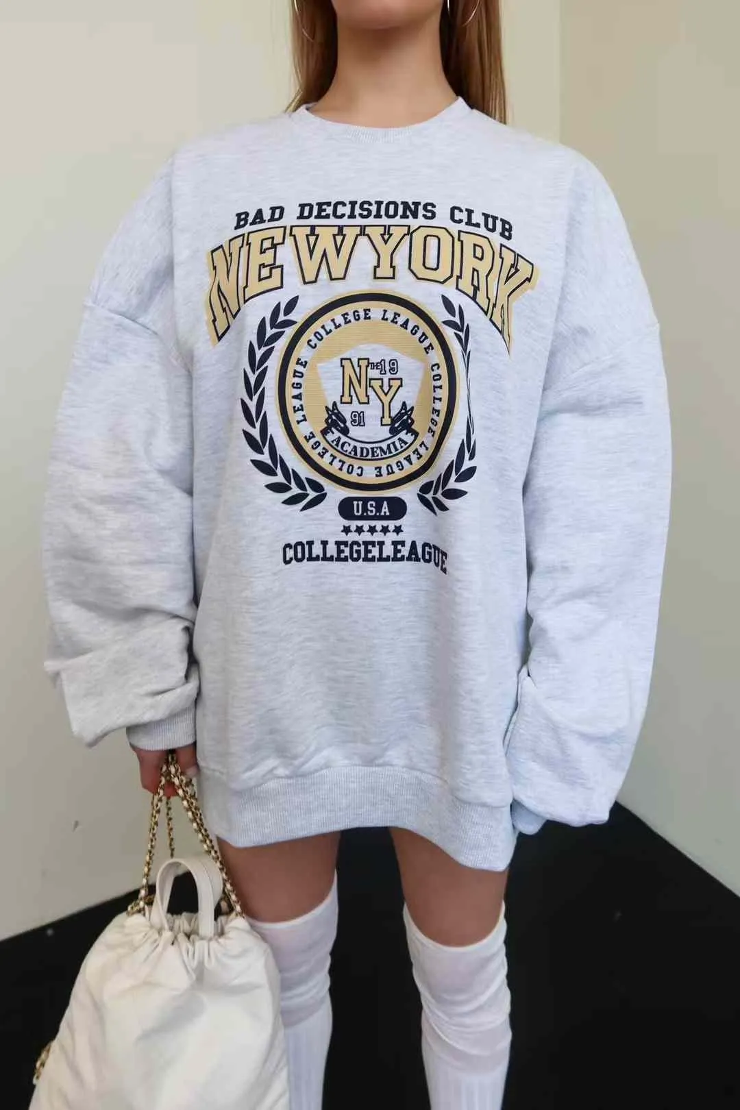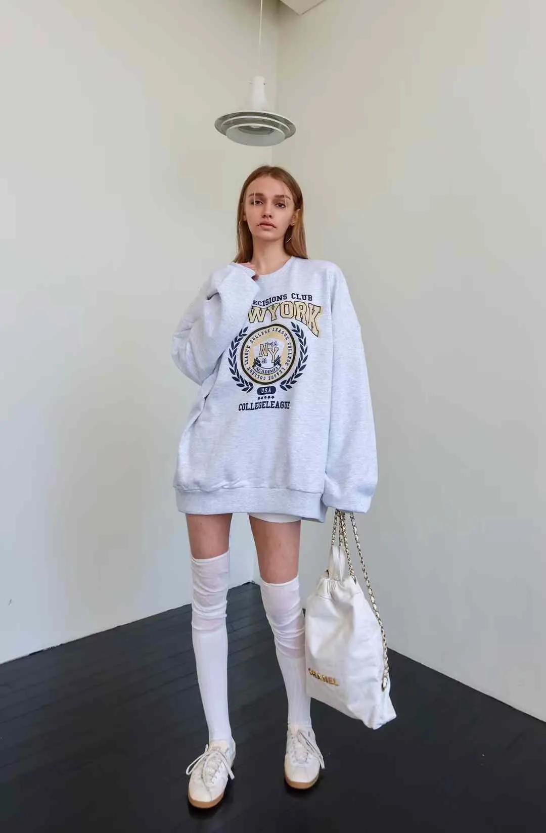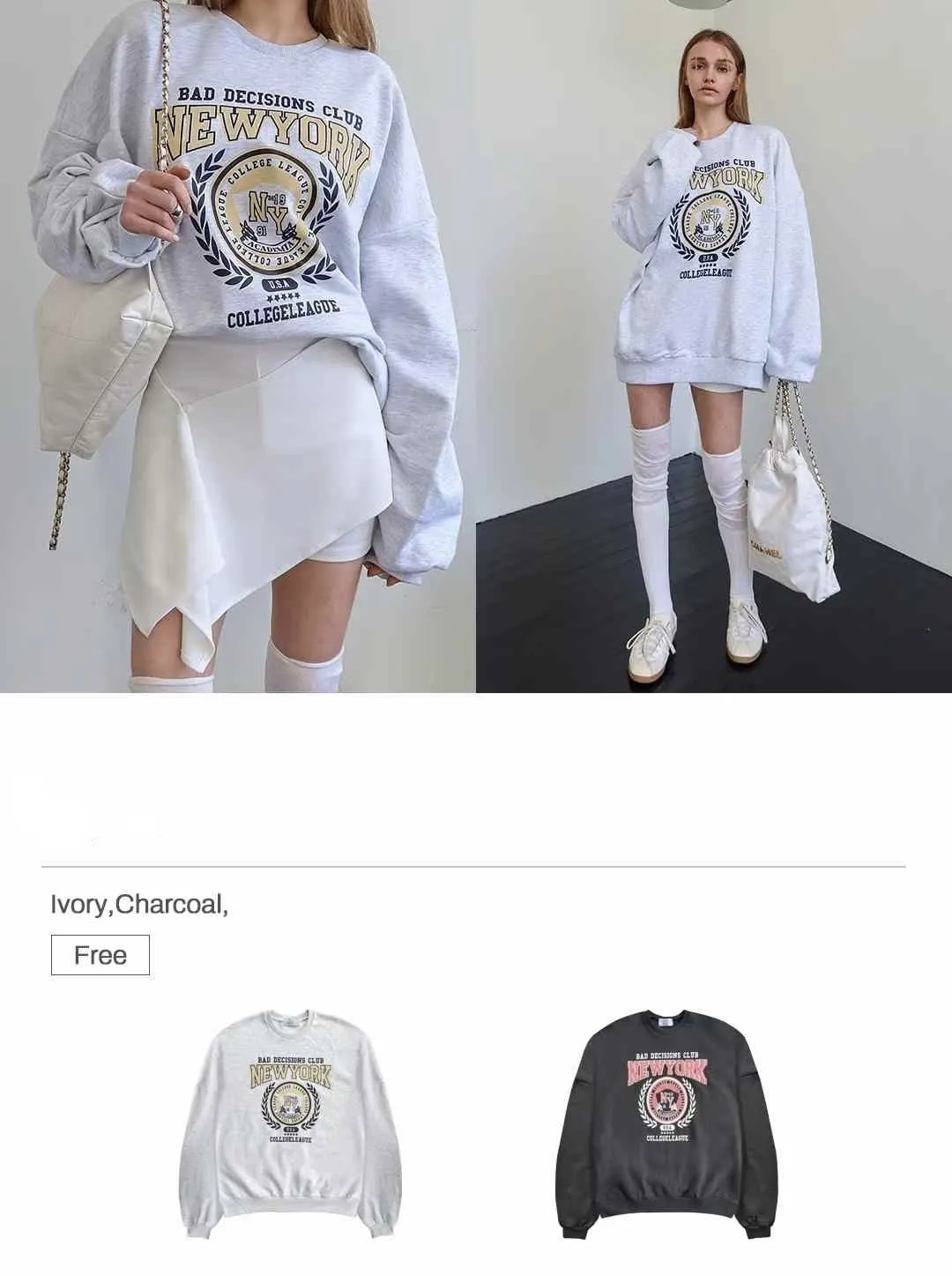 25AG25 NY英字薄毛巾中長版大學T 2色
