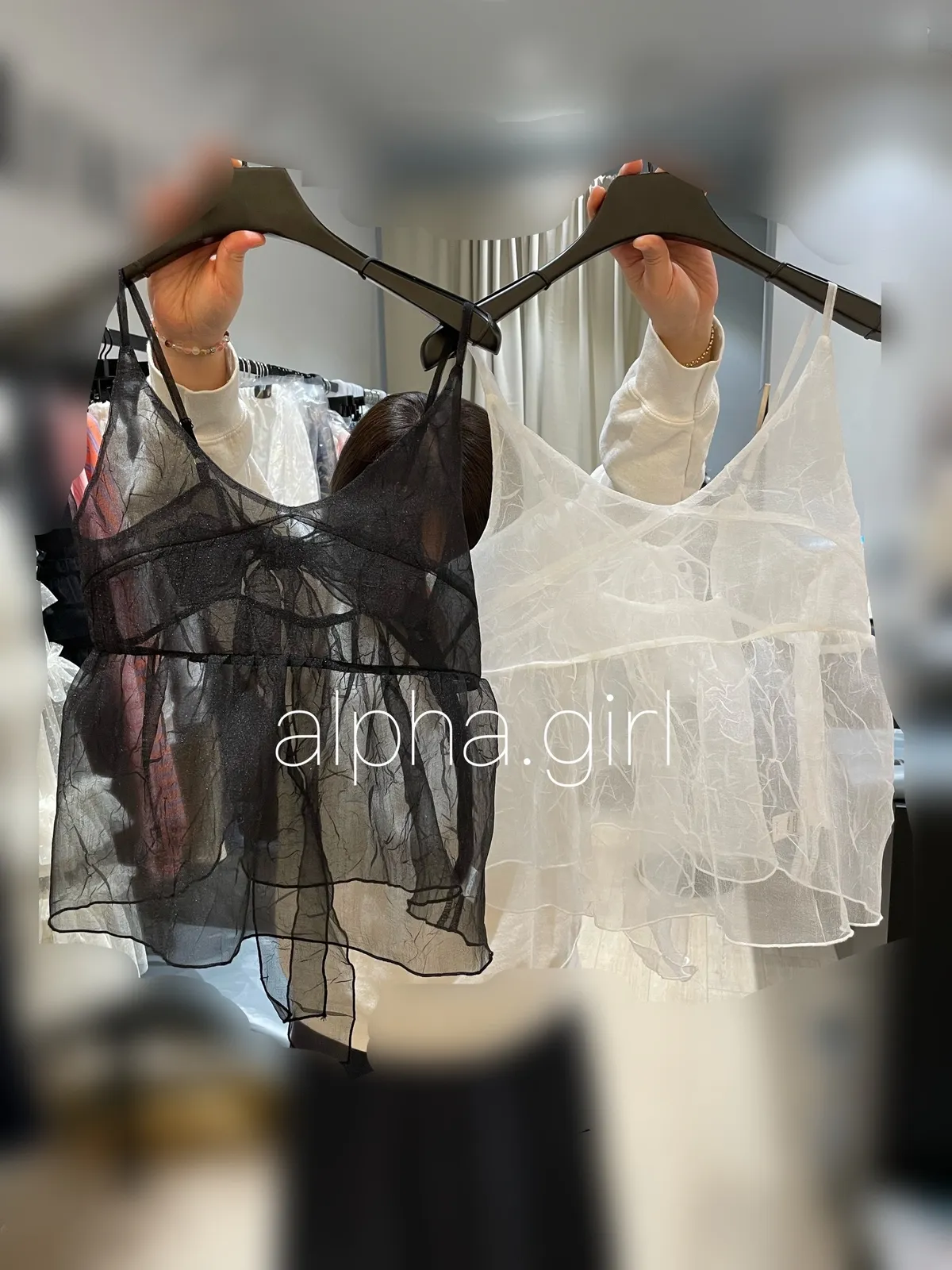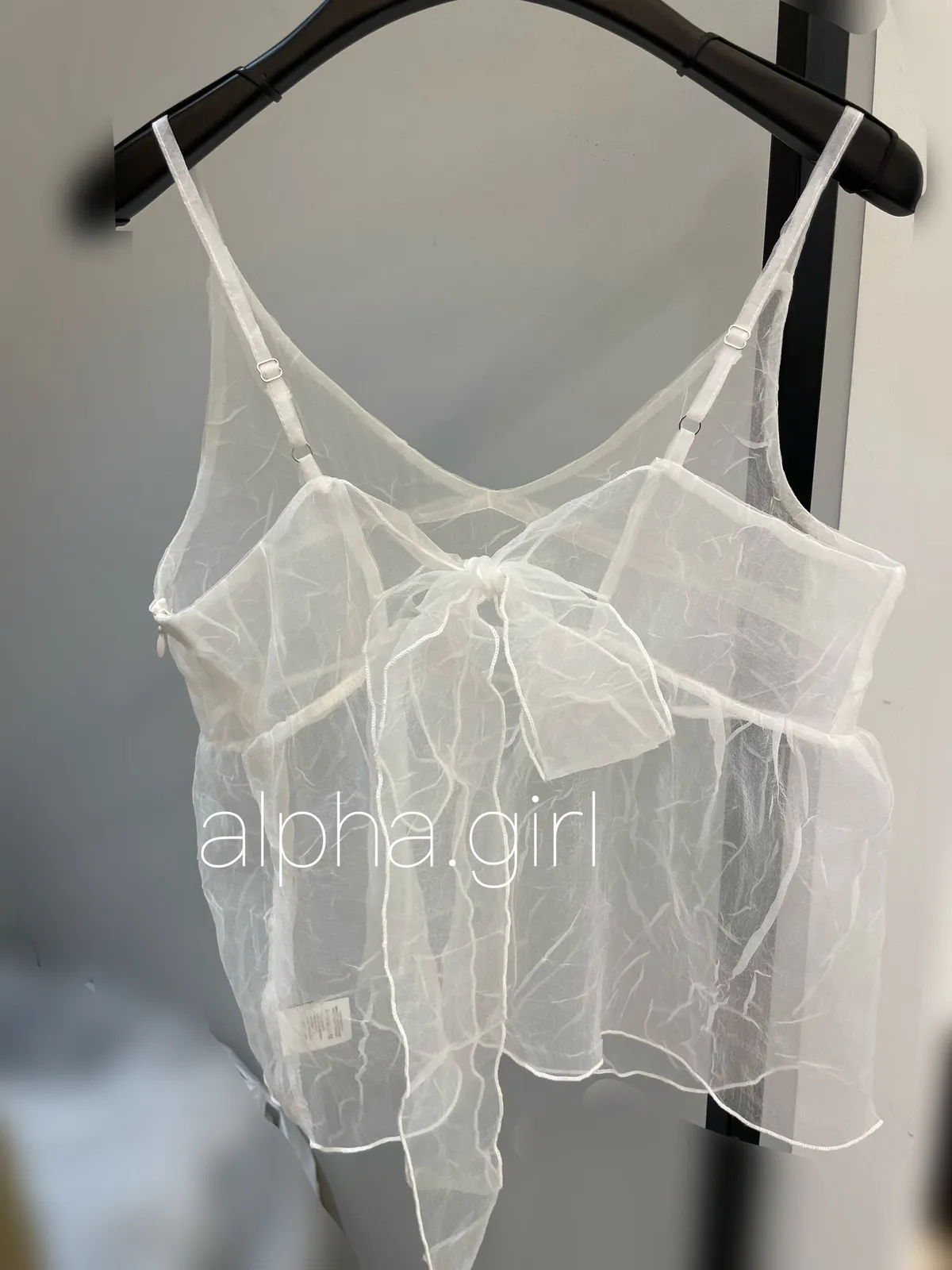 25AS14 透透紗後綁帶蝴蝶結背心 2色