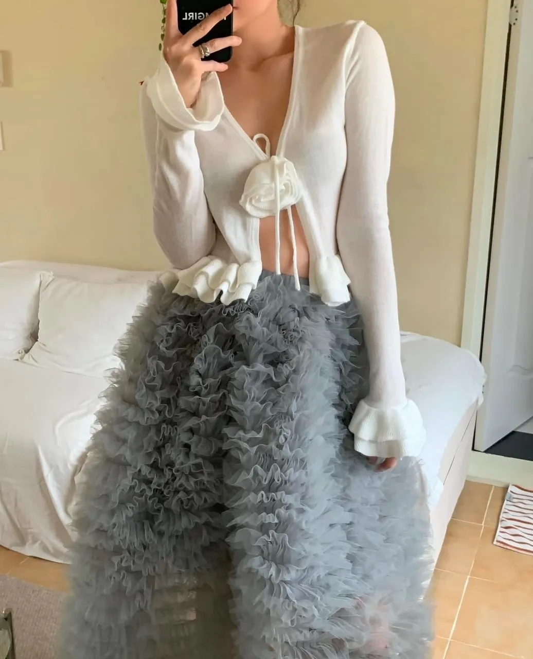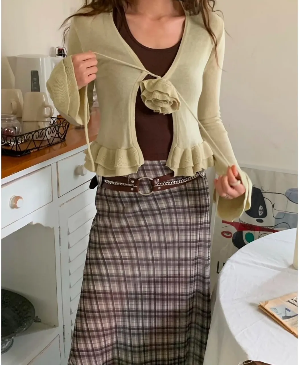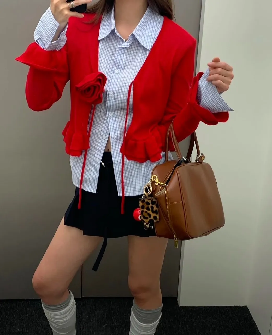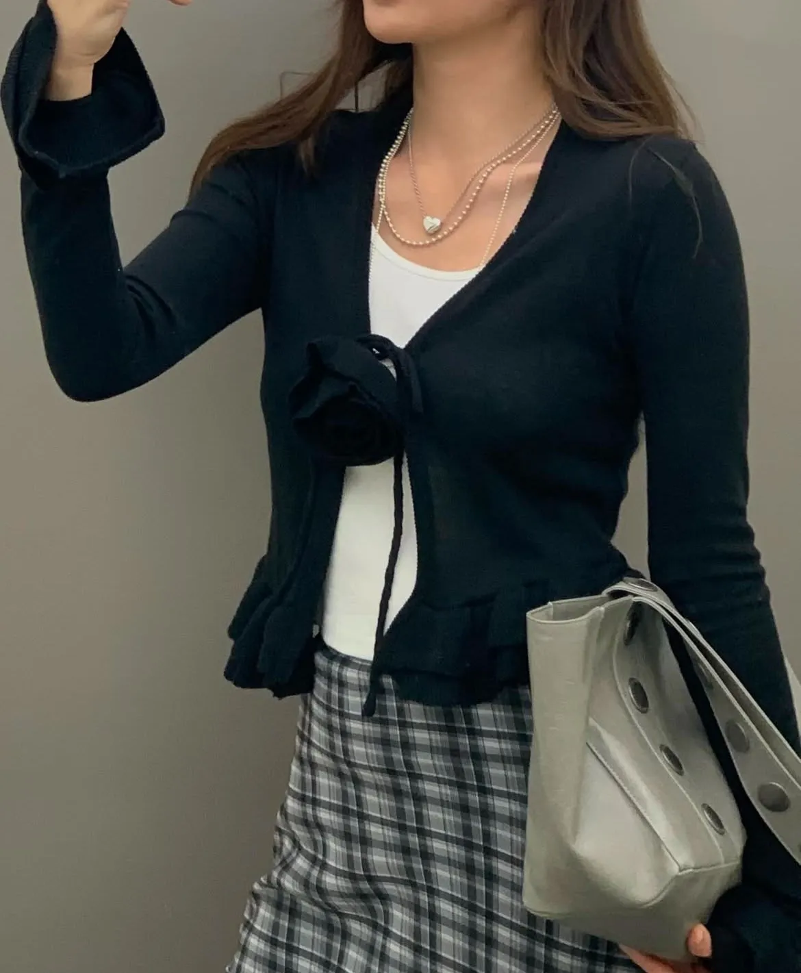 25BS32 玫瑰花花荷葉針織罩衫 4色