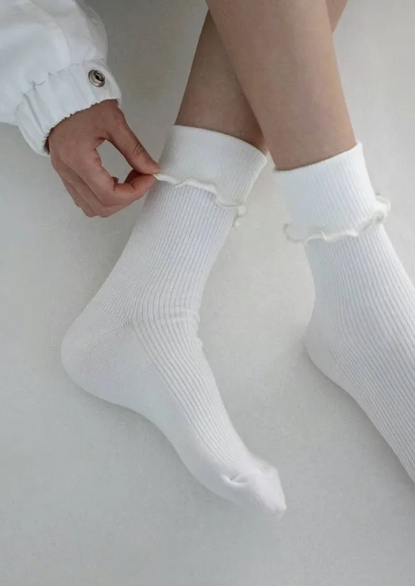 25CE07 木耳滾邊螺紋好穿襪襪 5色