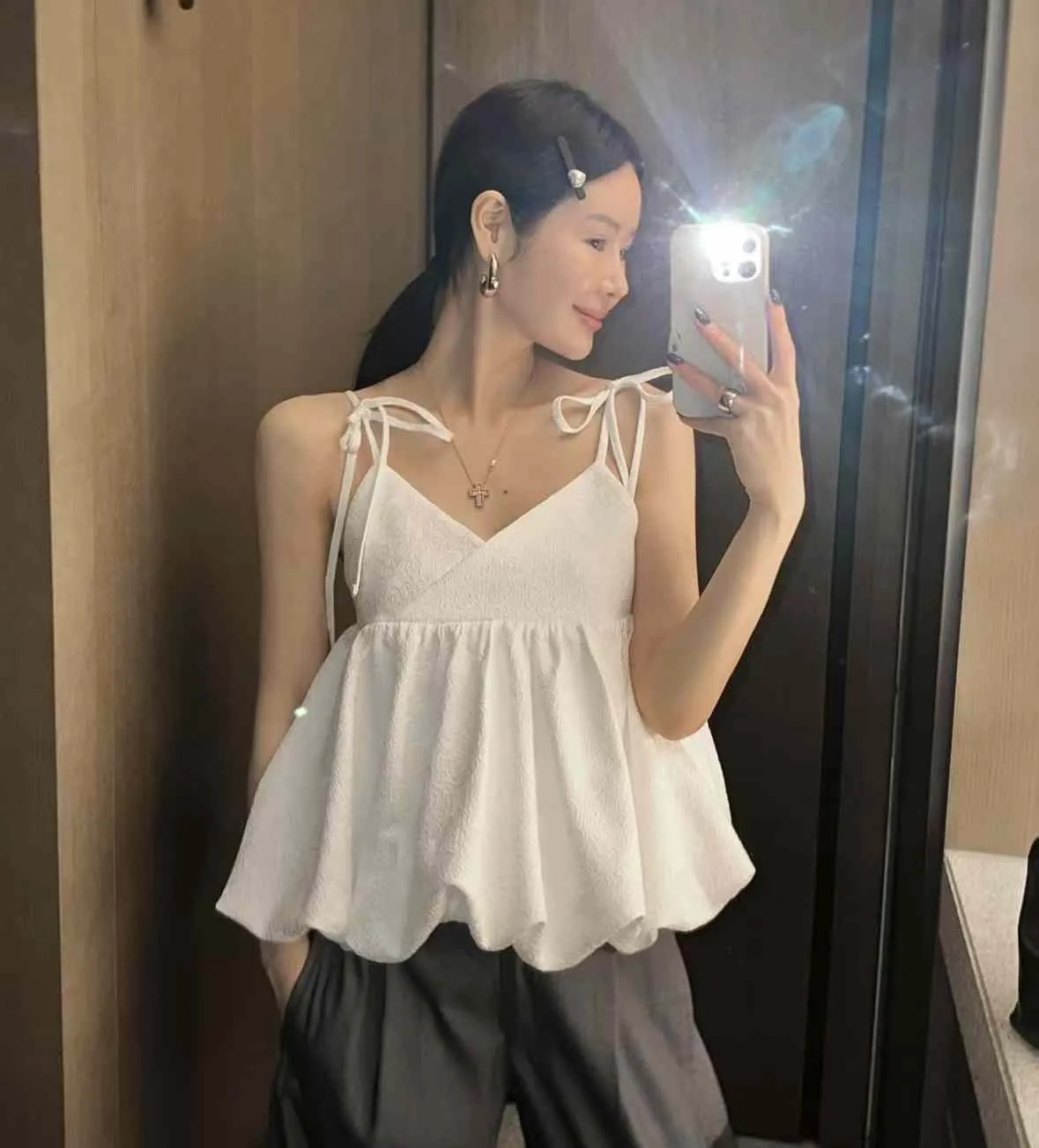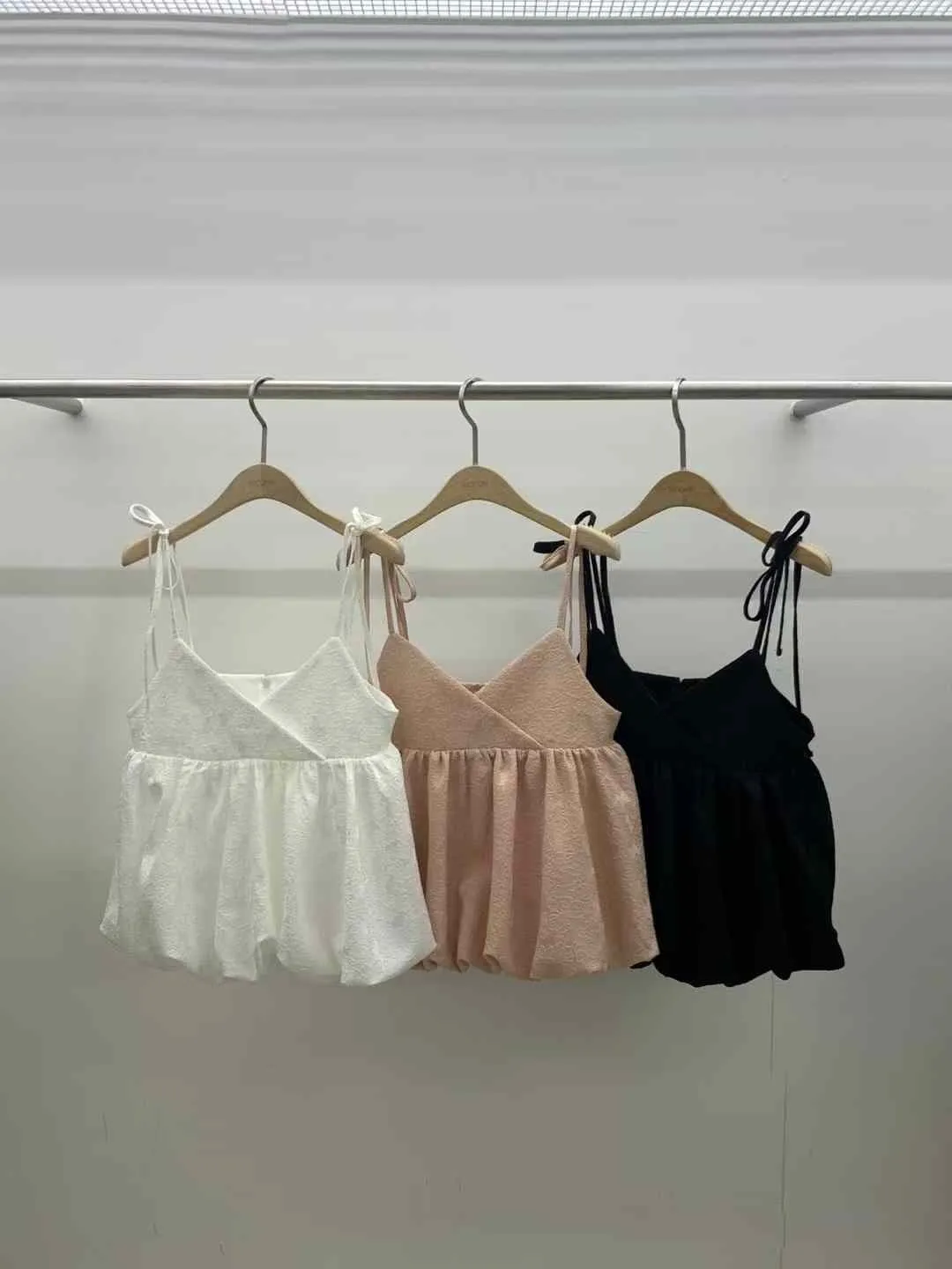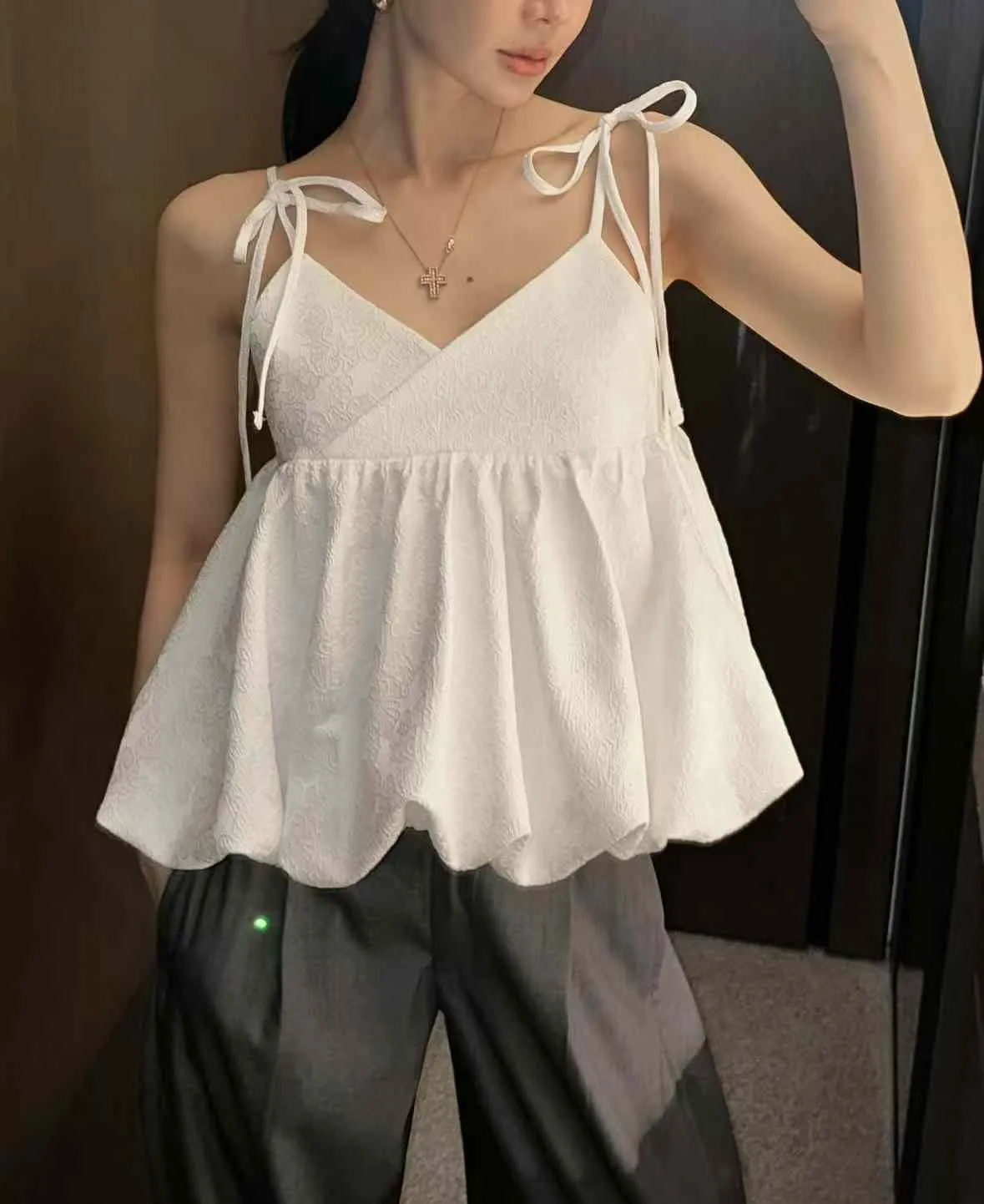 25CH21 繡花雲朵綁帶背心上衣 3色