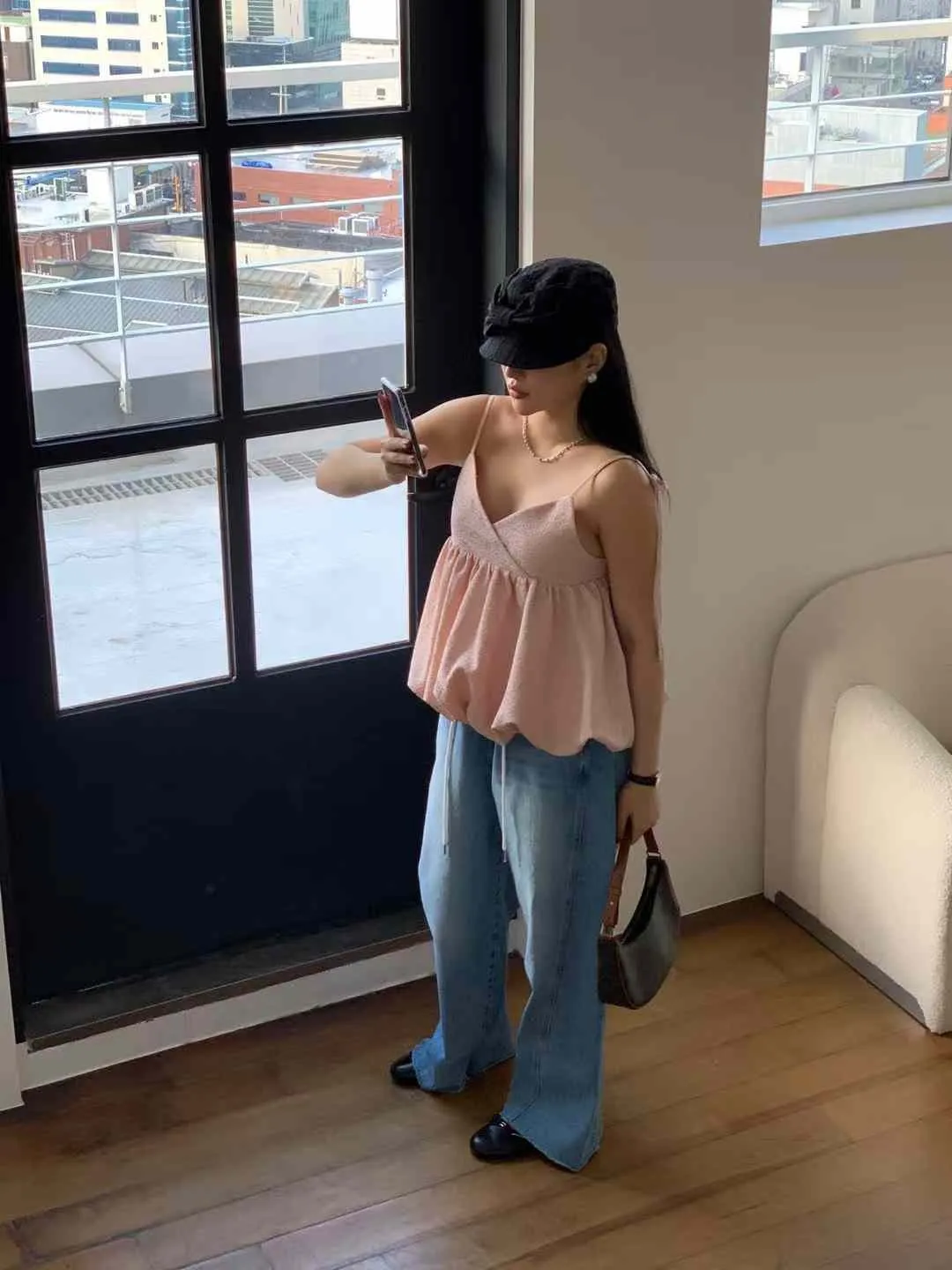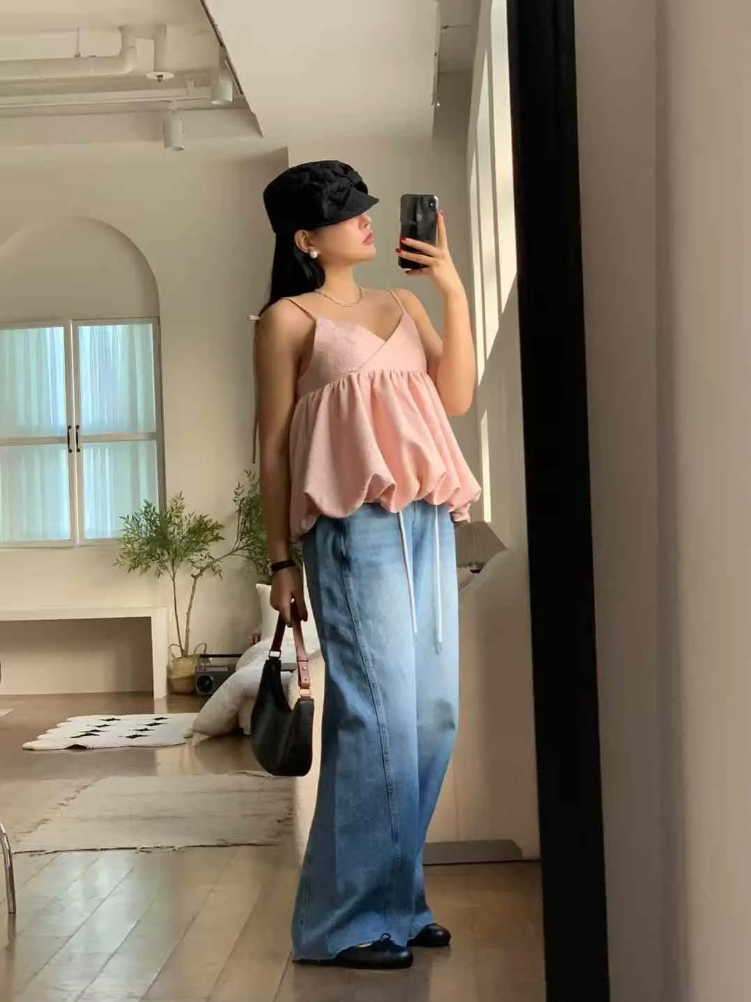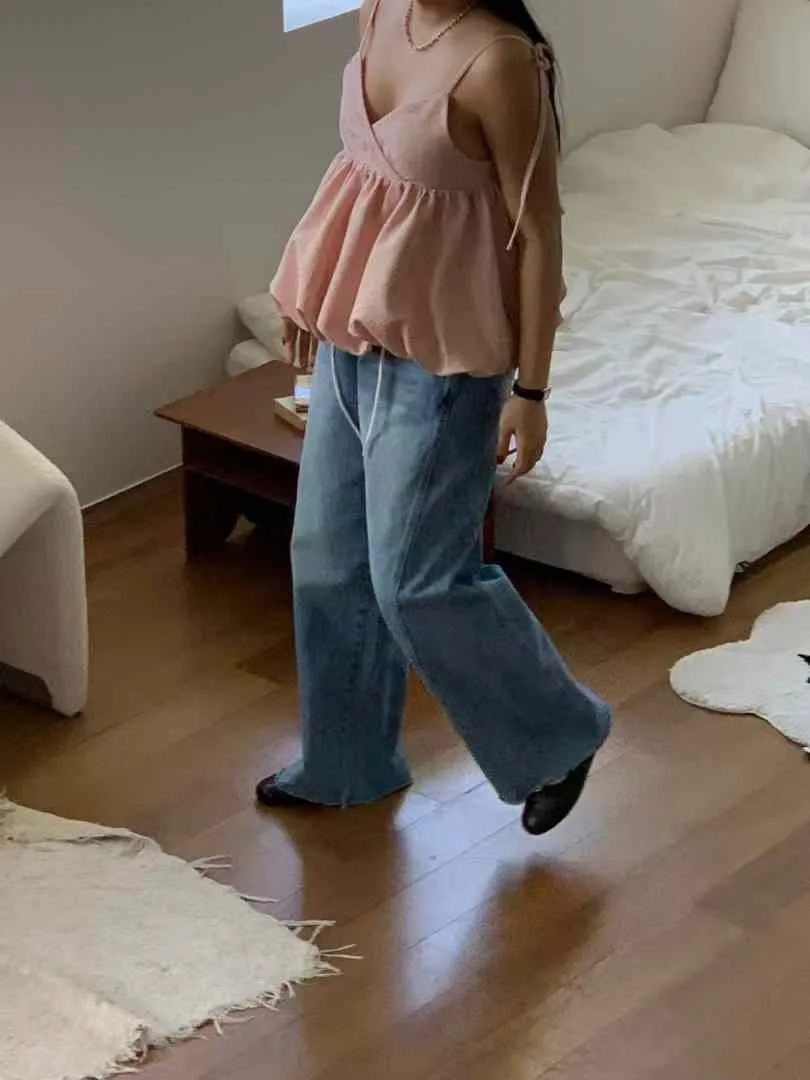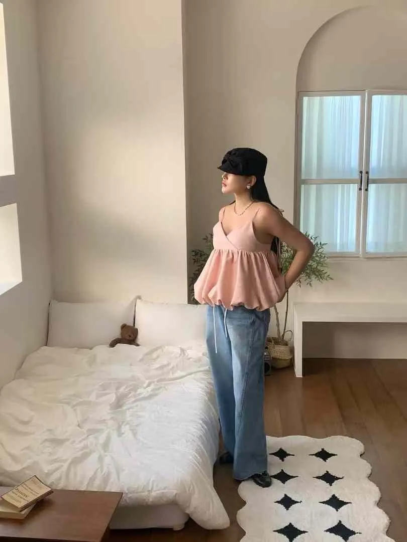 25CH21 繡花雲朵綁帶背心上衣 3色