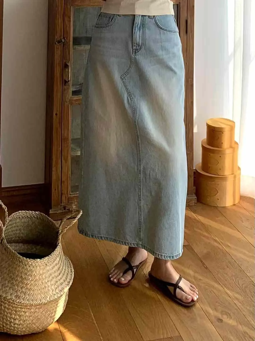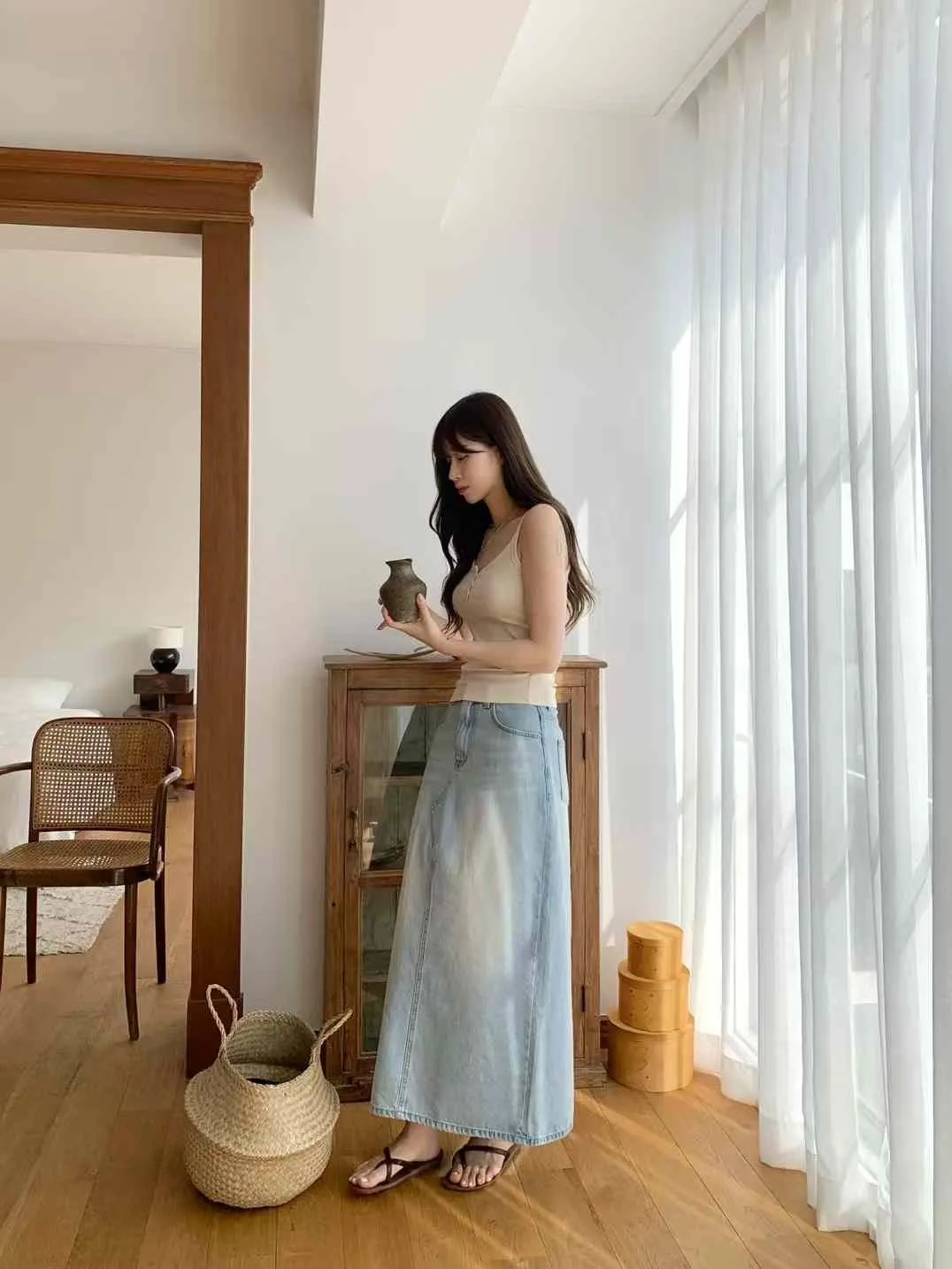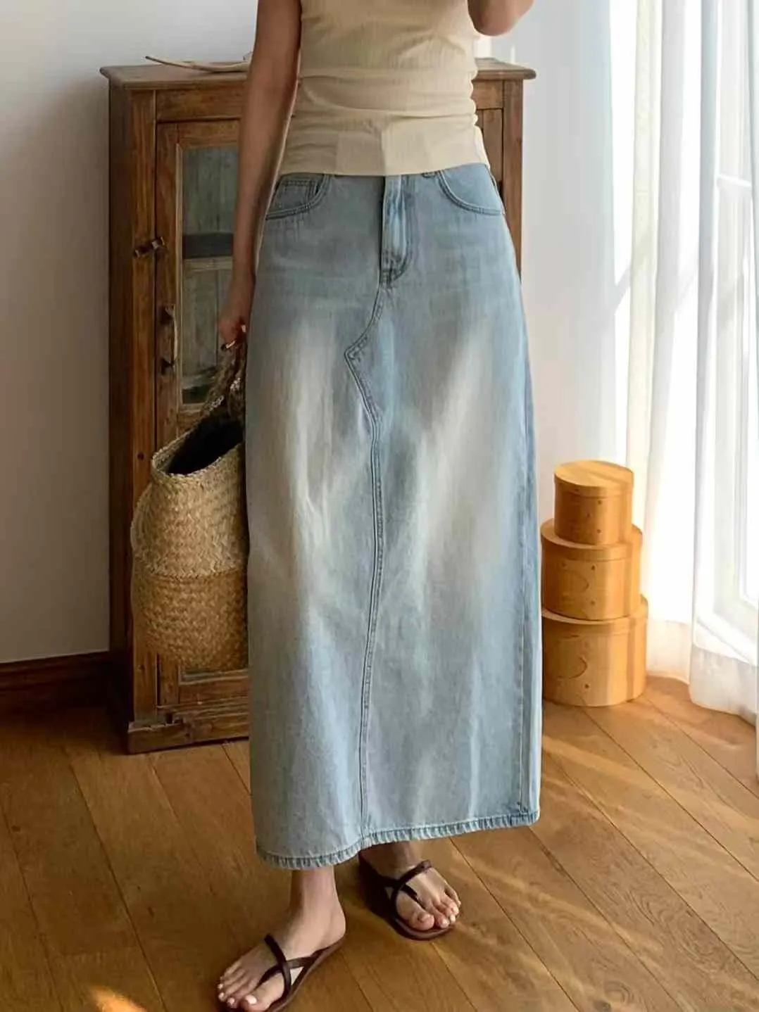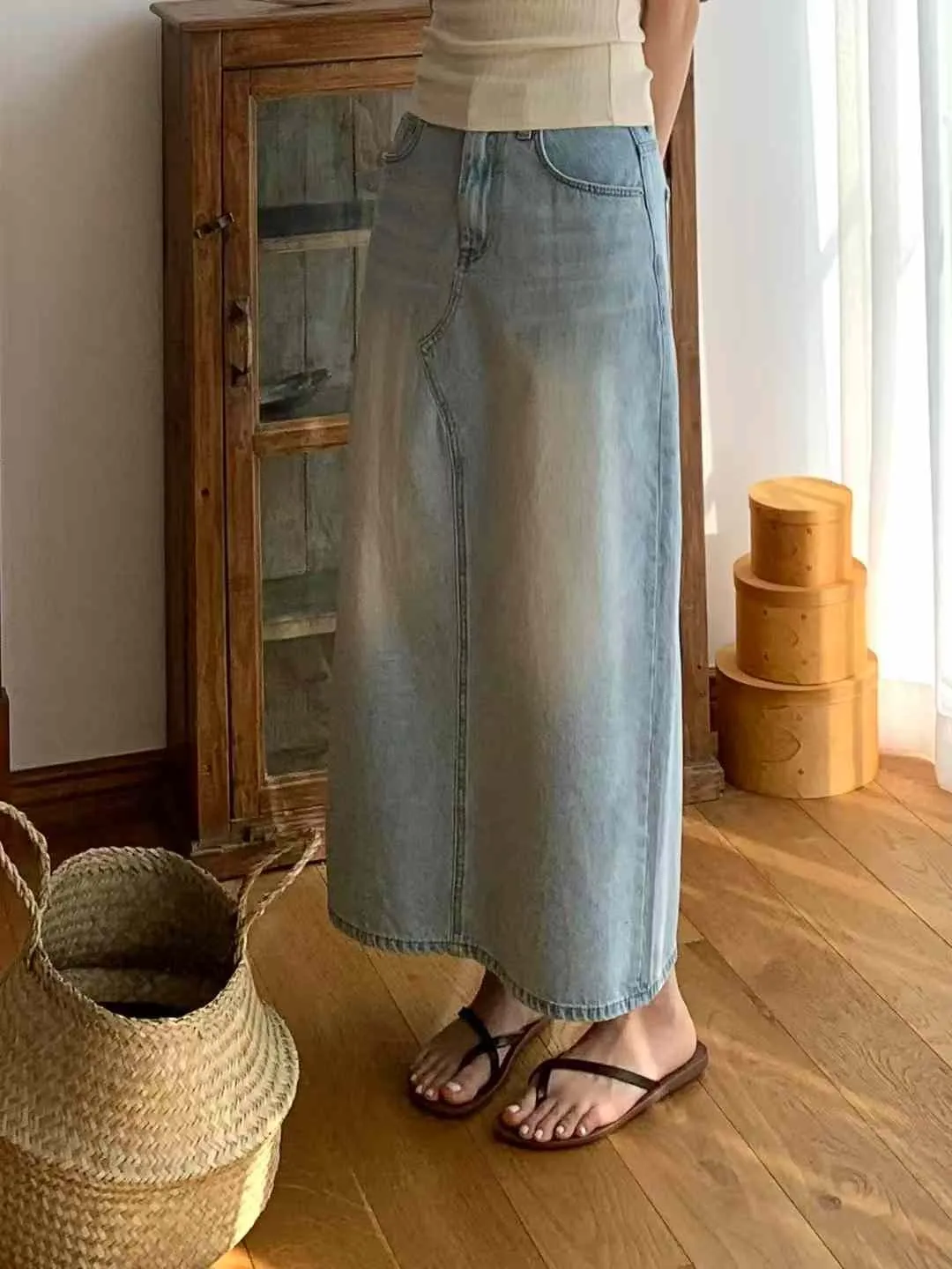 25CL14 中腰水洗色半身牛仔長裙 2色 SM