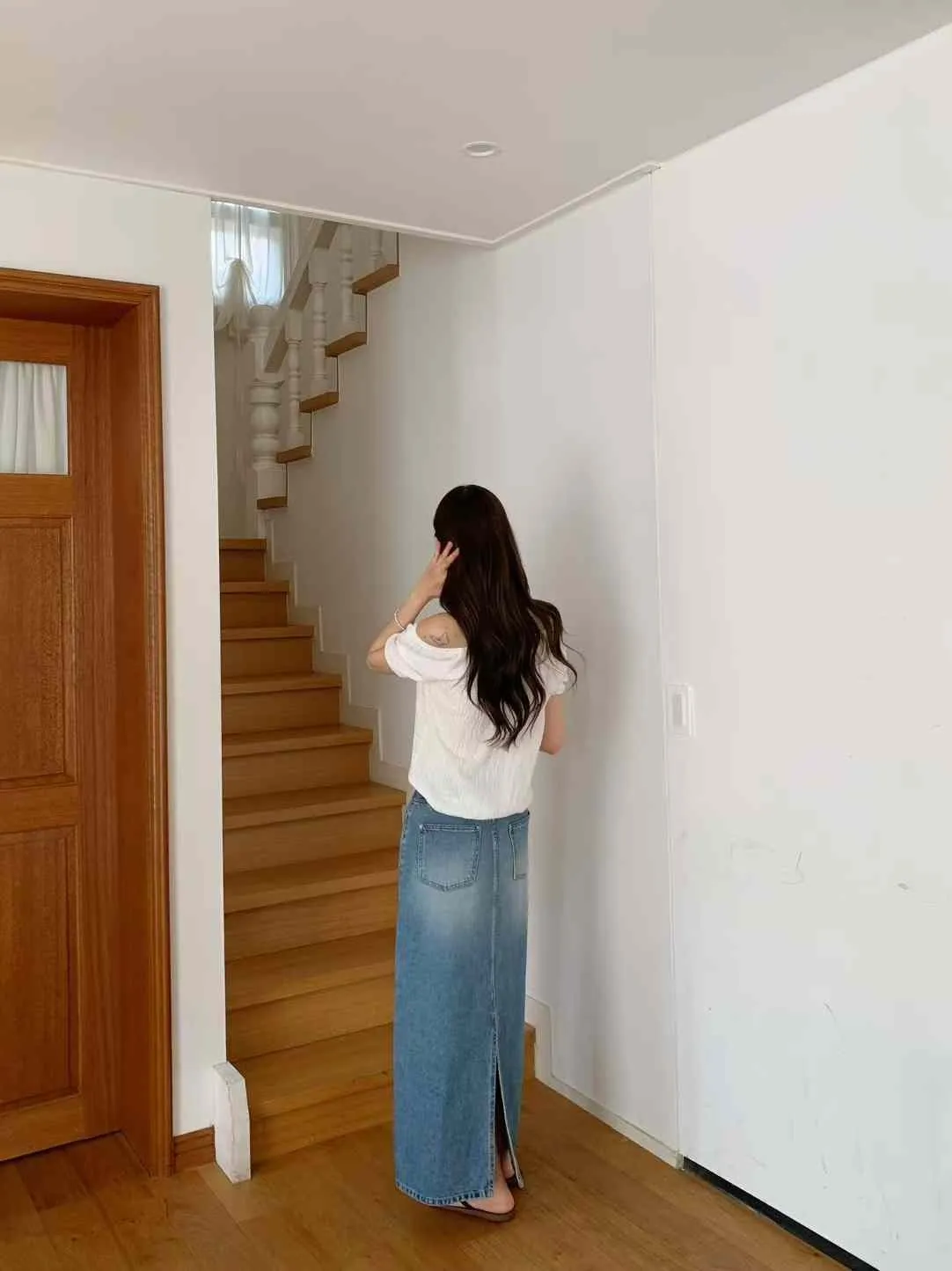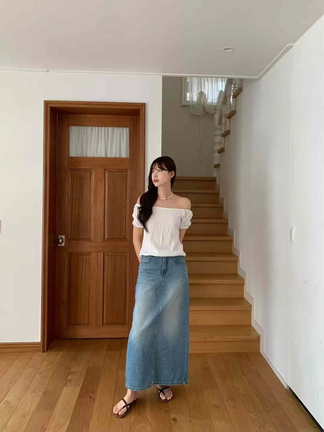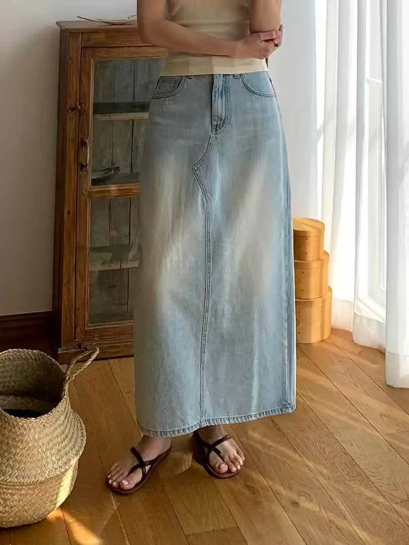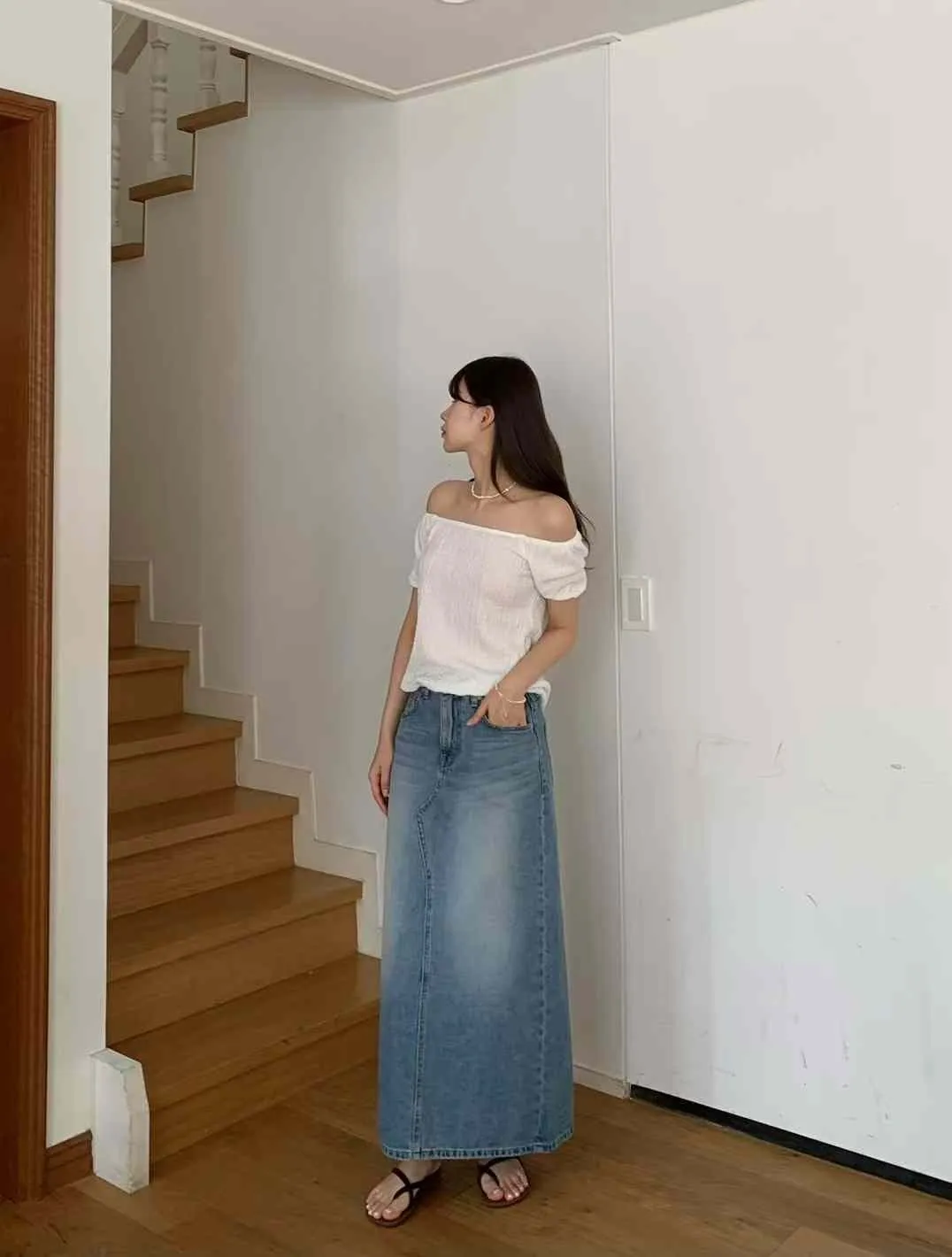 25CL14 中腰水洗色半身牛仔長裙 2色 SM