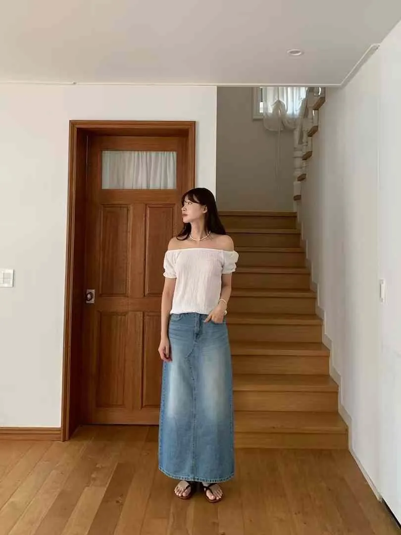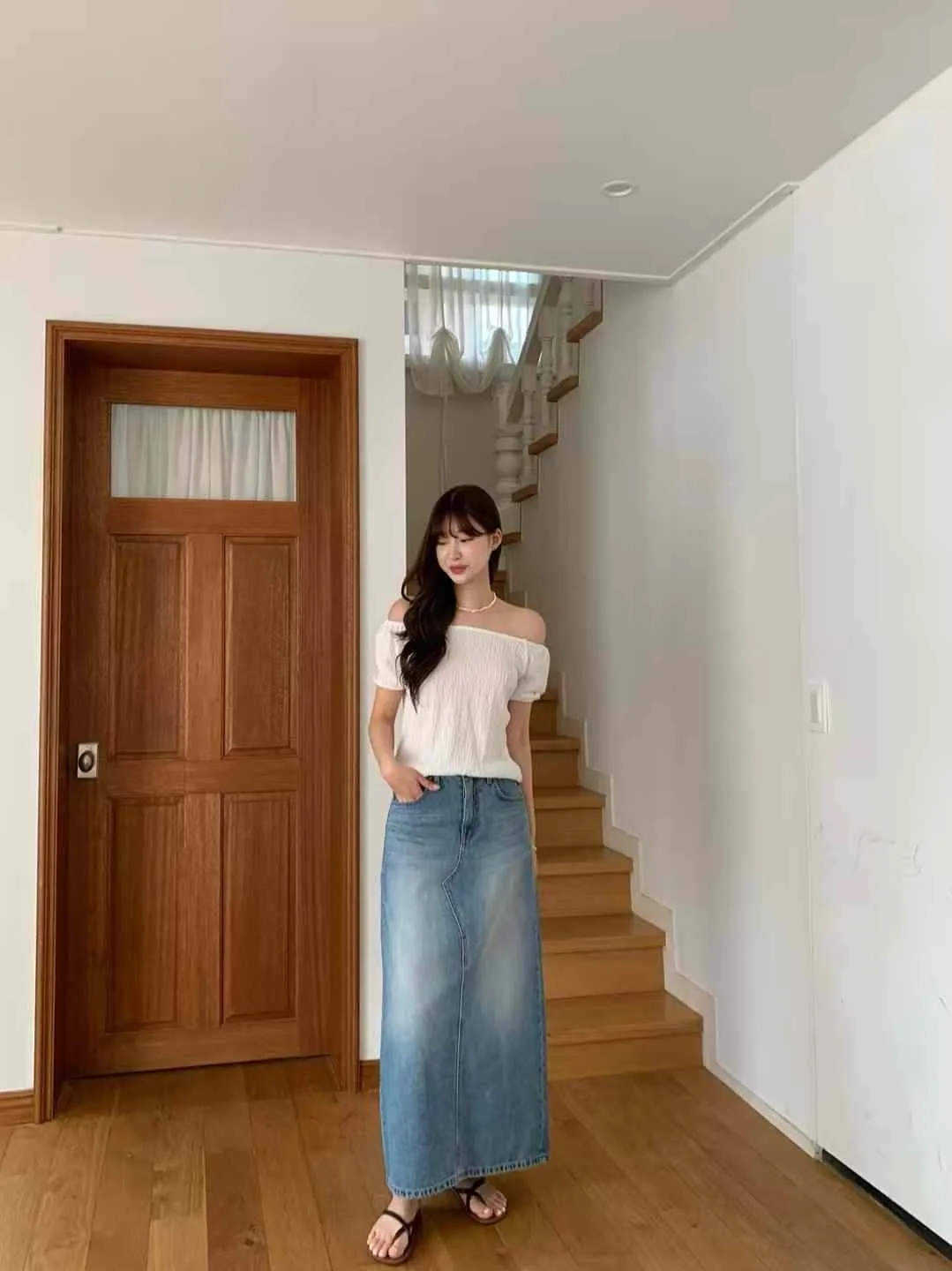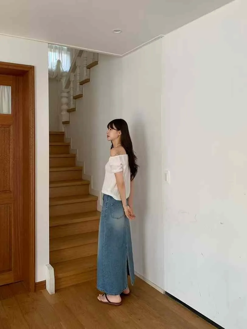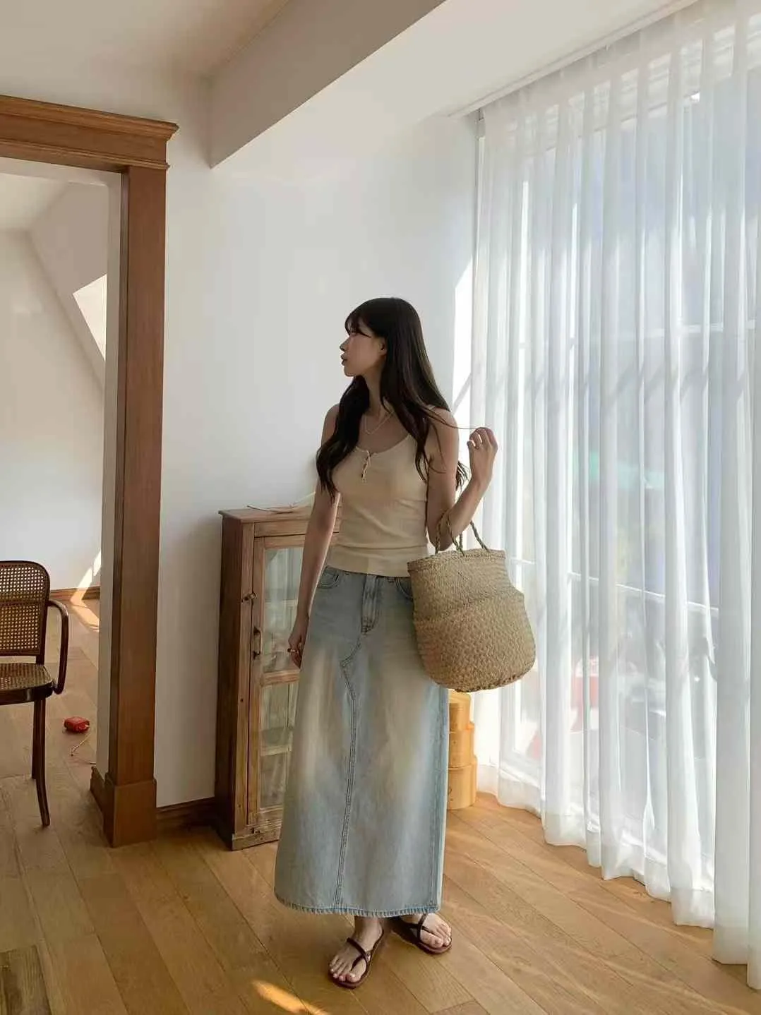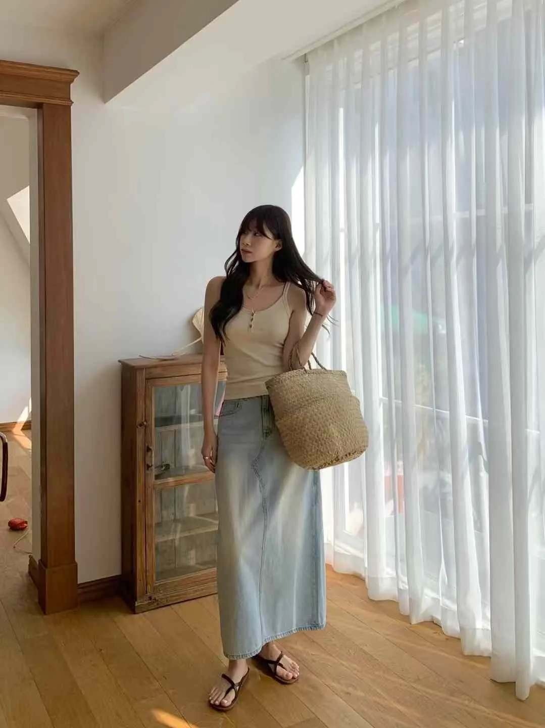 25CL14 中腰水洗色半身牛仔長裙 2色 SM