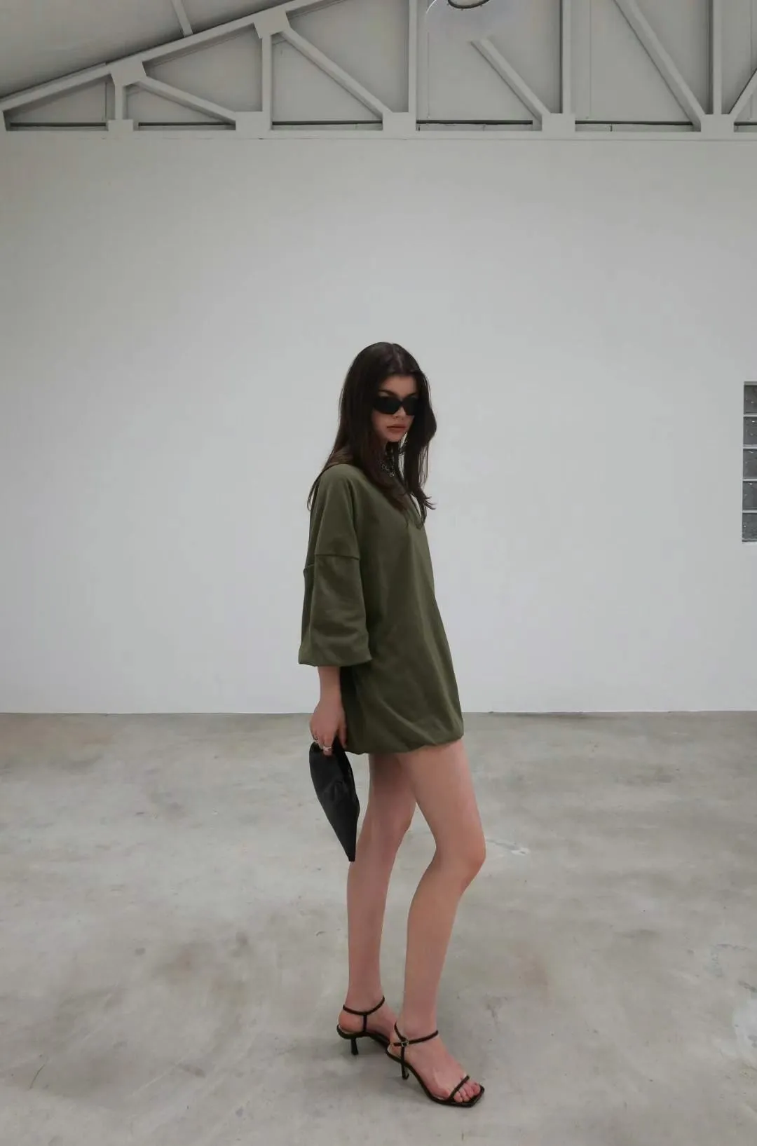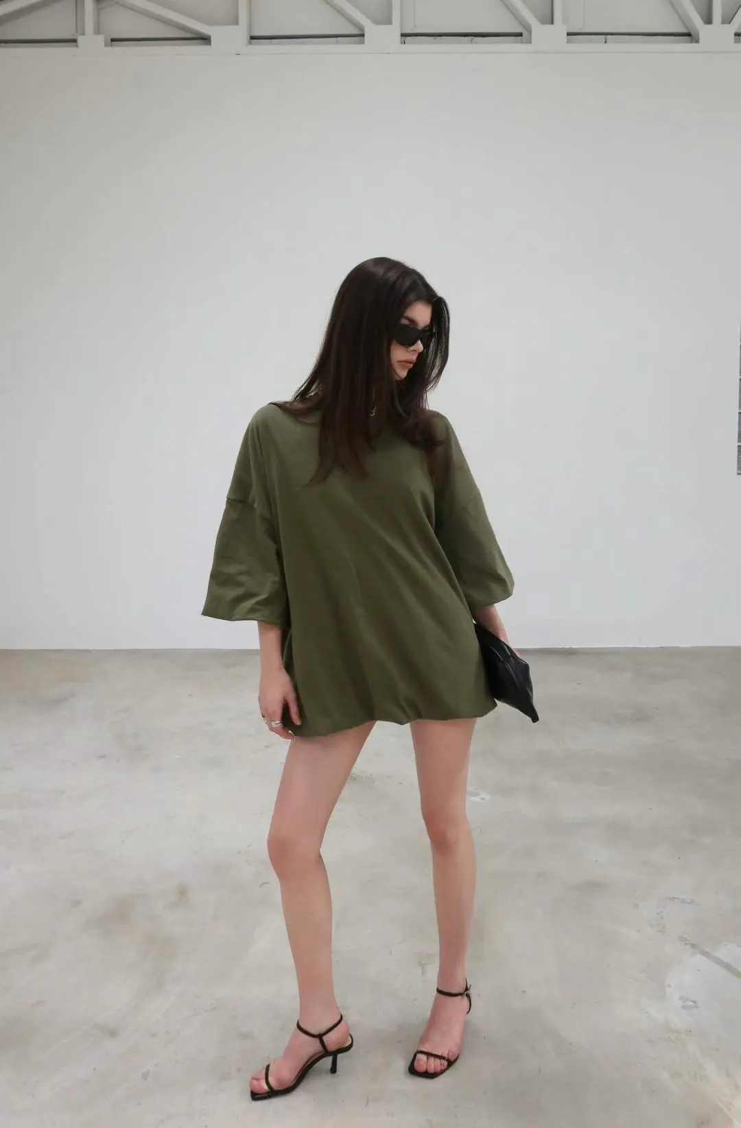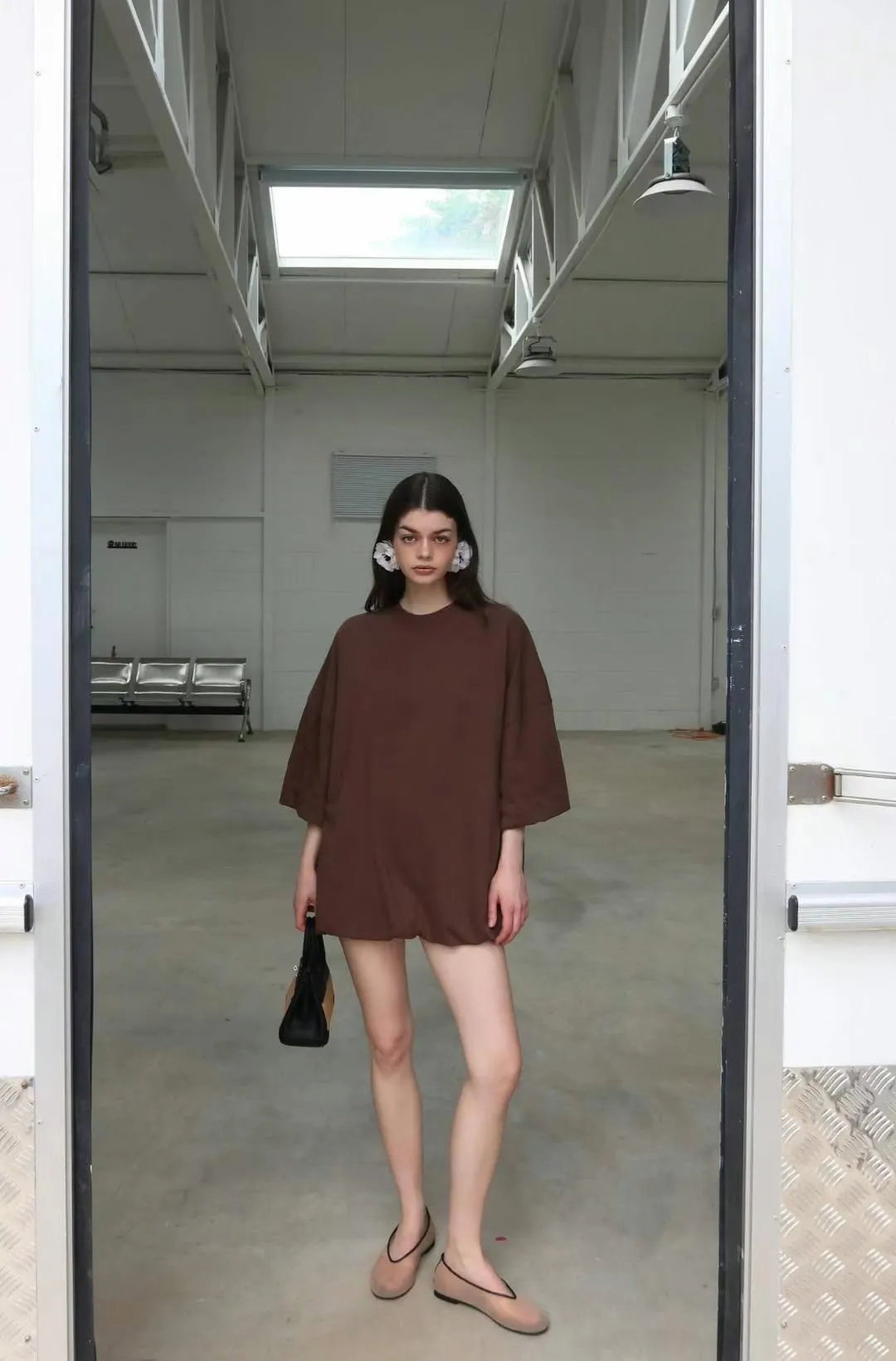 25ES11 歐美時髦寬鬆中長版短T 2色