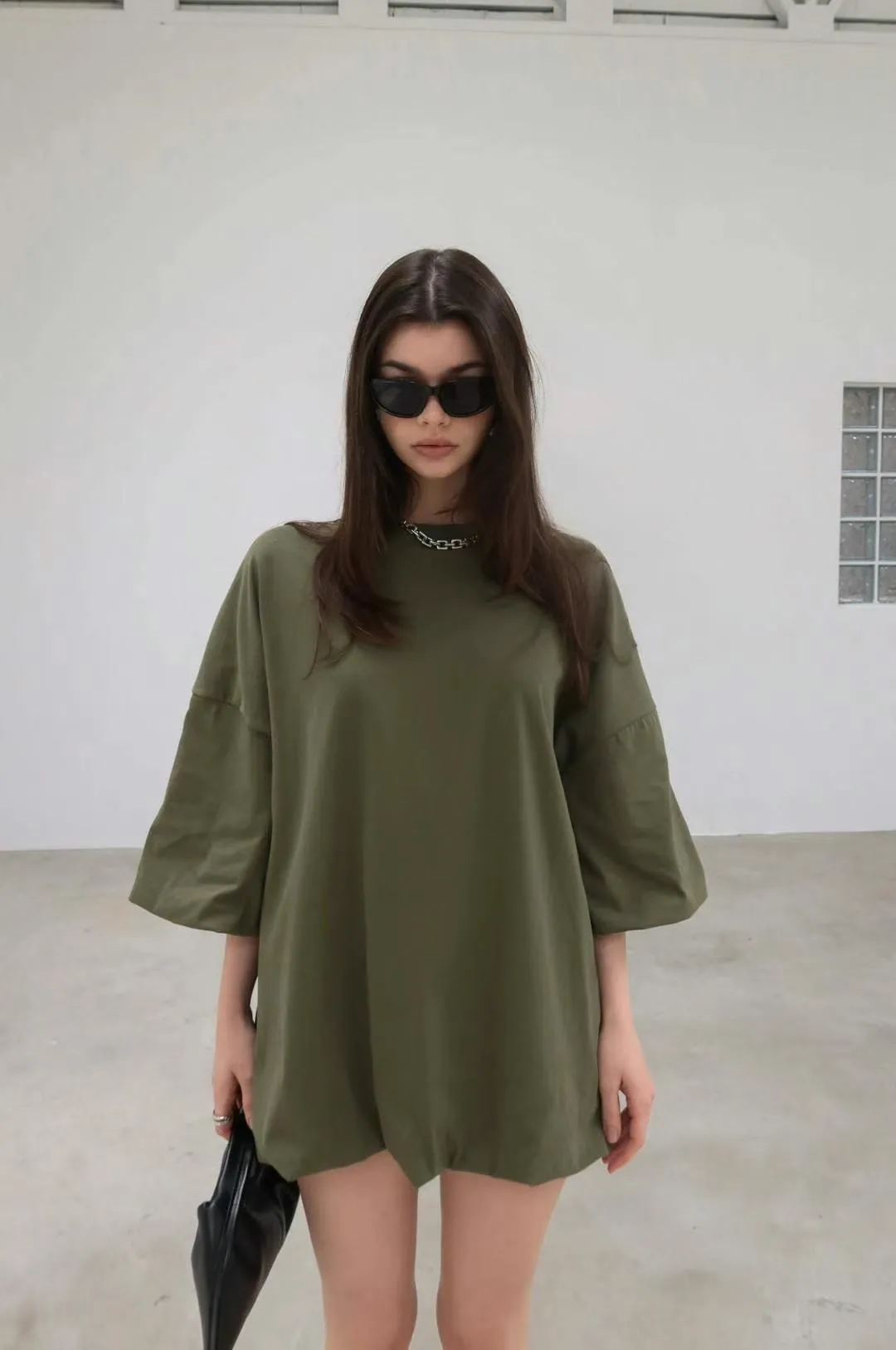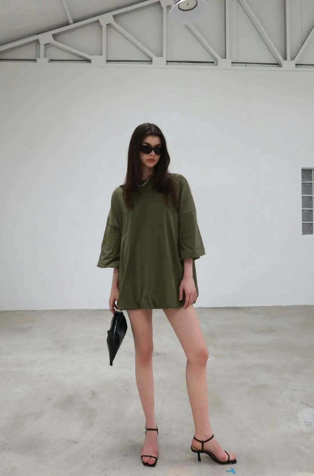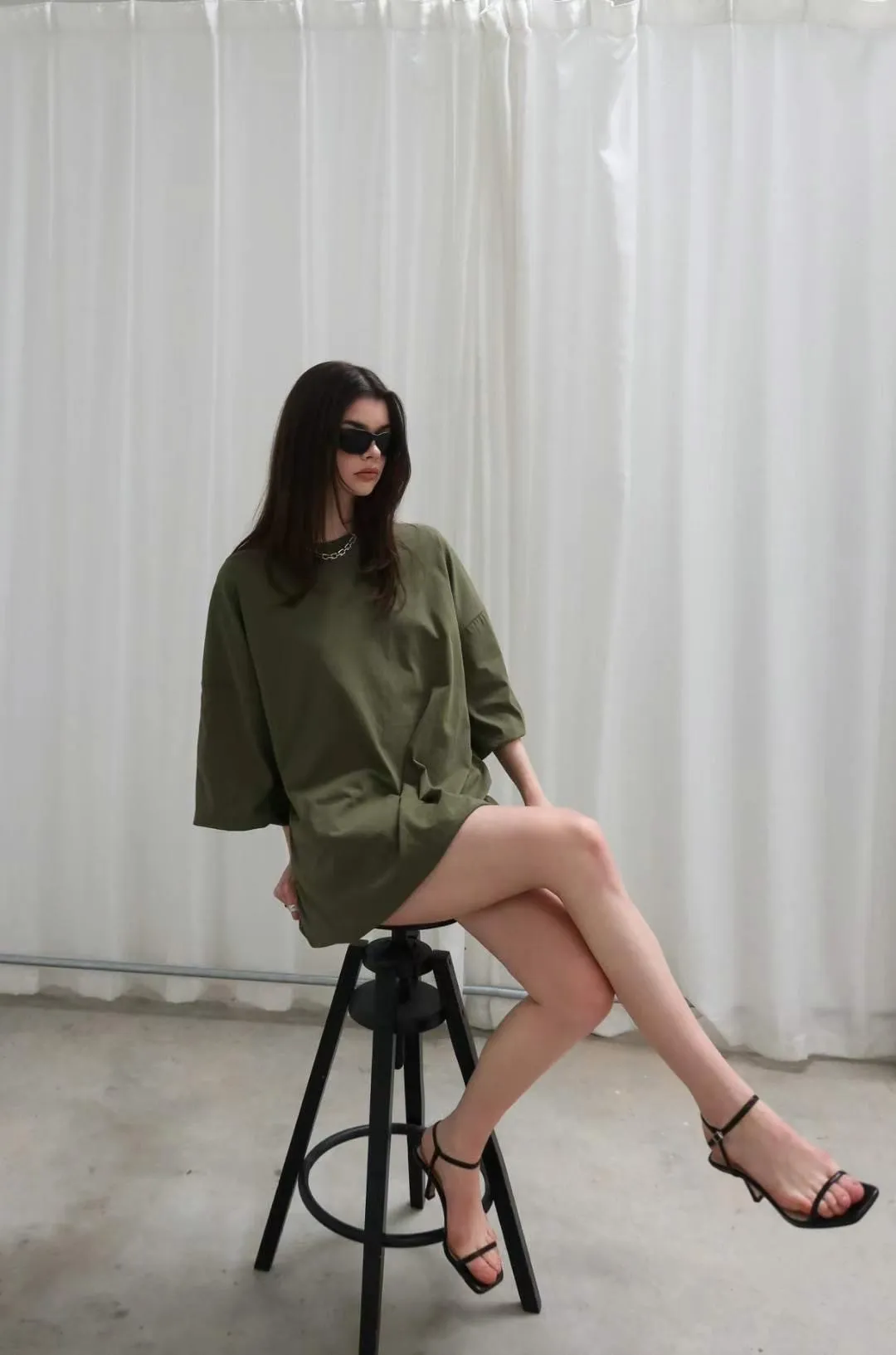 25ES11 歐美時髦寬鬆中長版短T 2色