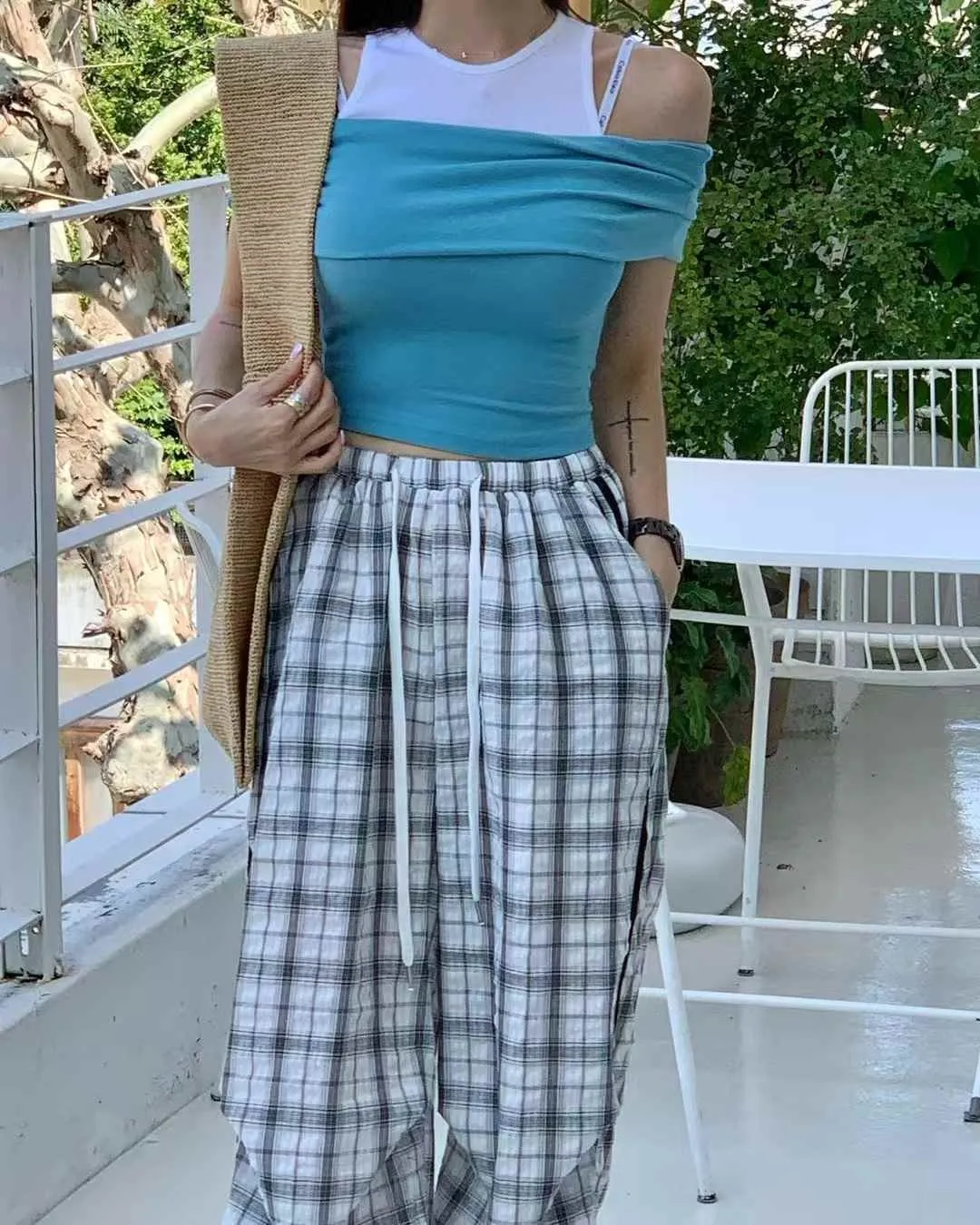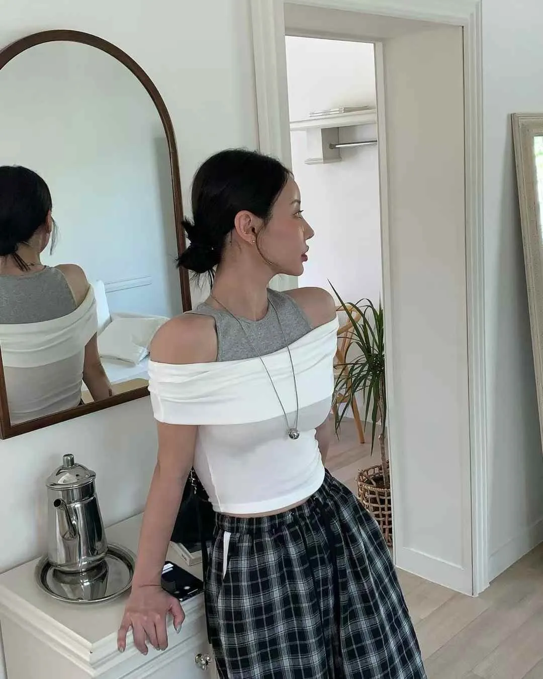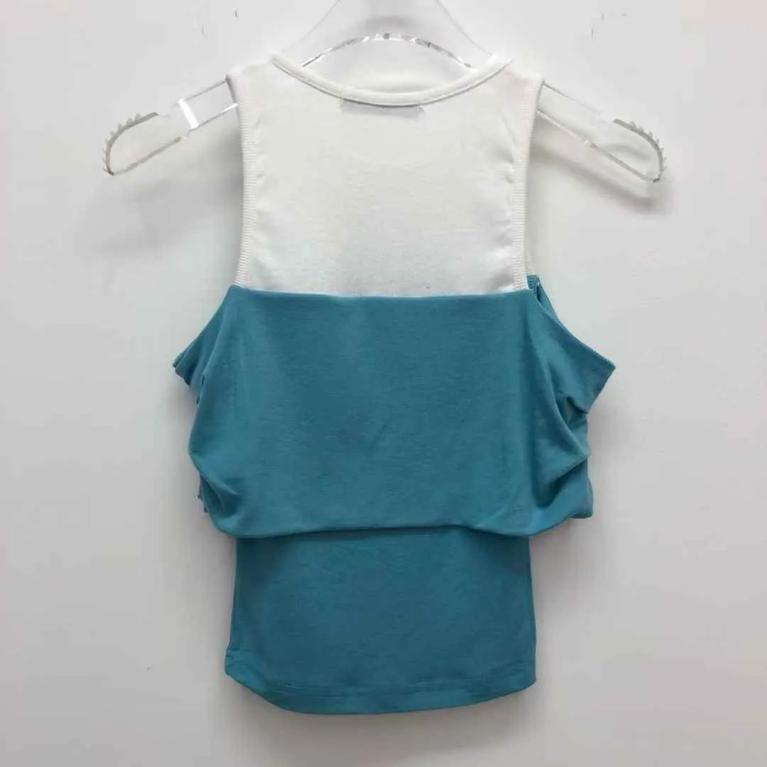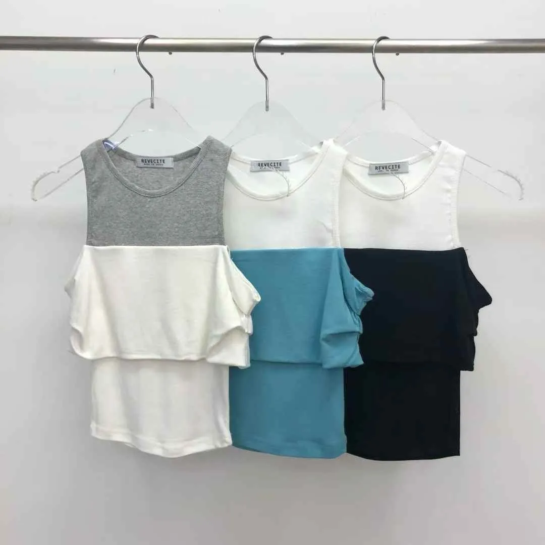 25FL01 假兩件背心拚色平口上衣 3色
