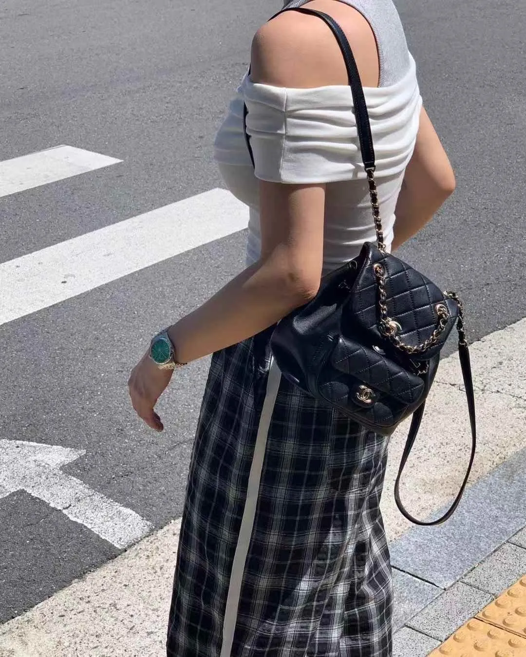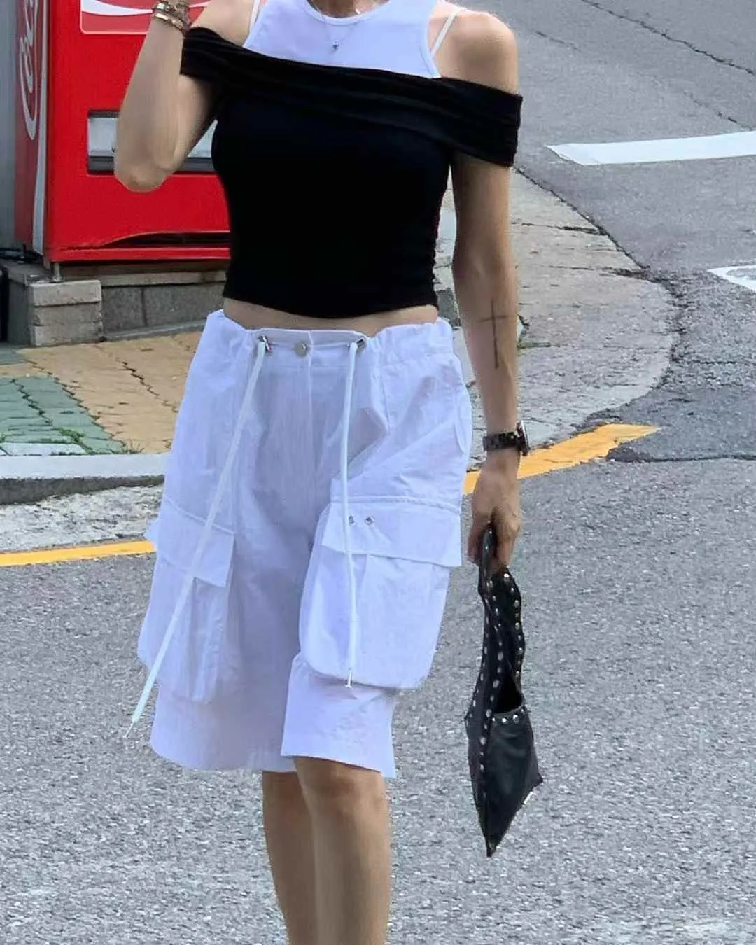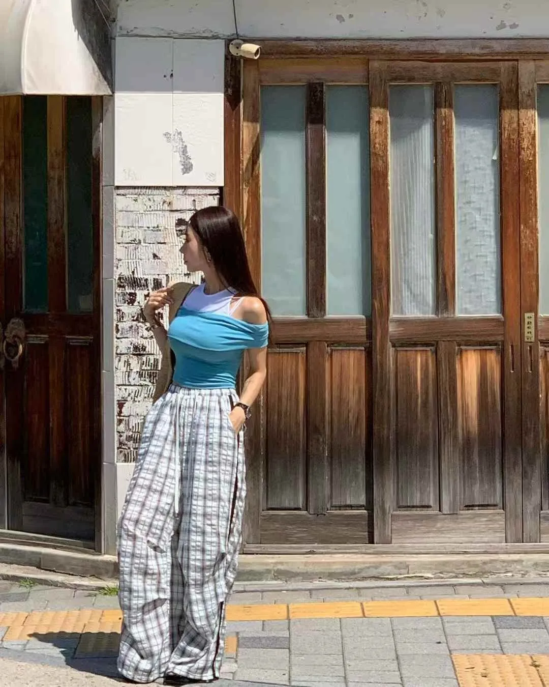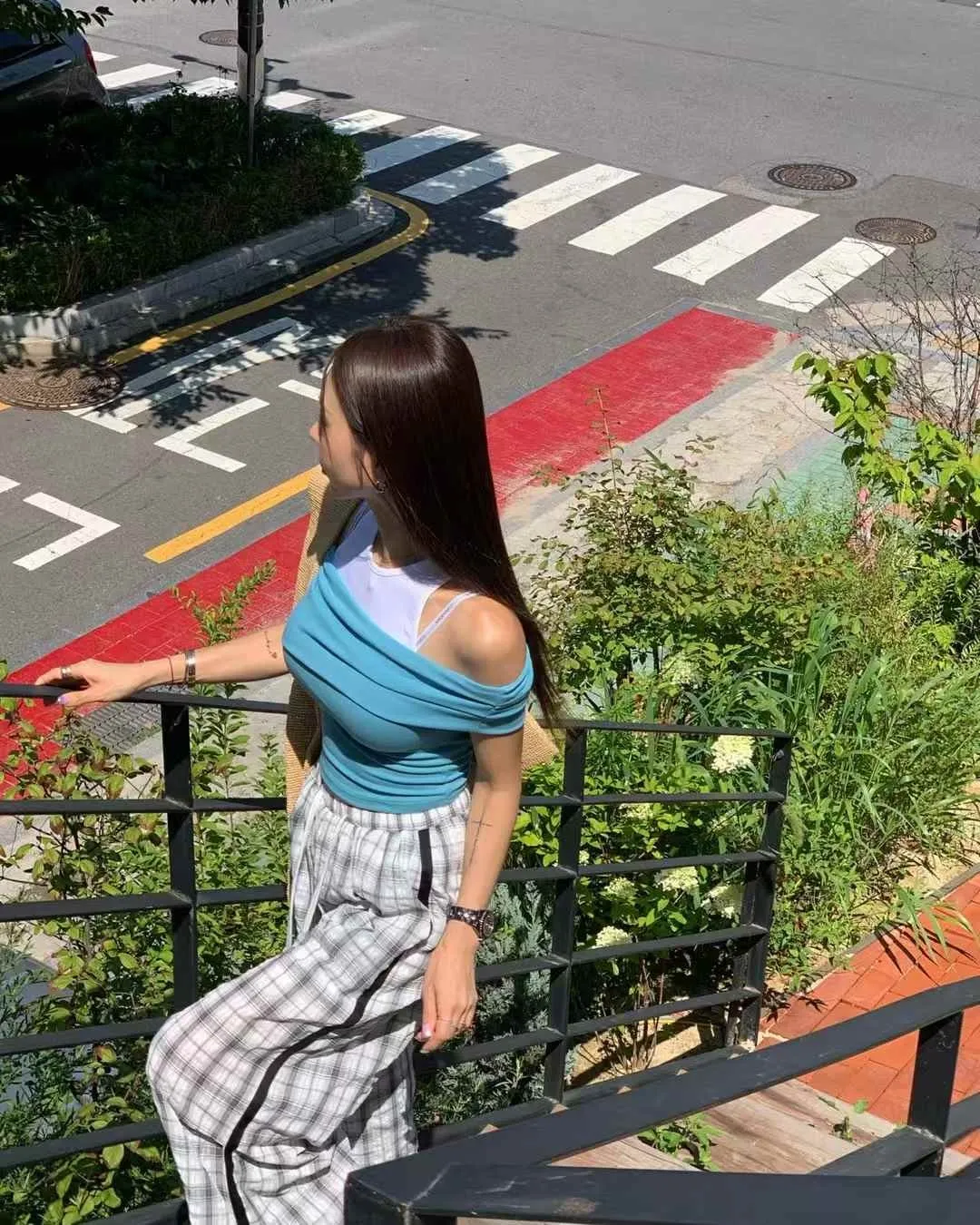 25FL01 假兩件背心拚色平口上衣 3色