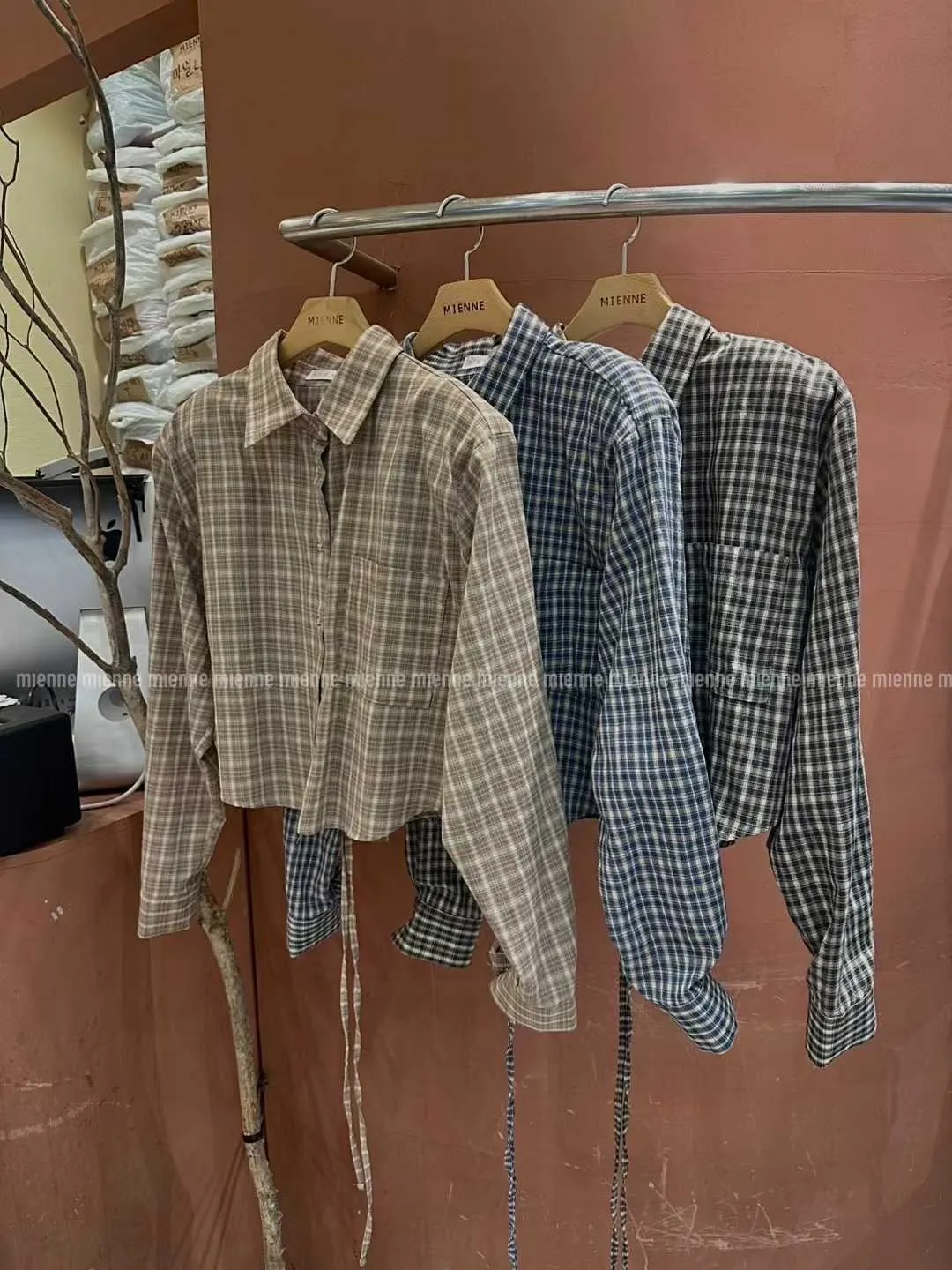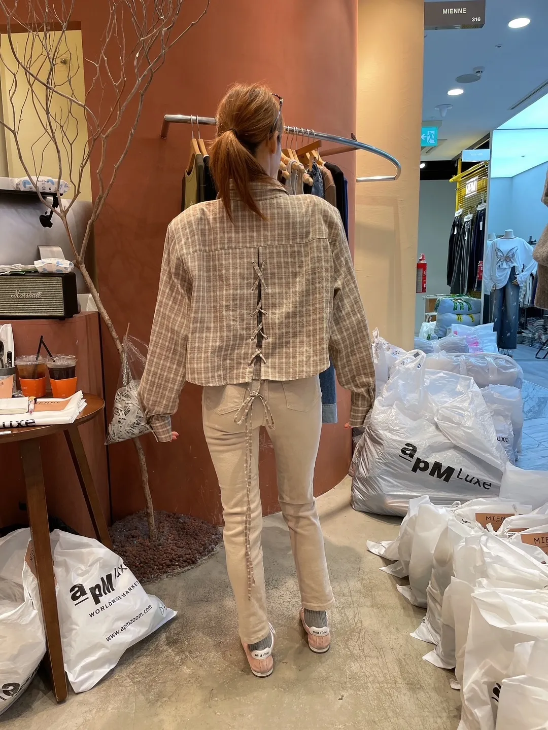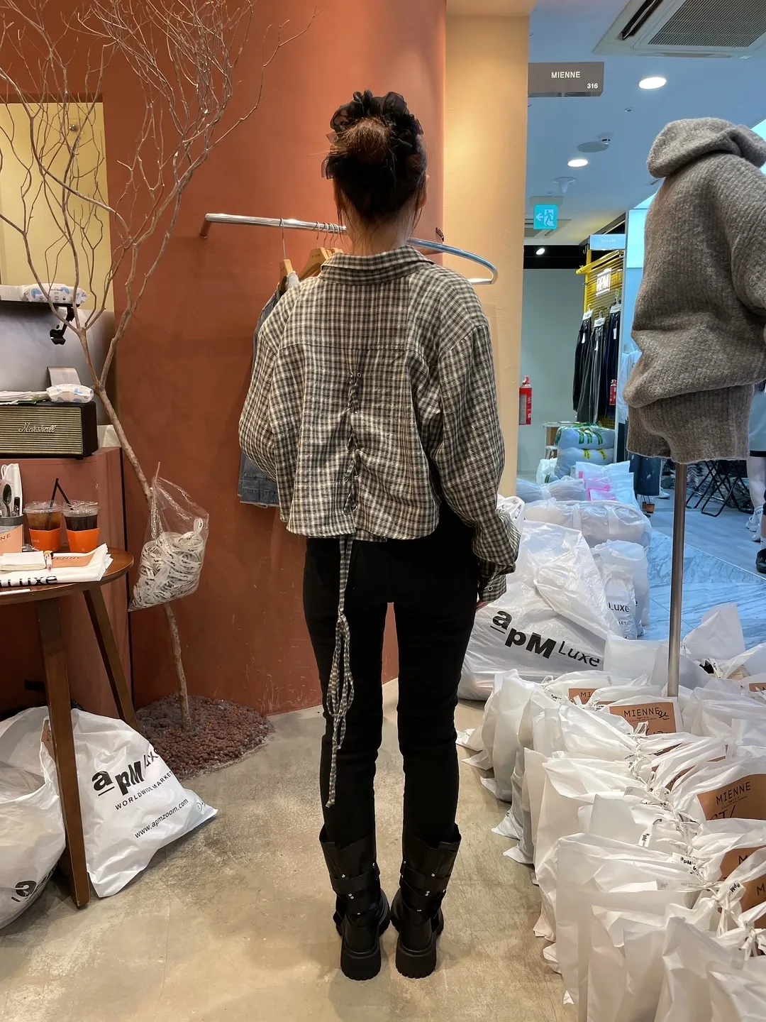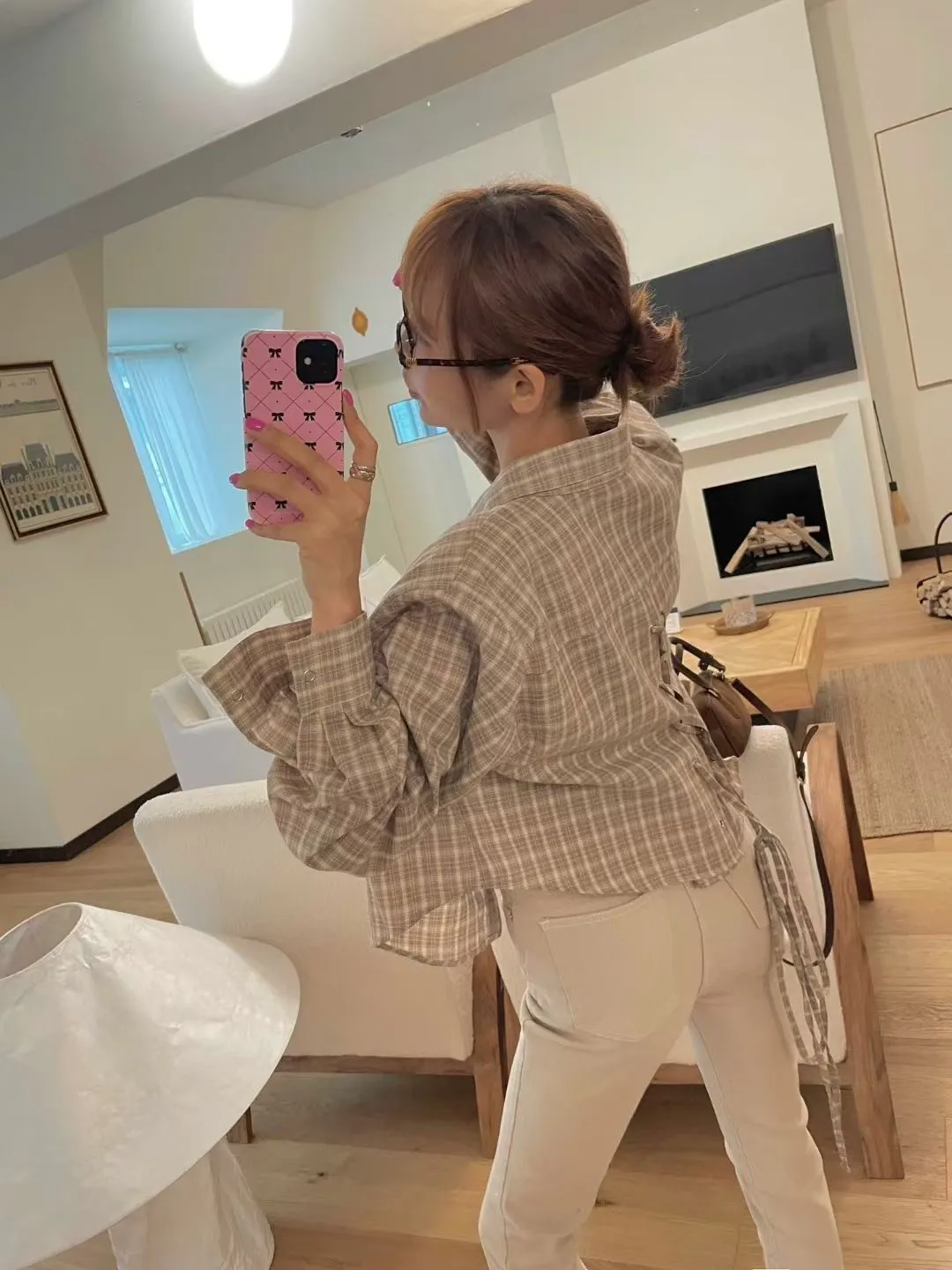 25GD11 後交叉綁繩短版格紋襯衫 3色