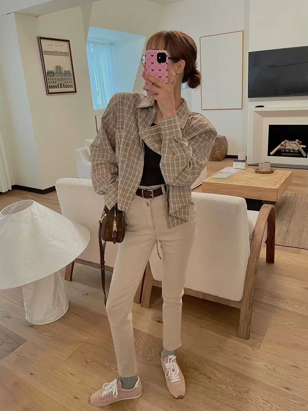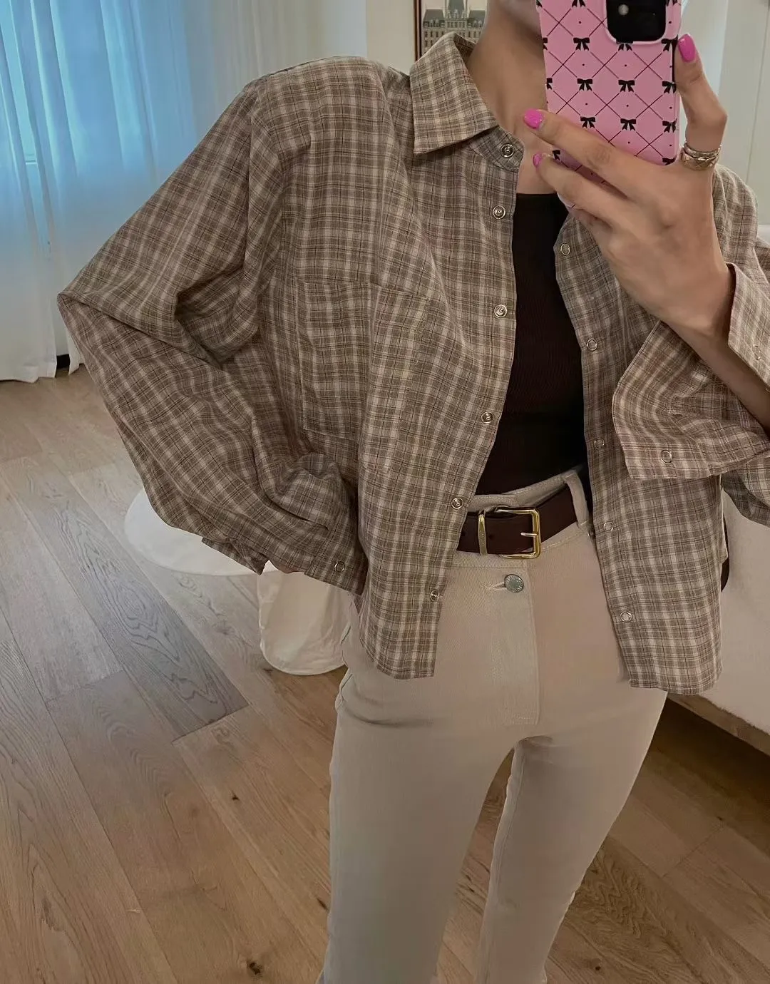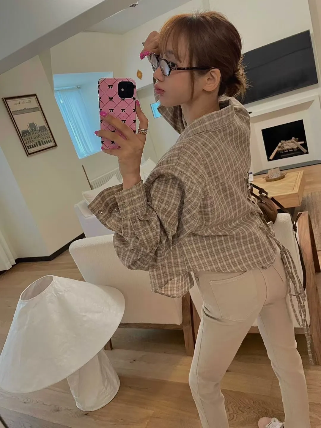 25GD11 後交叉綁繩短版格紋襯衫 3色