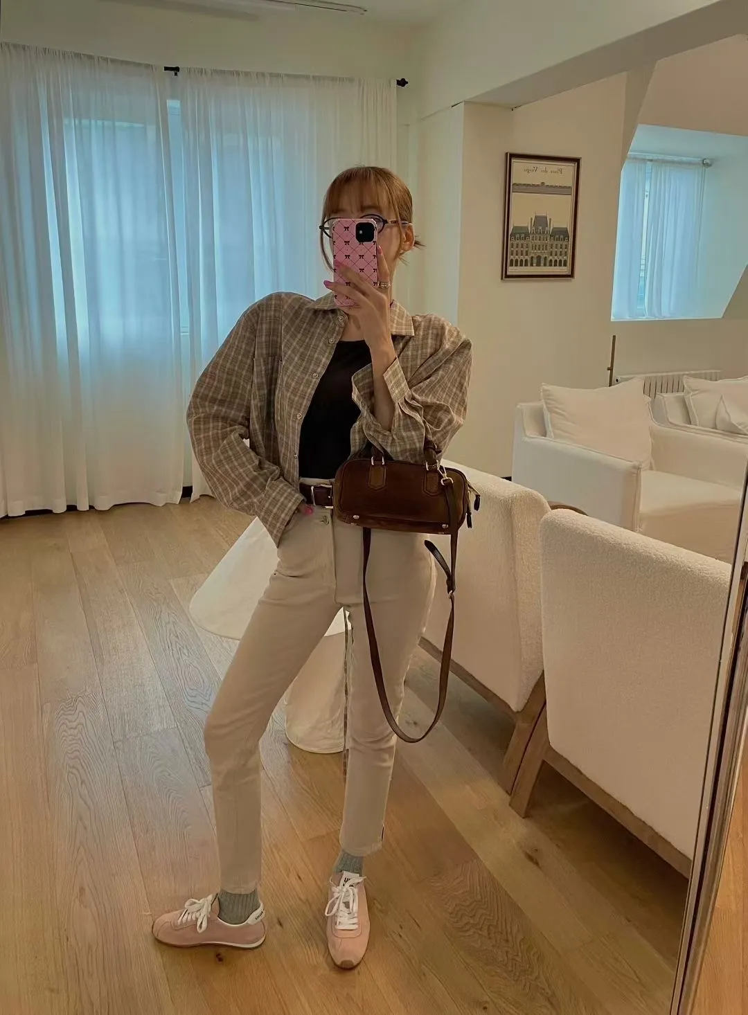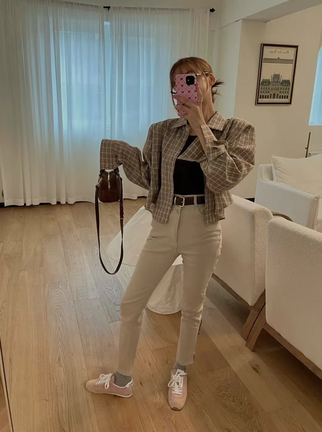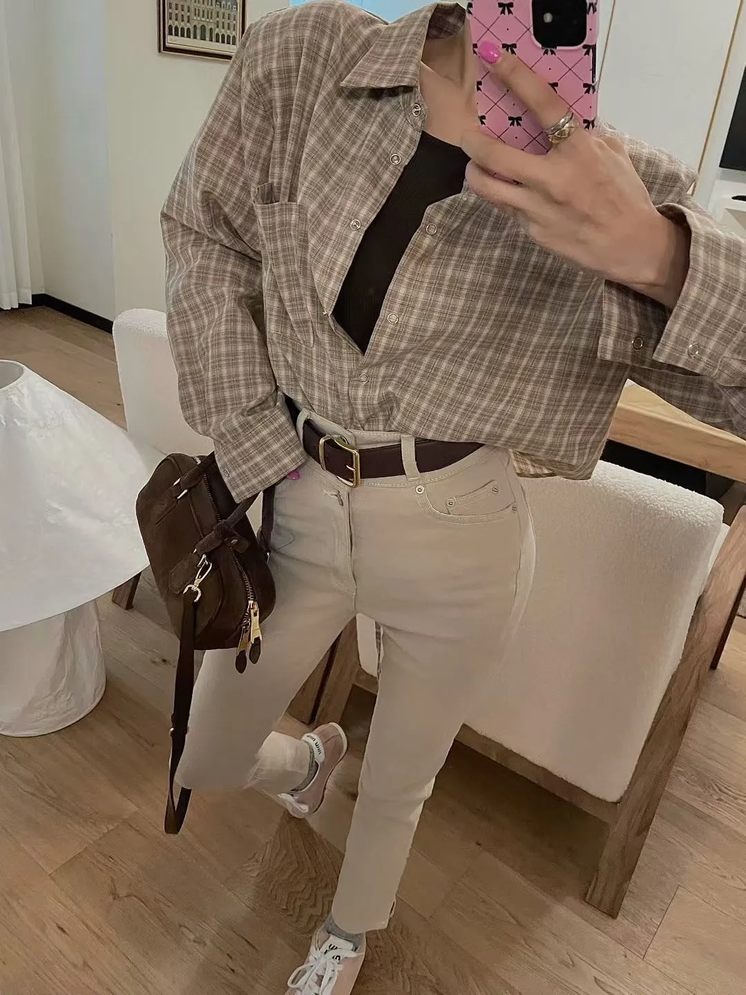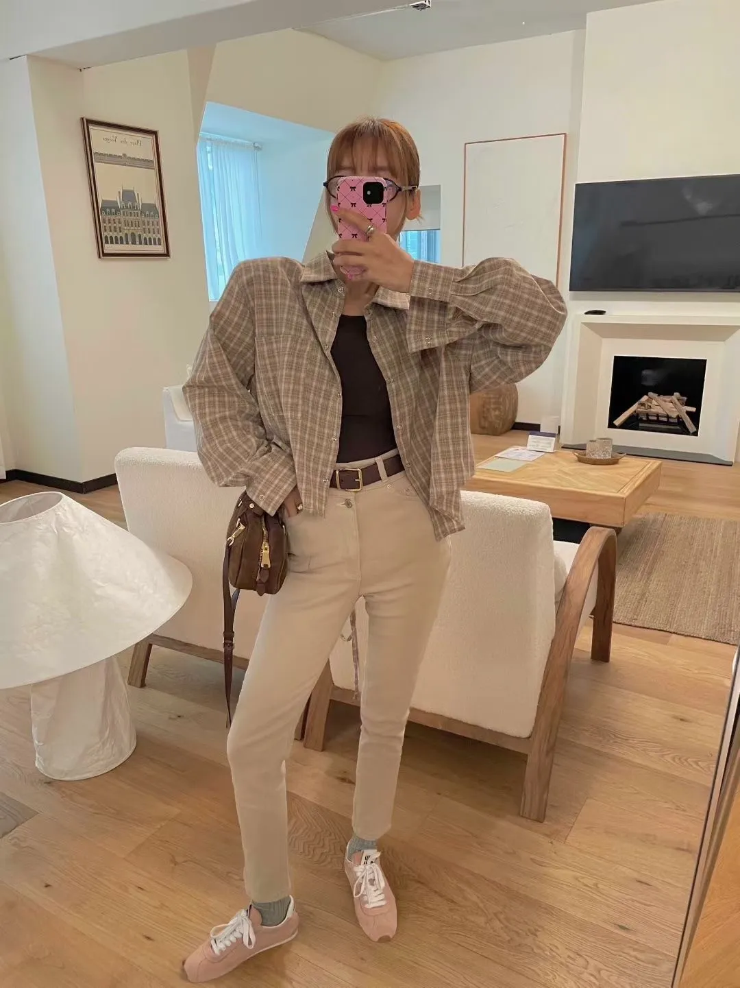 25GD11 後交叉綁繩短版格紋襯衫 3色