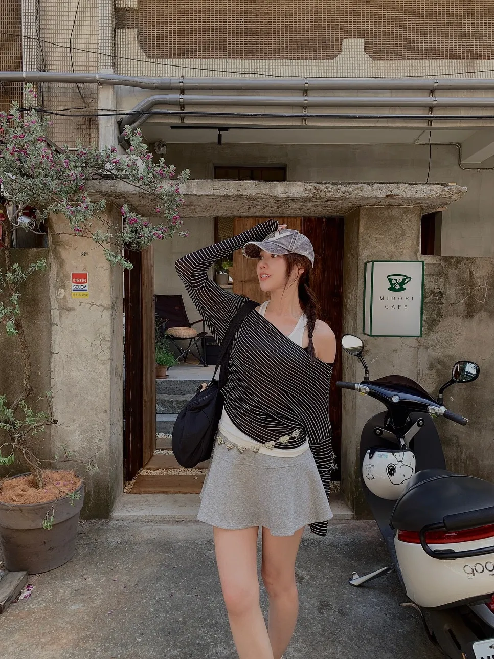 25GES01 兩件式背心+條文防曬彈力牛奶寬鬆長T 2色