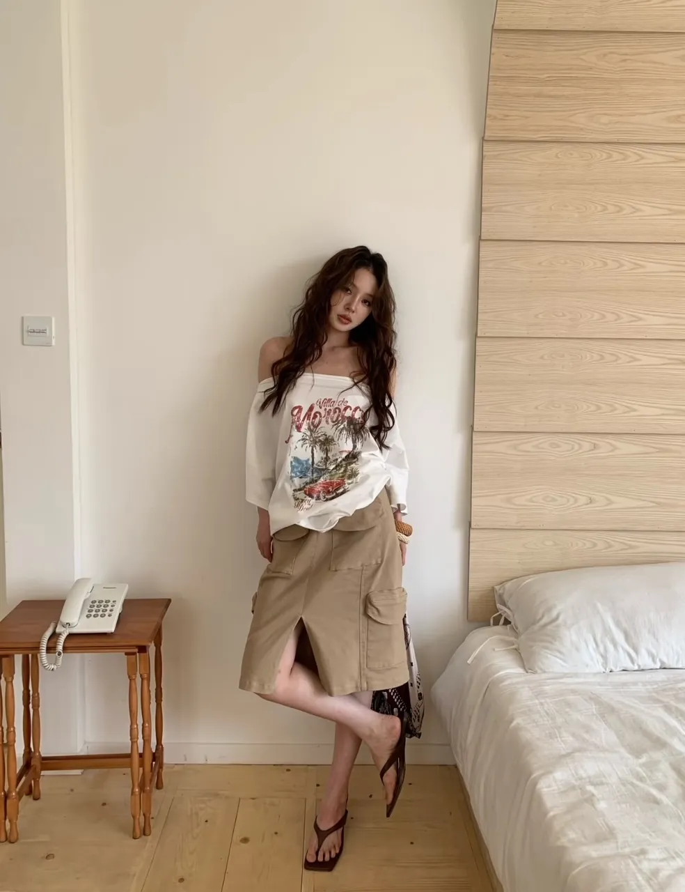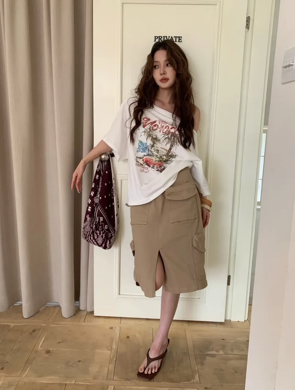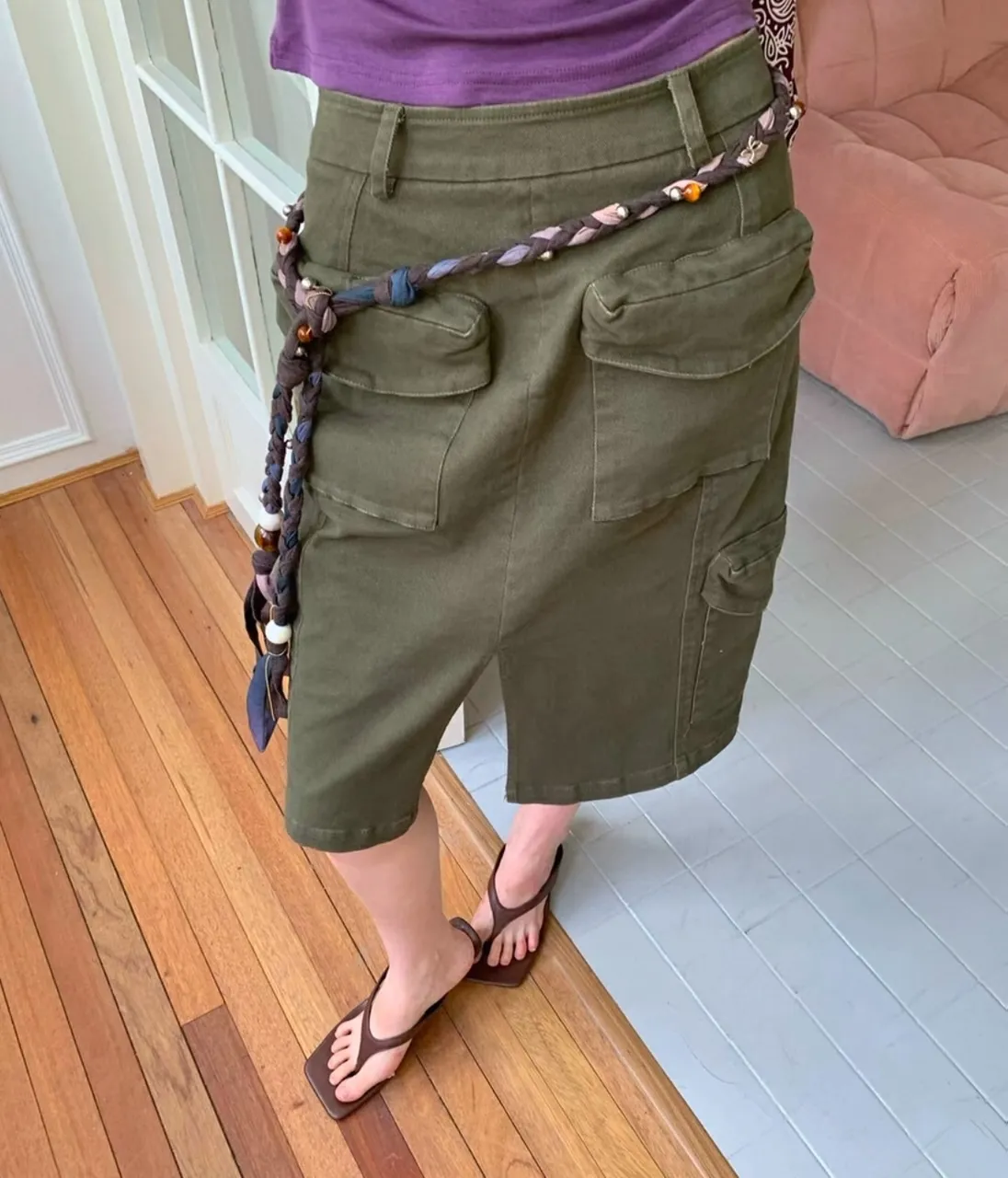 25GES20 開衩斜紋工裝五分裙 2色 SM