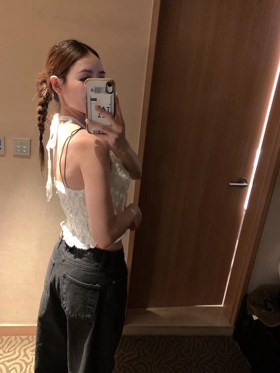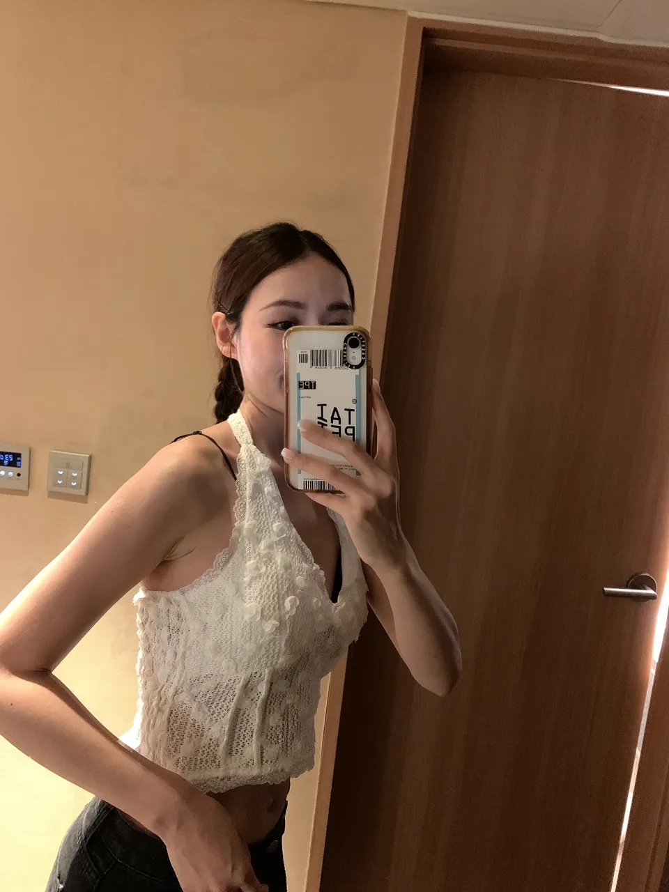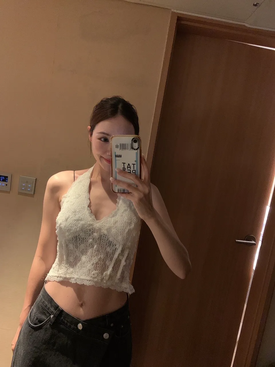 25GES43 廣州)勾織花花蕾絲繞脖bra背心 2色