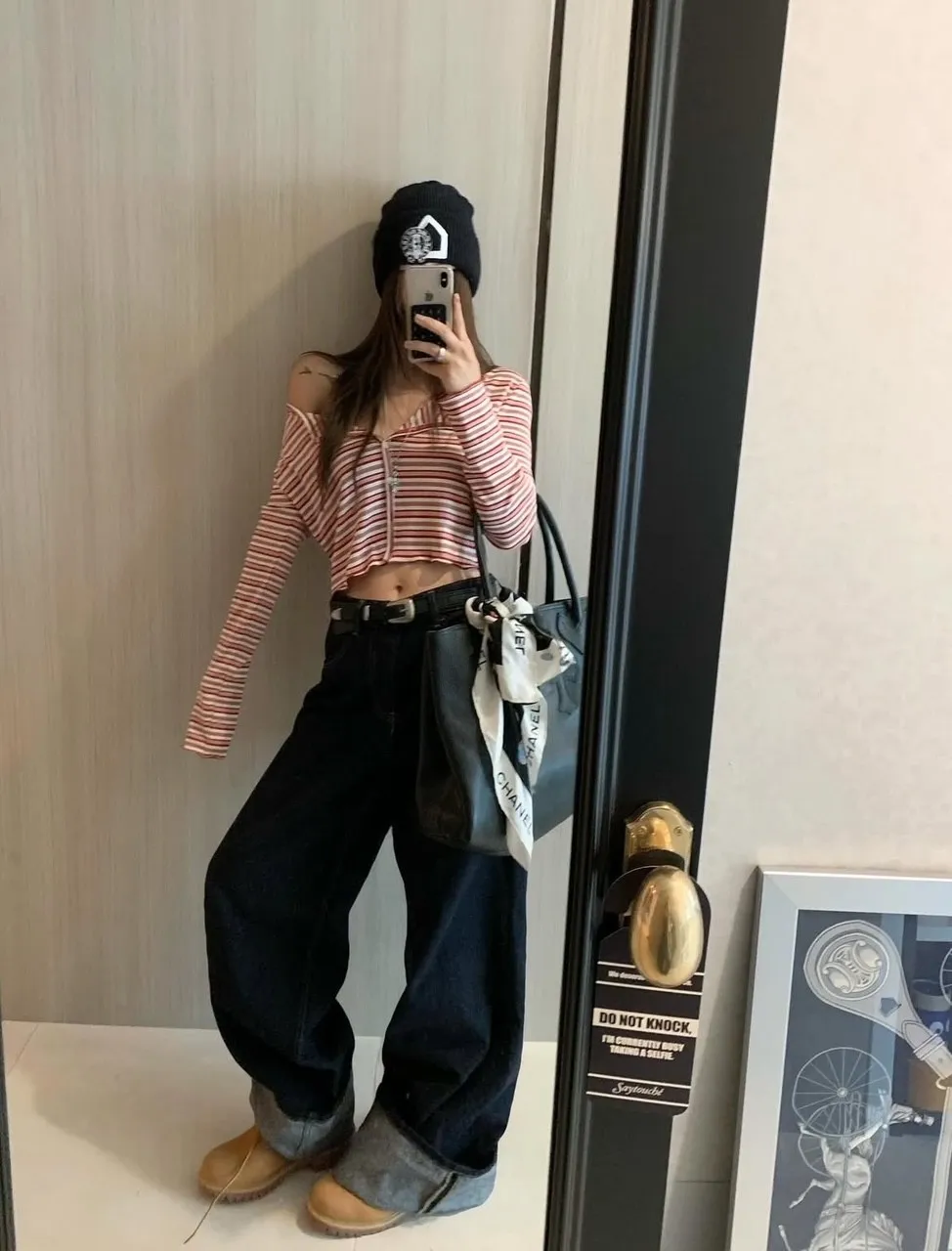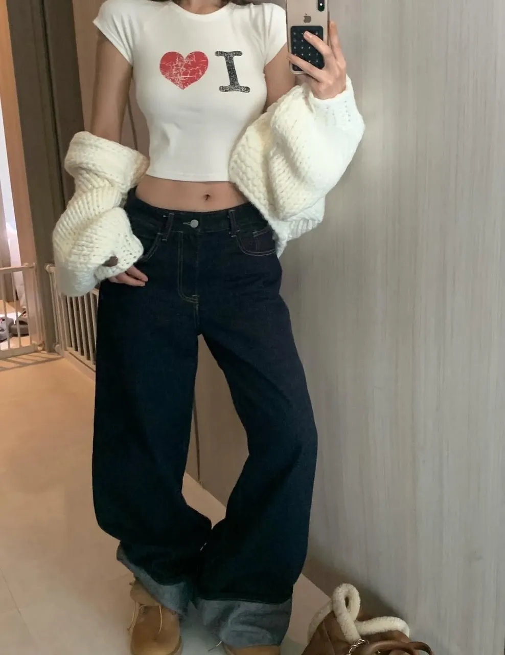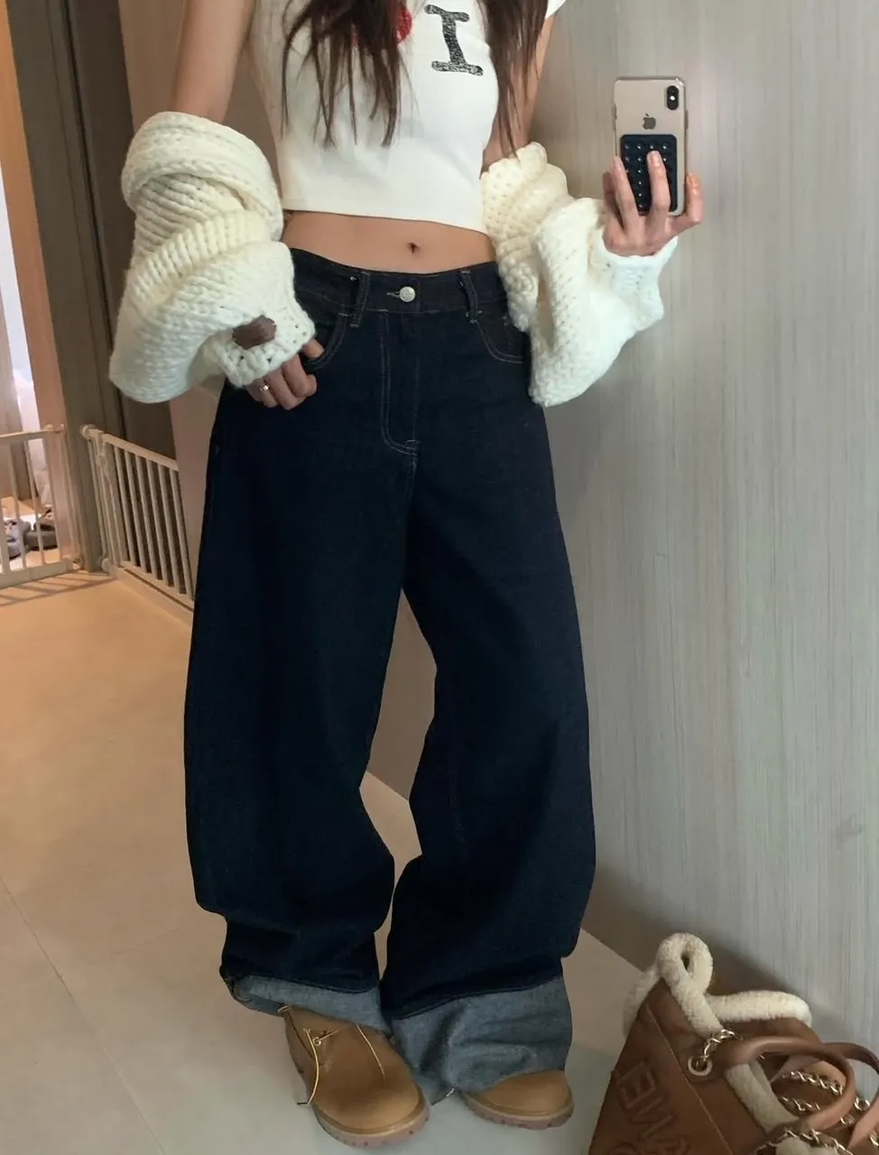 25GG02 闆娘清單)原色反摺直筒中低腰牛仔長褲 SML