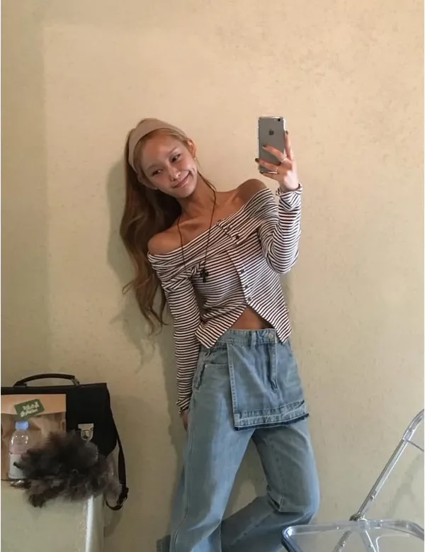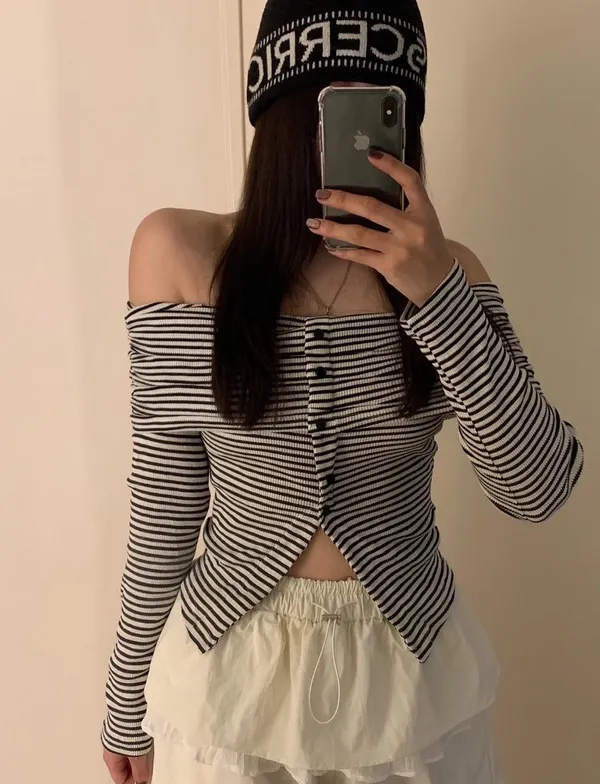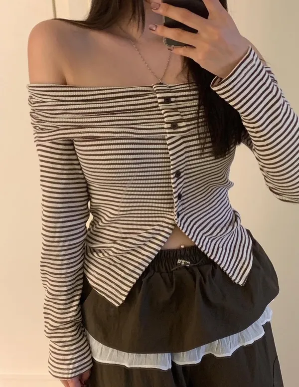 25HA03 橫條紋堆堆平口鬆餅紋長T 3色