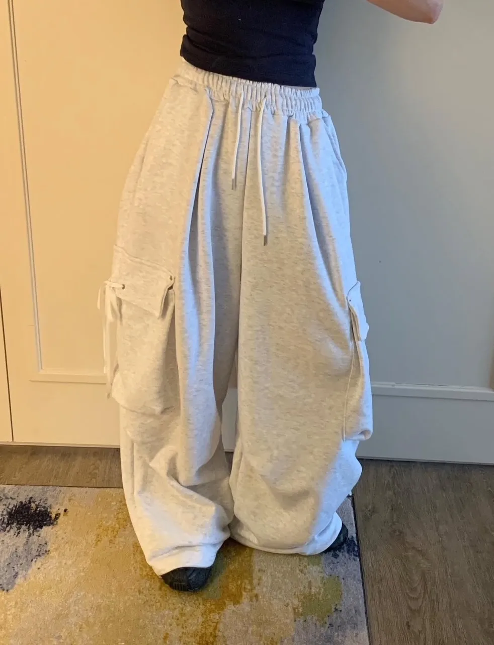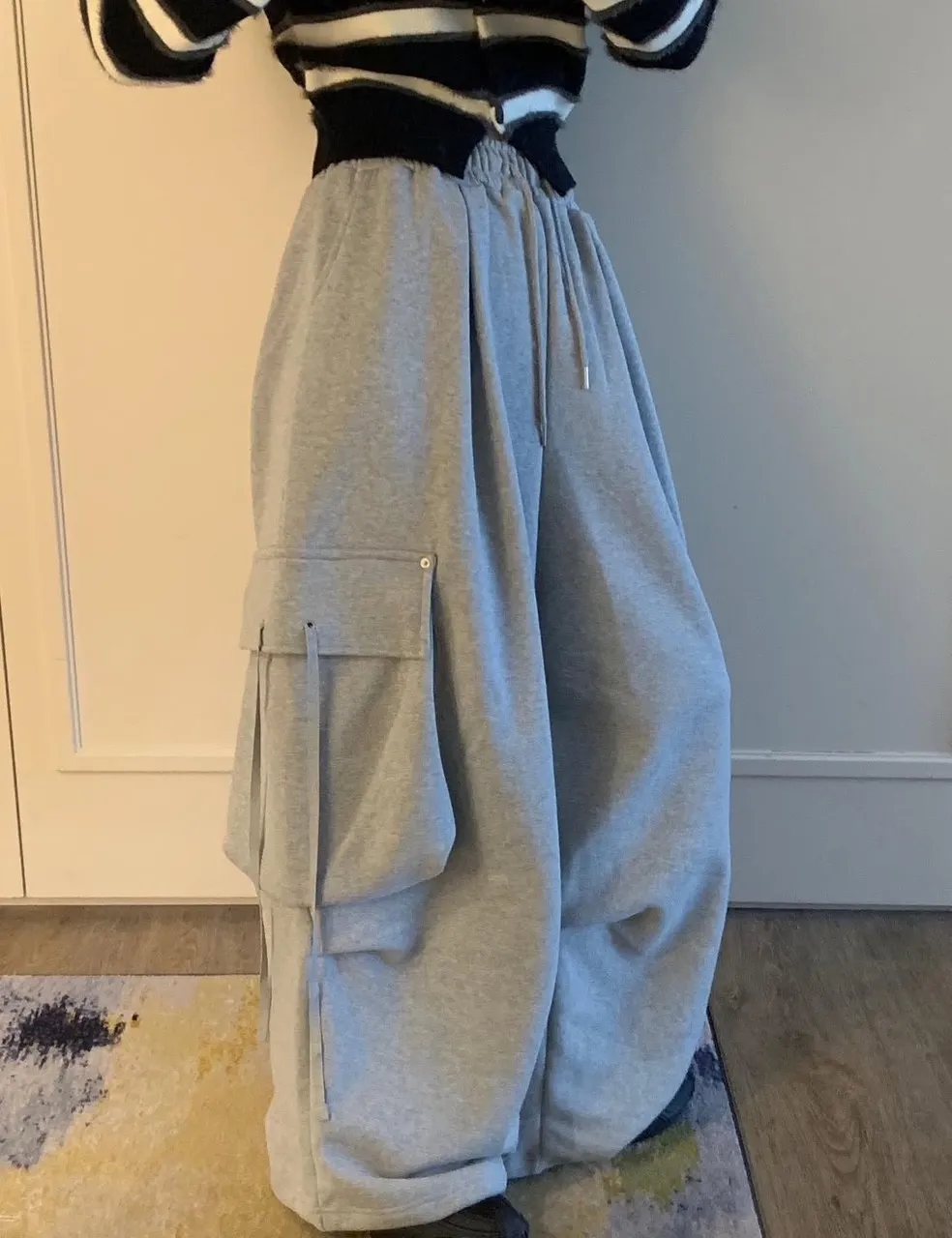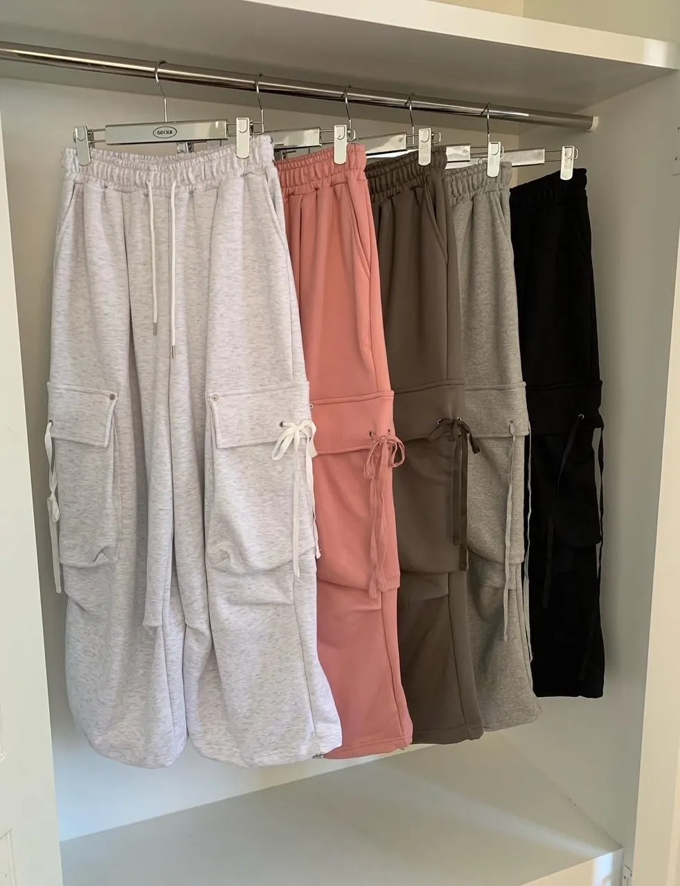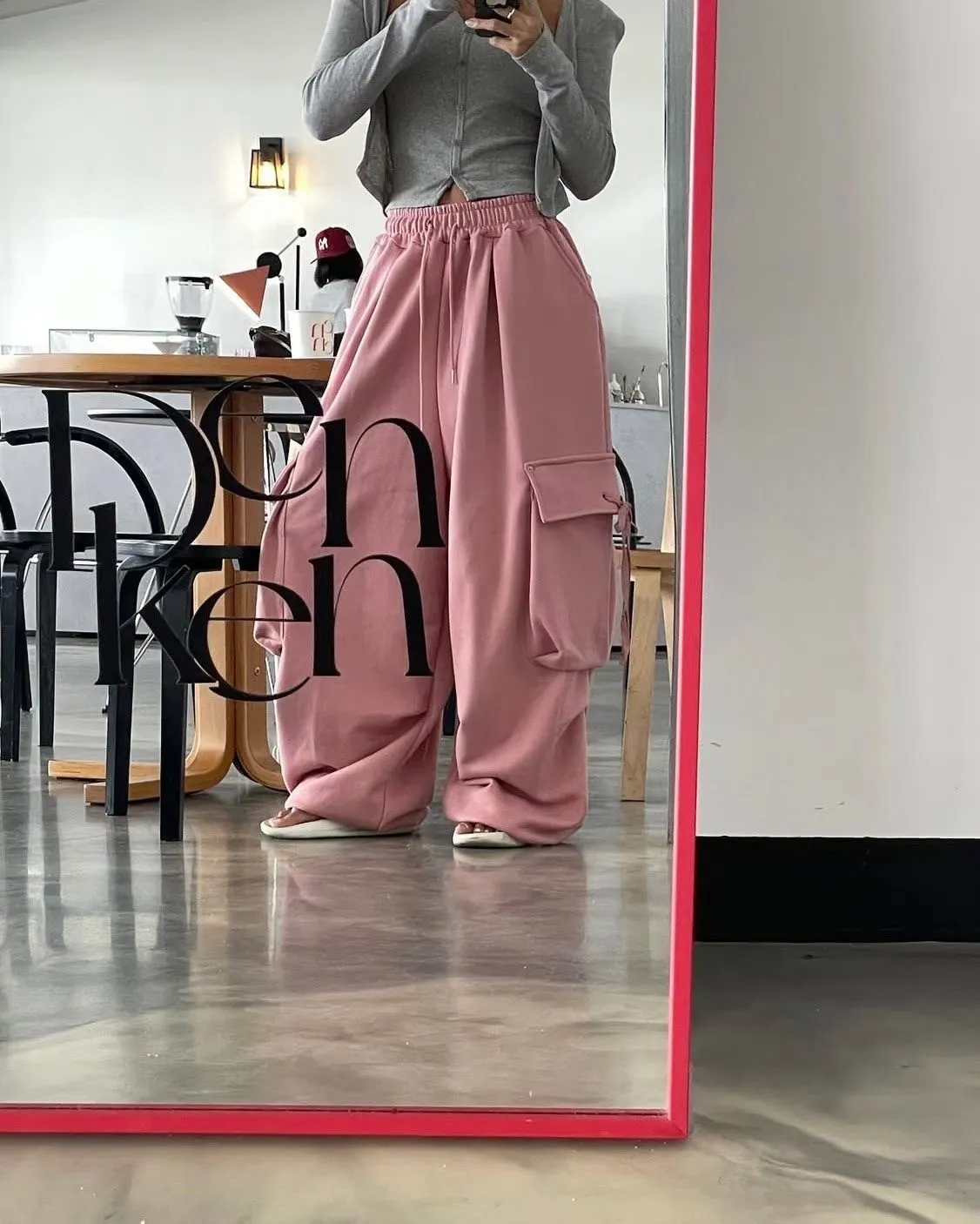 25HA23 寬版大口袋工裝薄毛巾棉長褲 5色