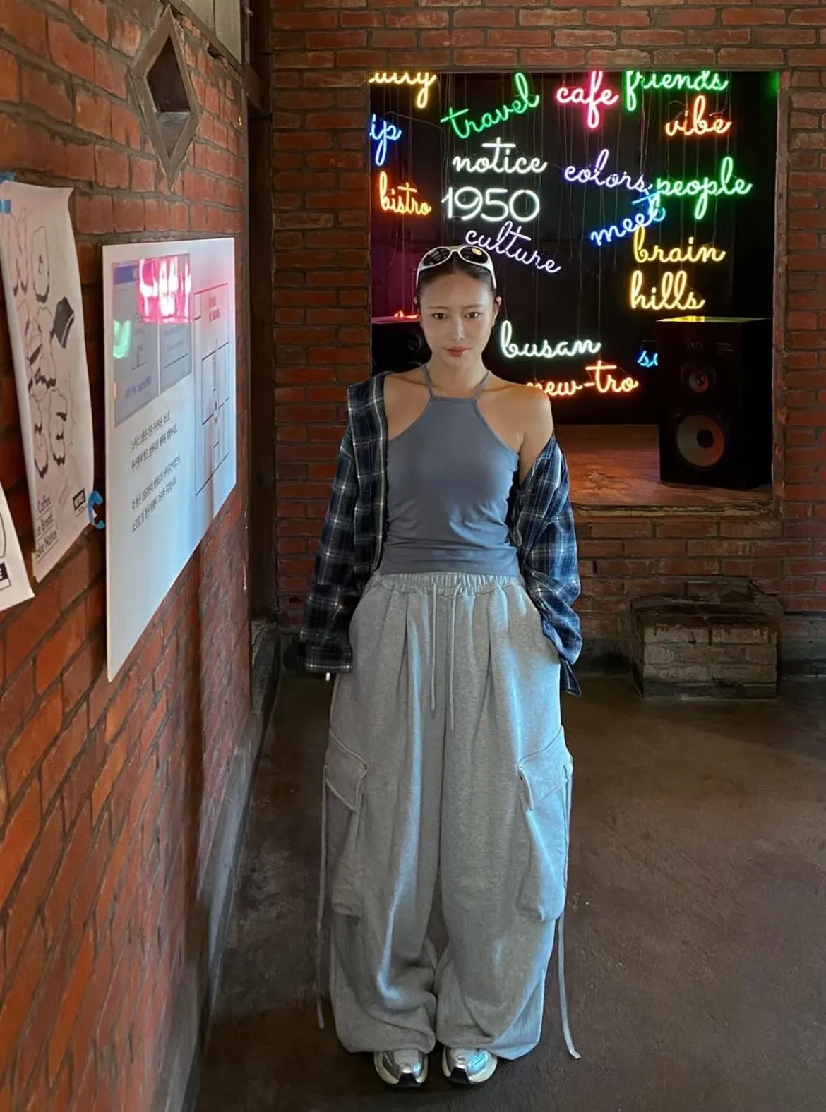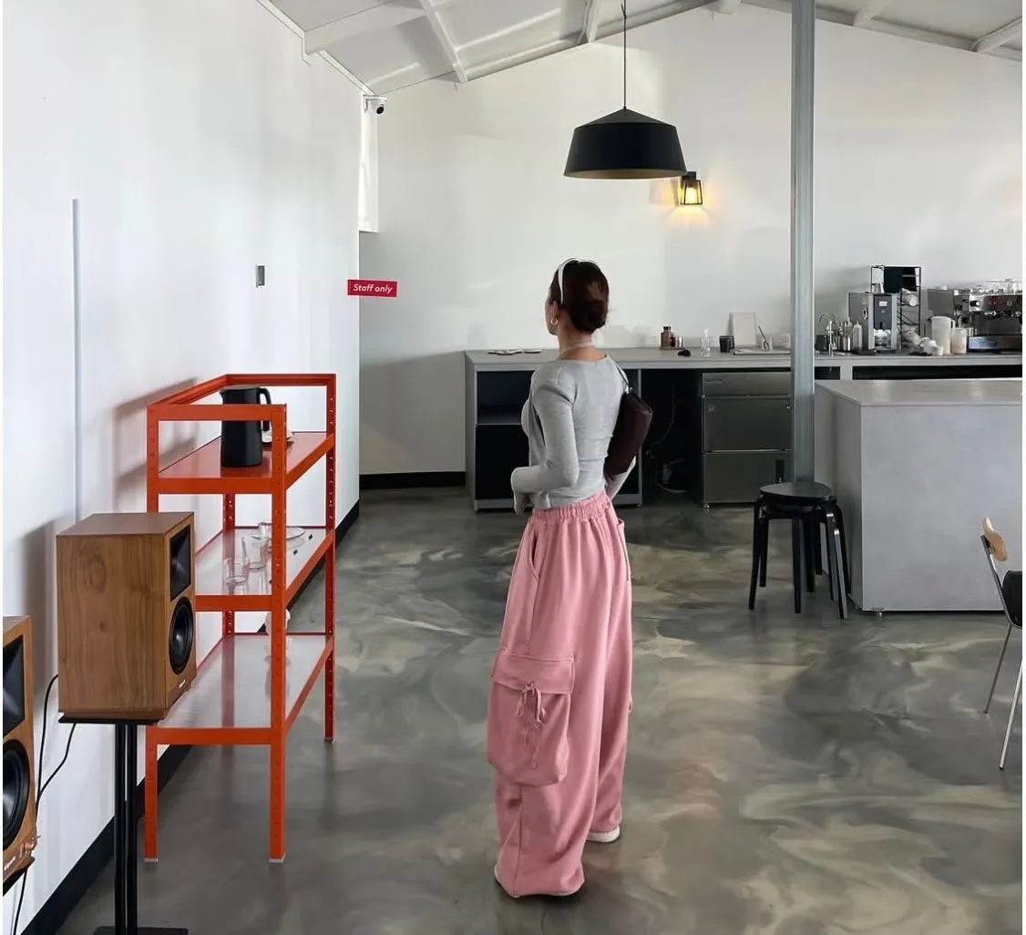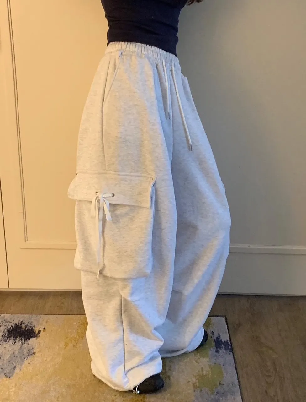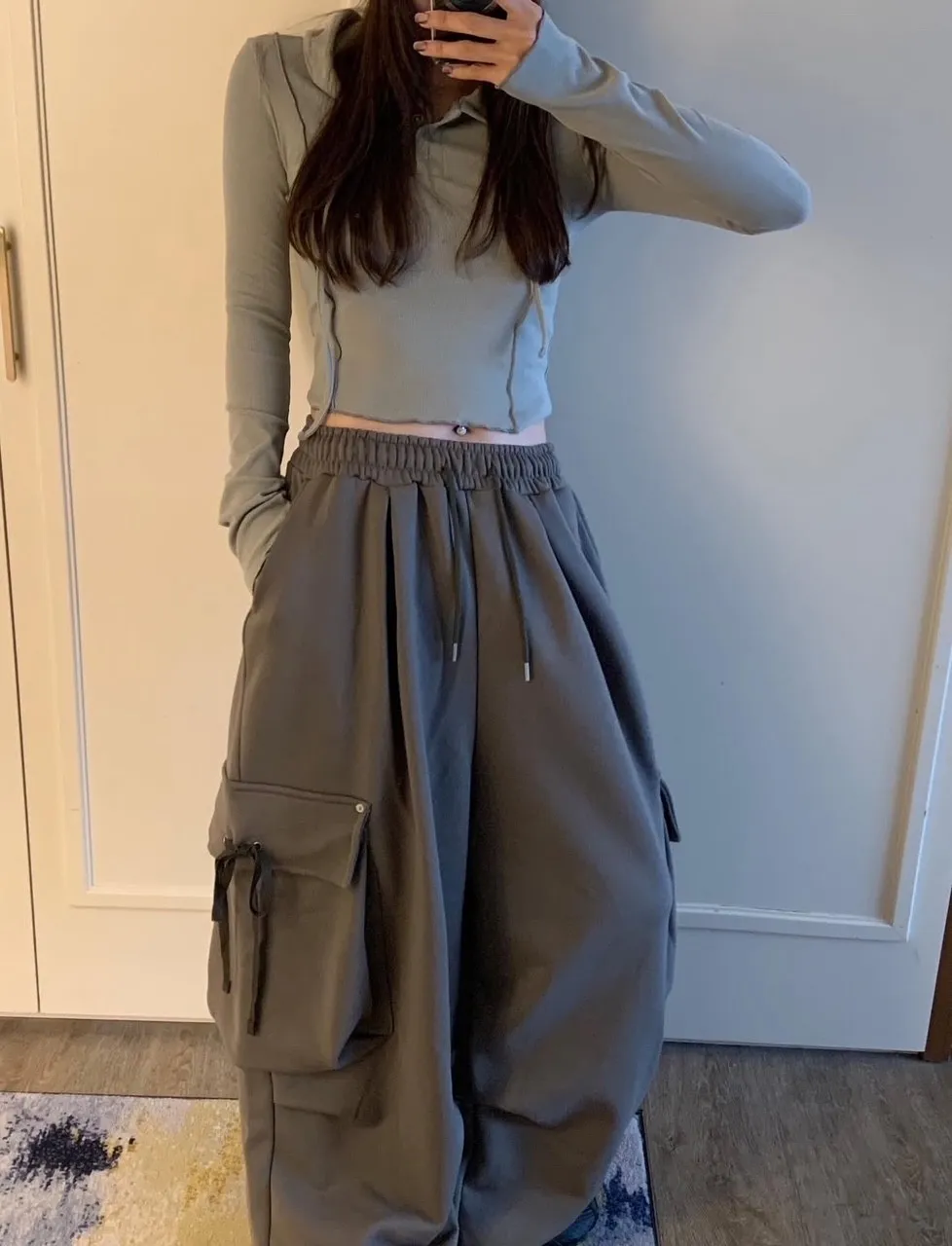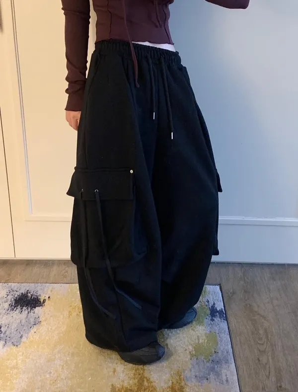 25HA23 寬版大口袋工裝薄毛巾棉長褲 5色