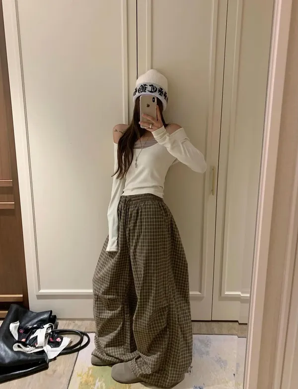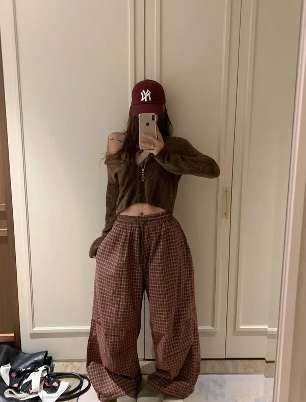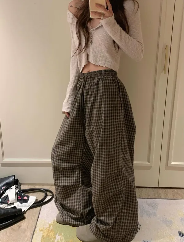 25HC09 細格紋密織線棉兩穿縮腳褲 3色