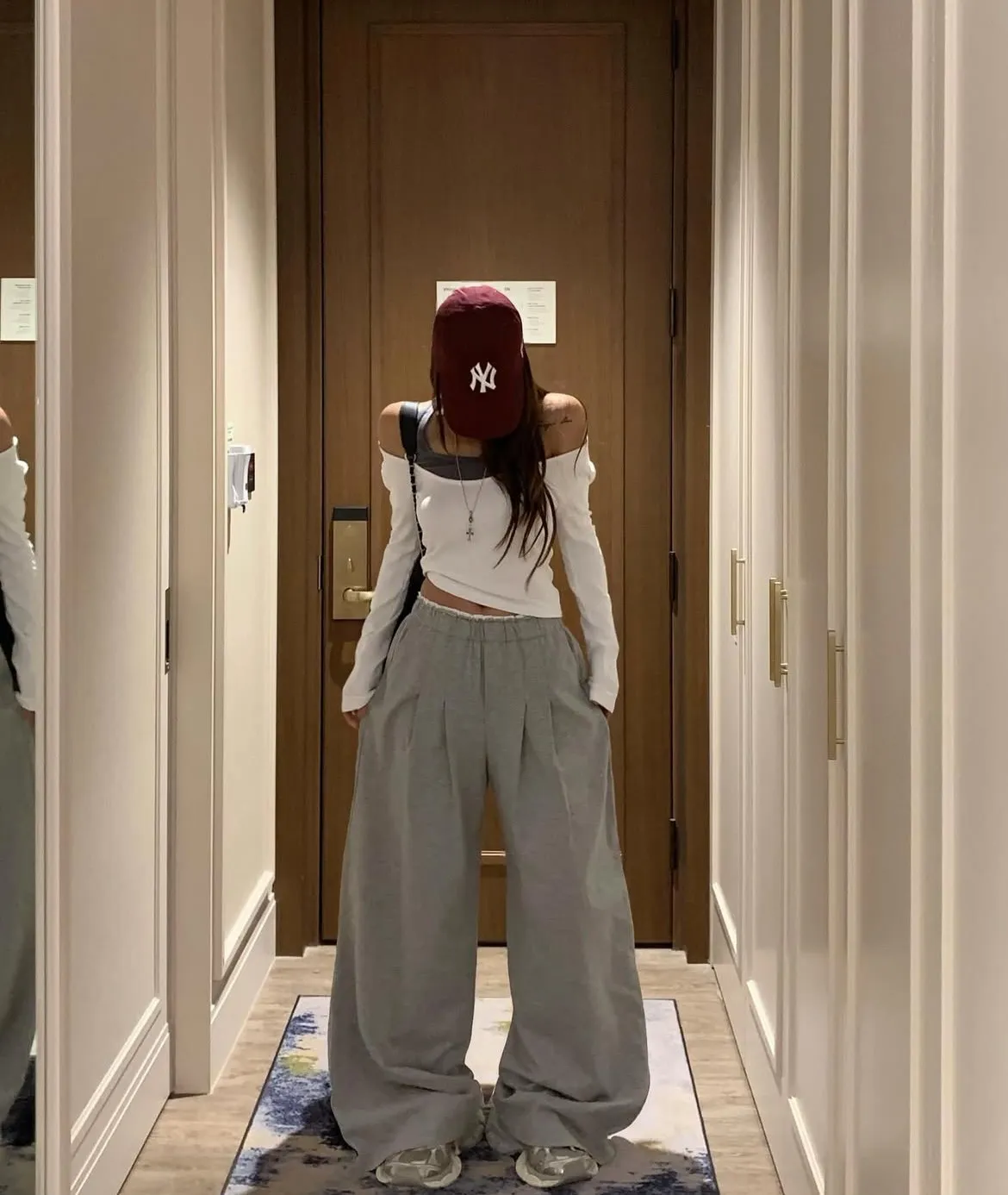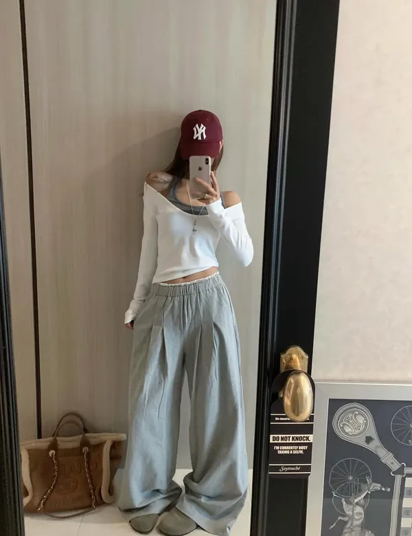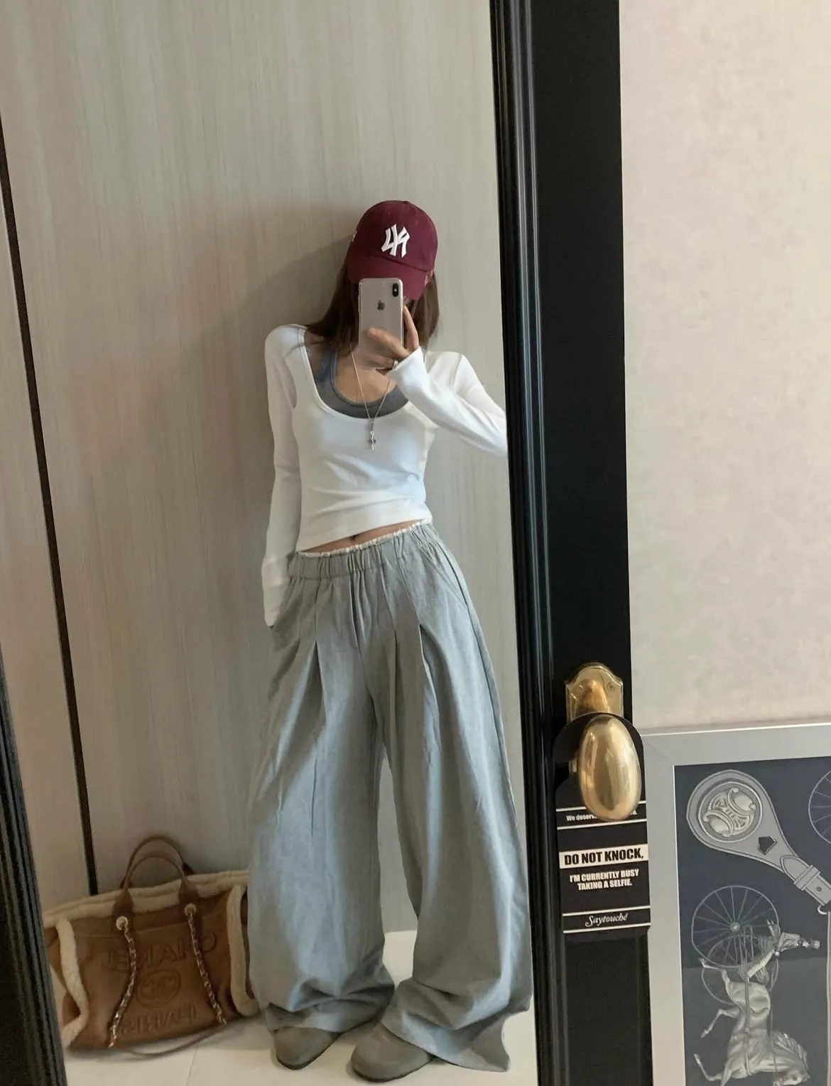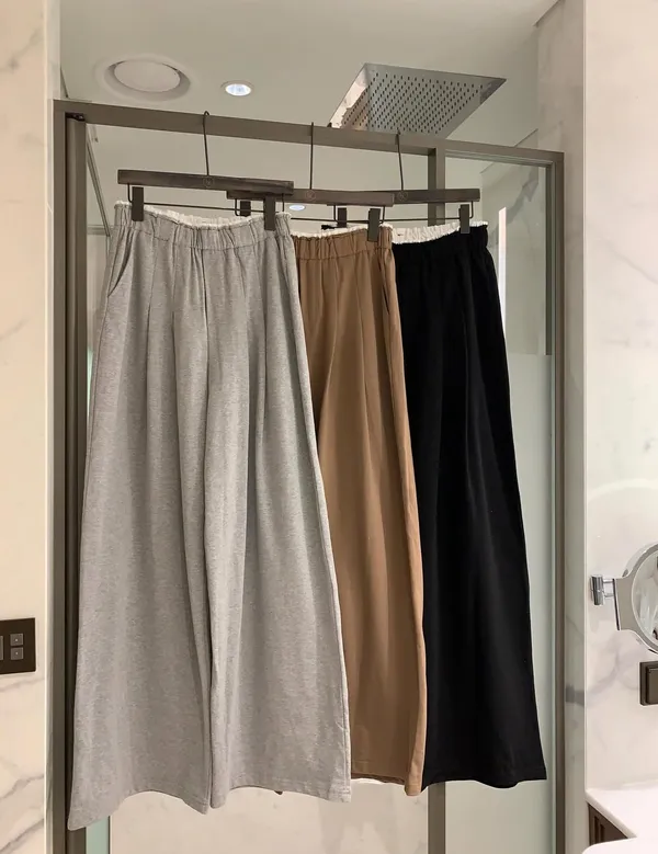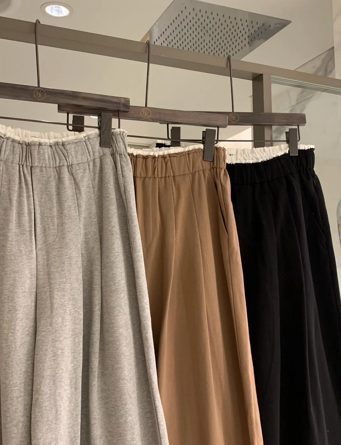 25HC17 白邊西打摺收線薄毛巾棉長褲 3色