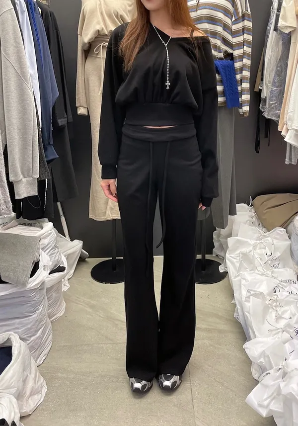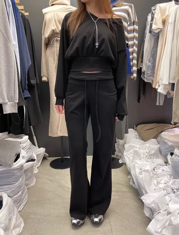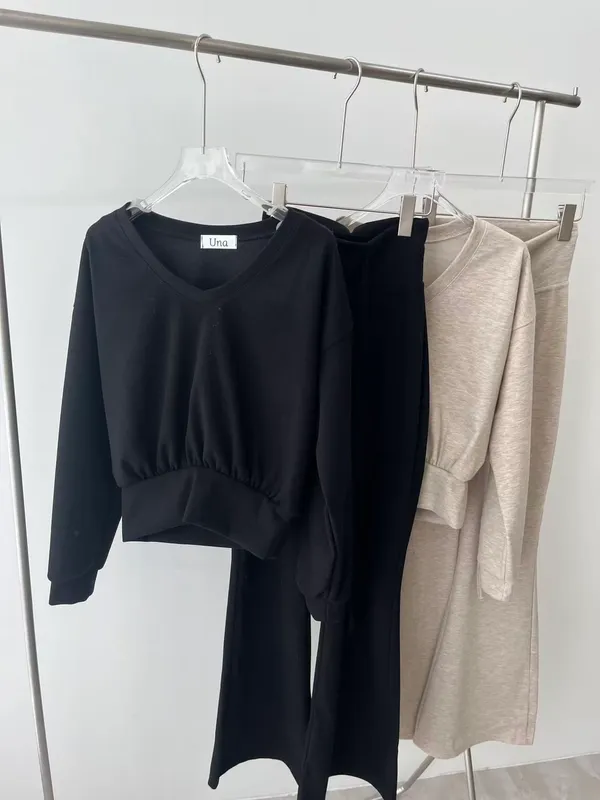 25HE21 V領短版上衣+小喇叭長褲 SET 2色