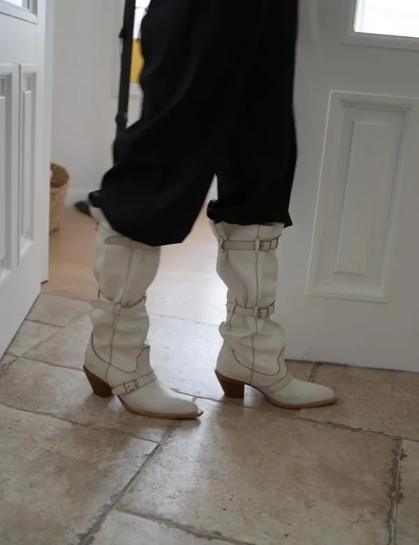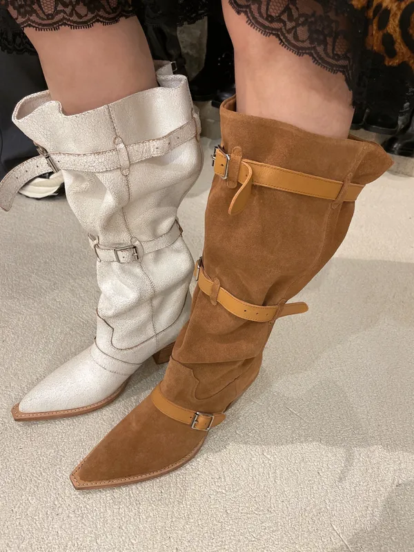 25HJ16 手工真皮)牛皮尖頭西部調帶長靴 3色