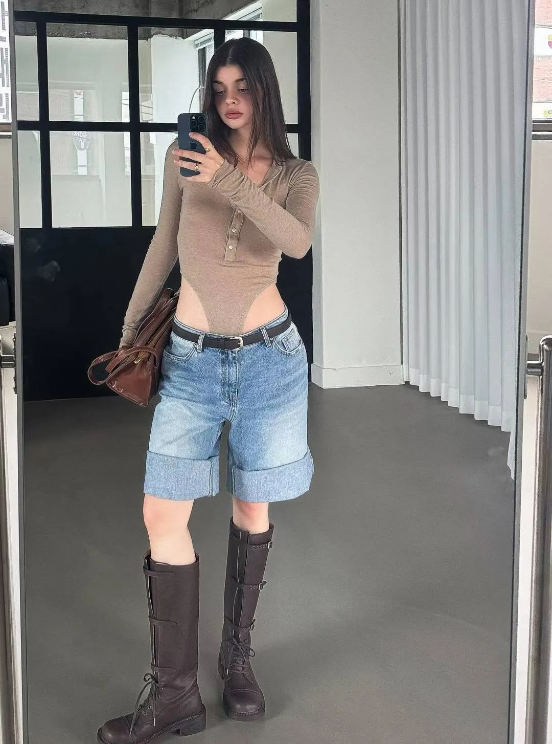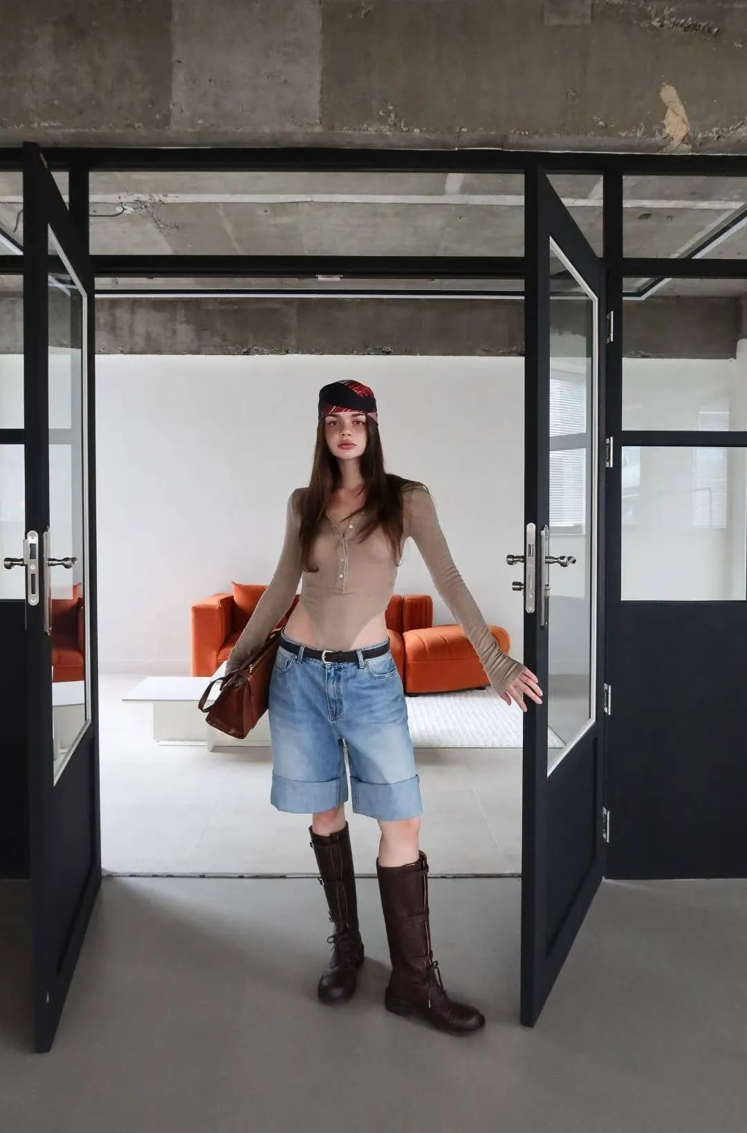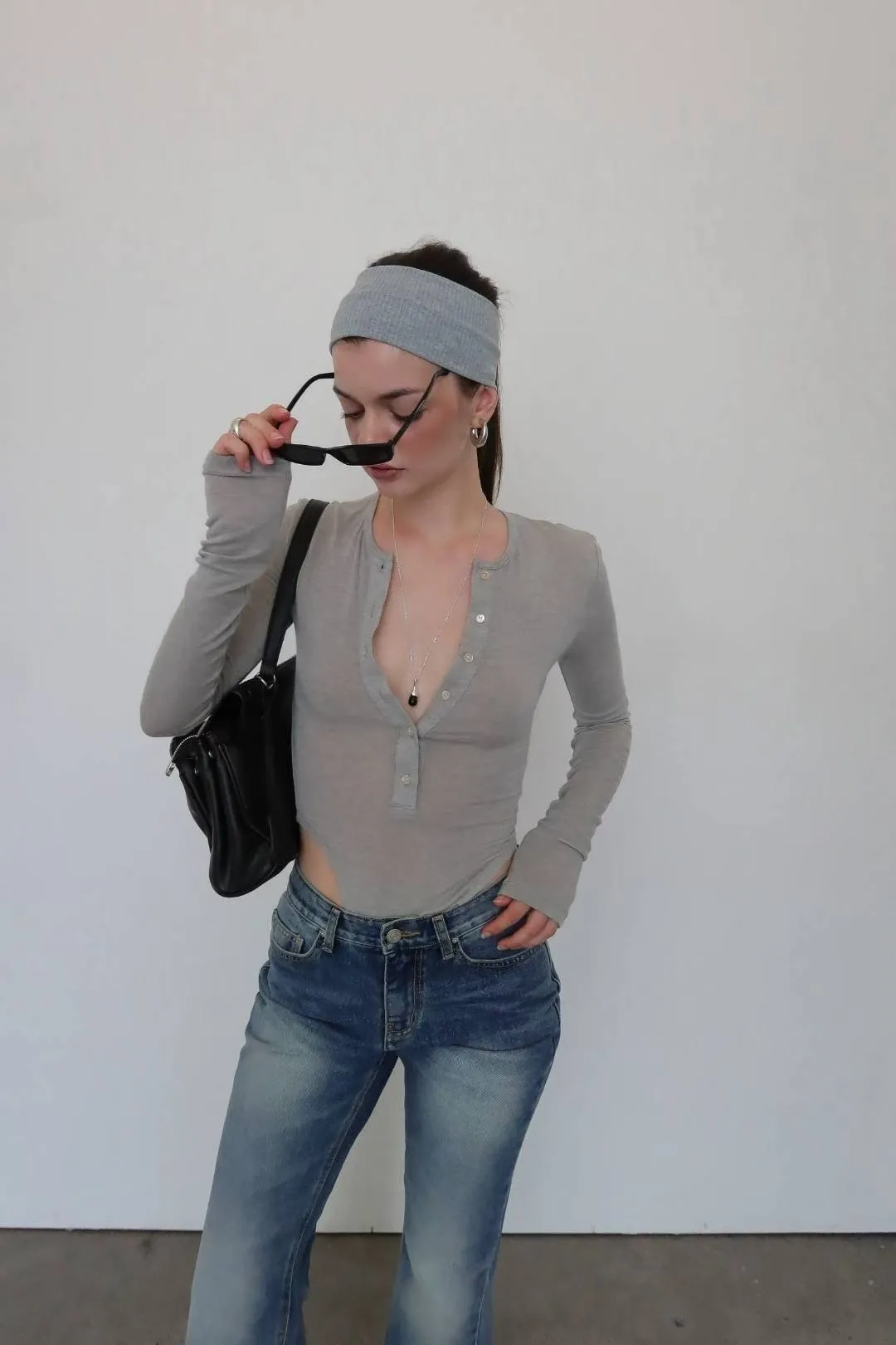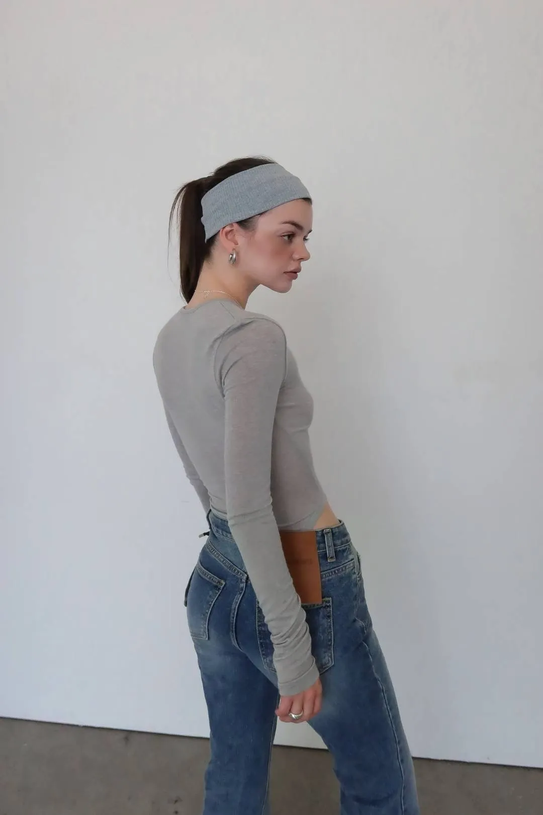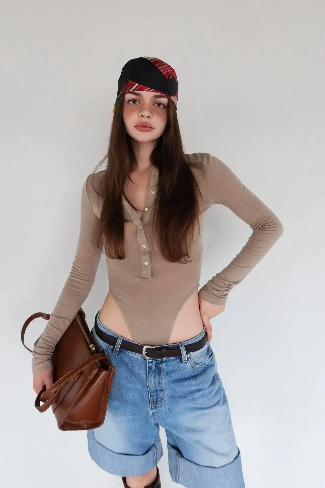 25HS15 合身彈力排釦造型挖腰長T 5色