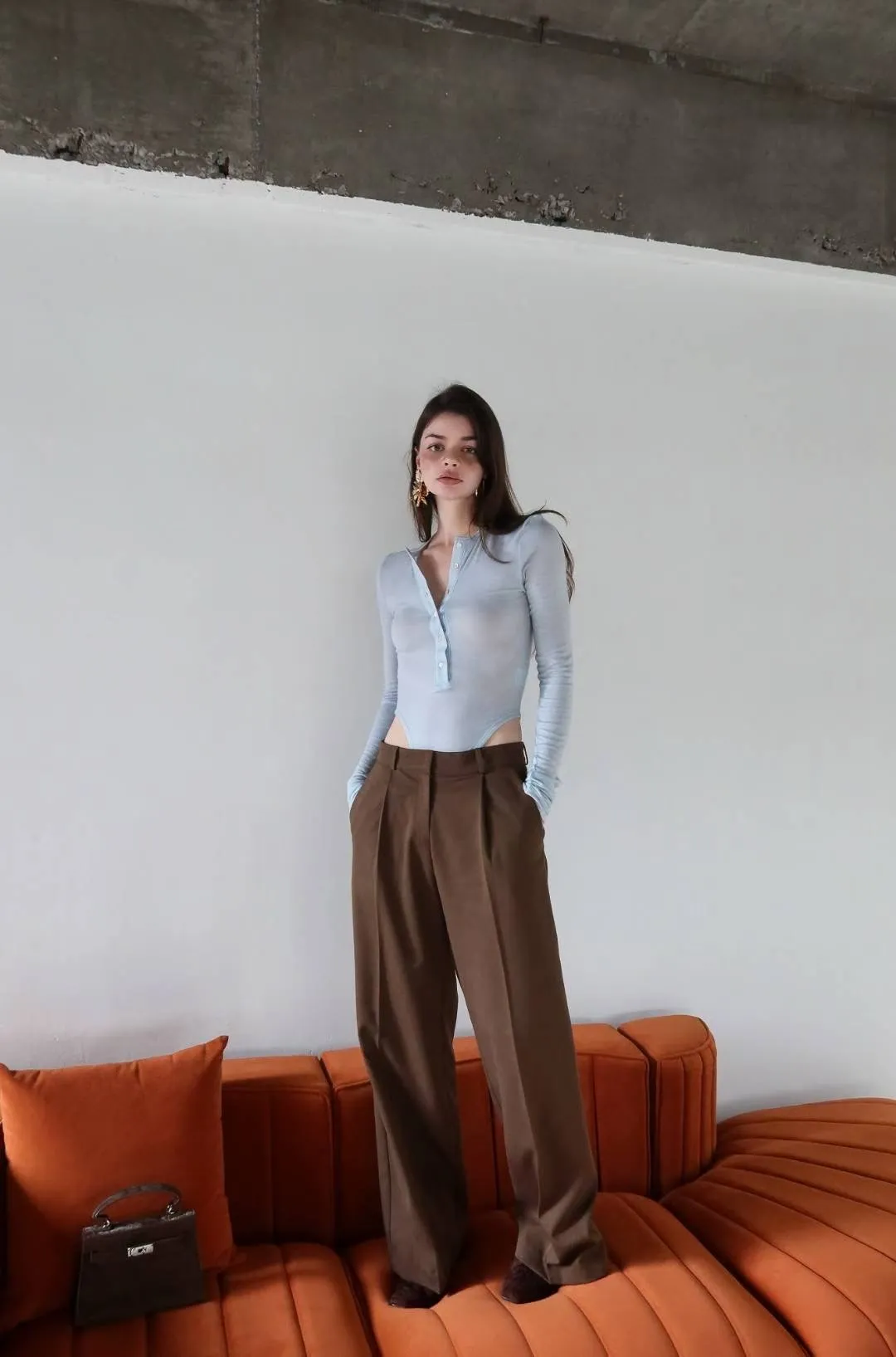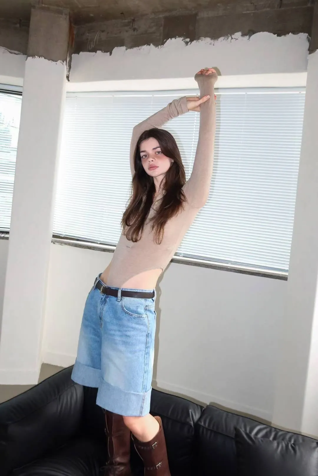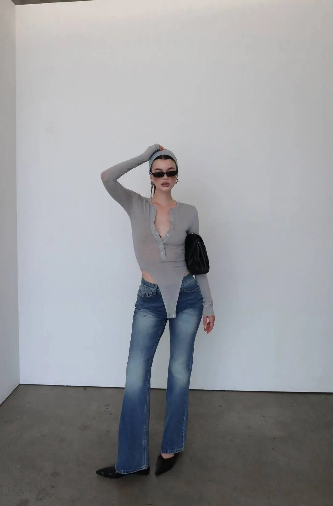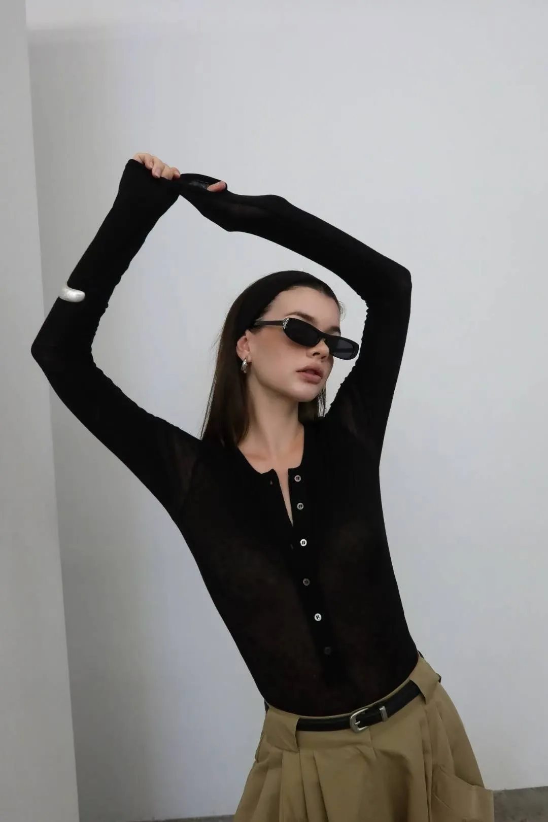 25HS15 合身彈力排釦造型挖腰長T 5色