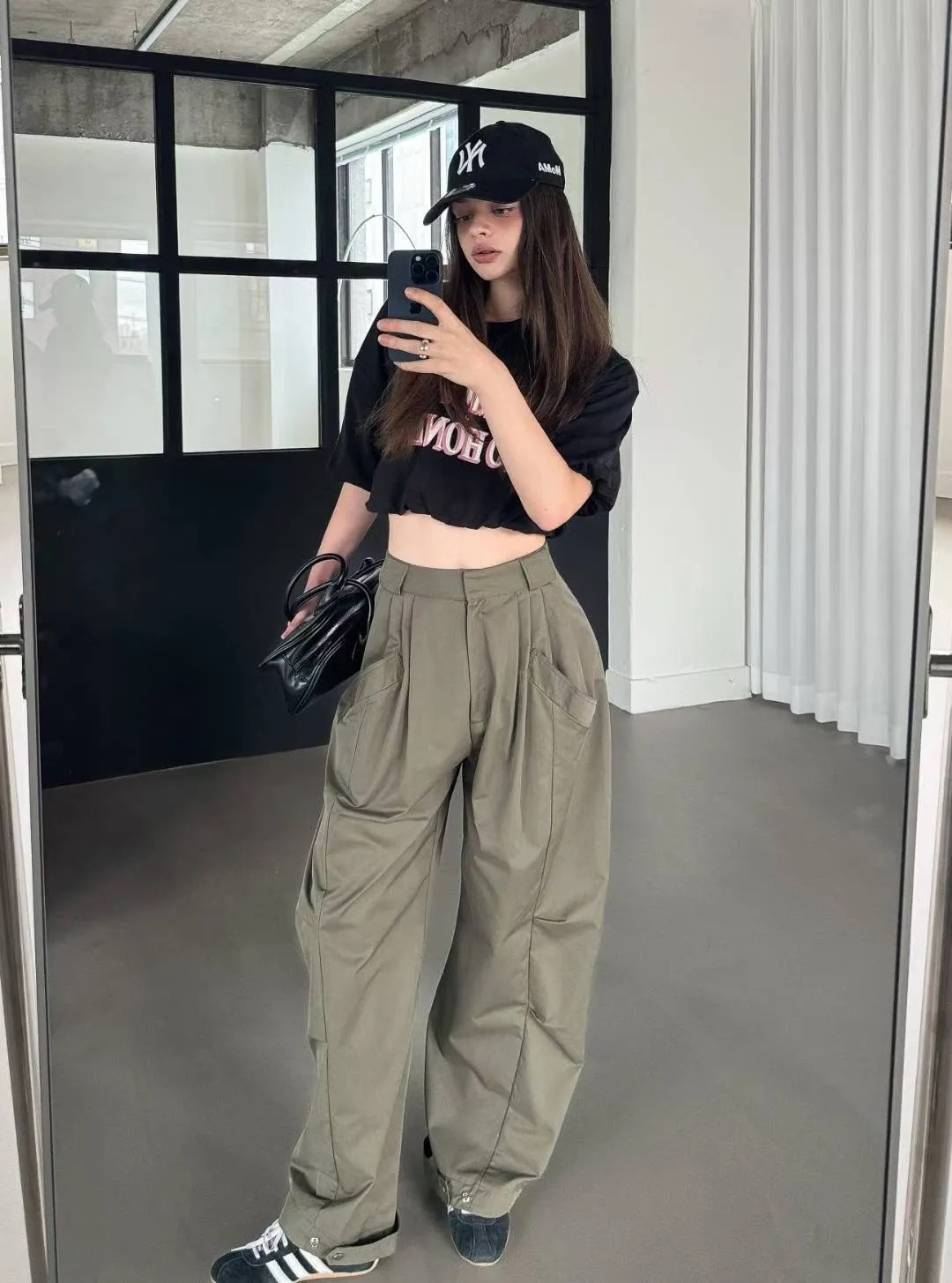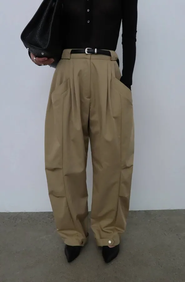 25HS17 打摺細織線挺料縮腳扣工裝褲 3色 SM