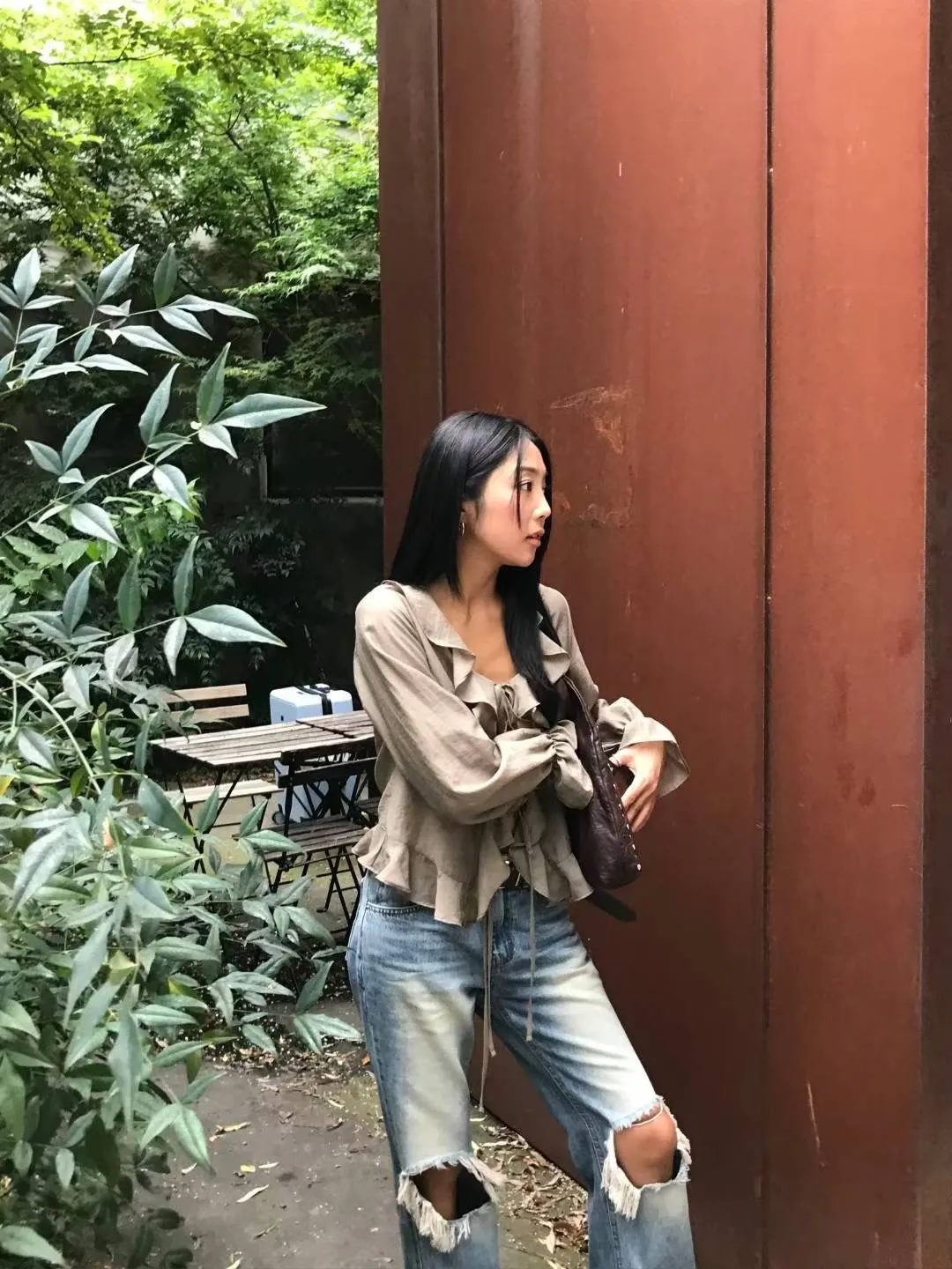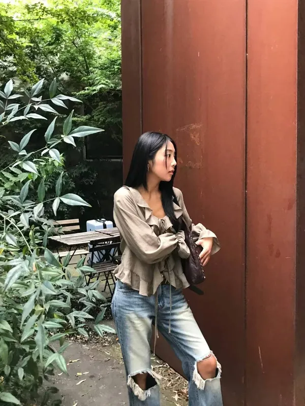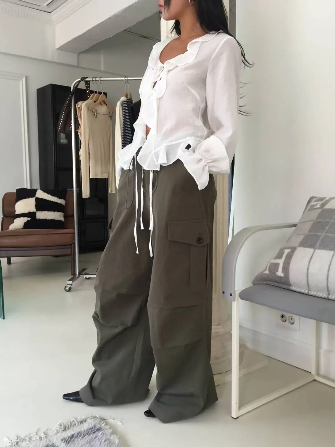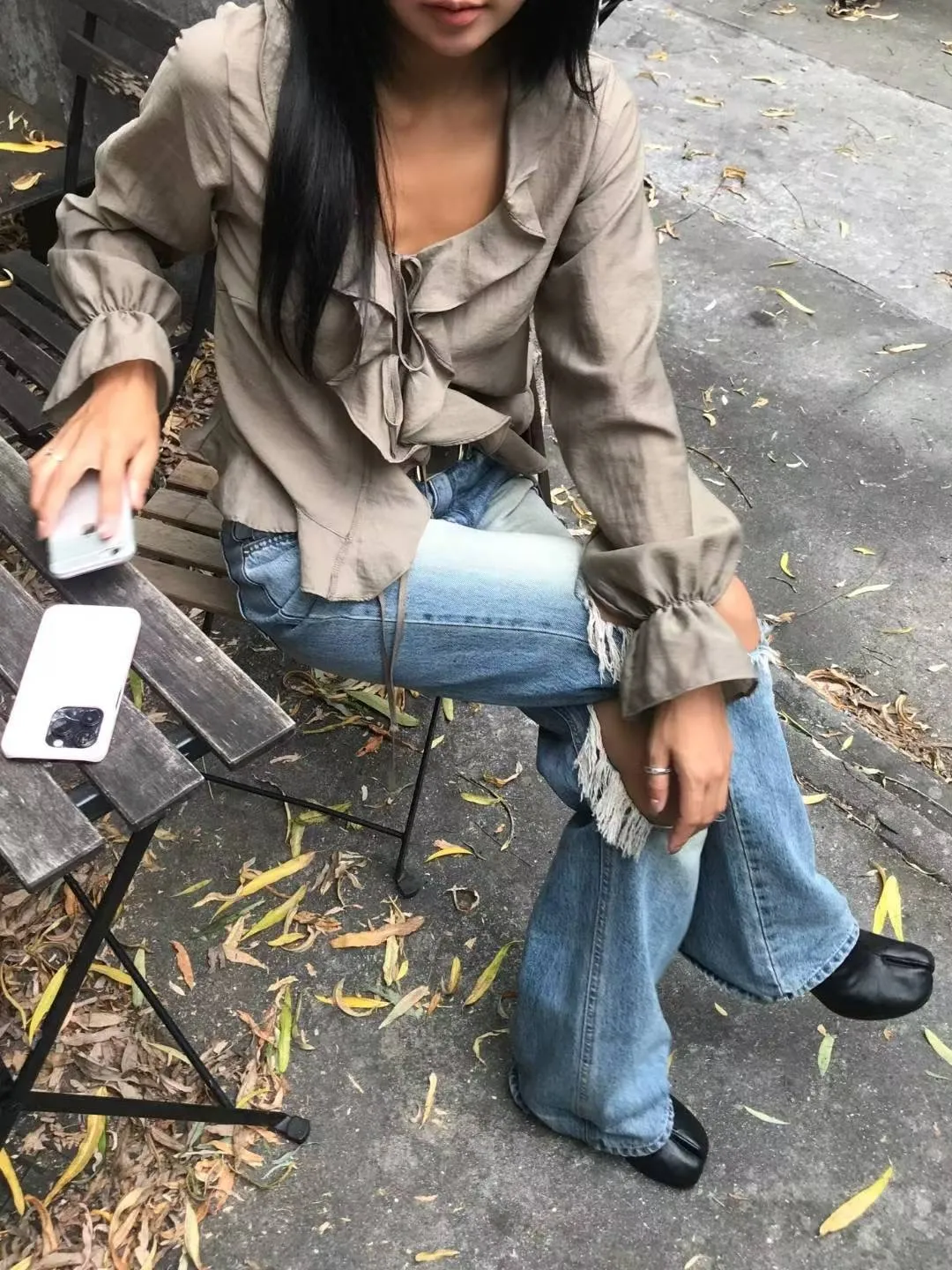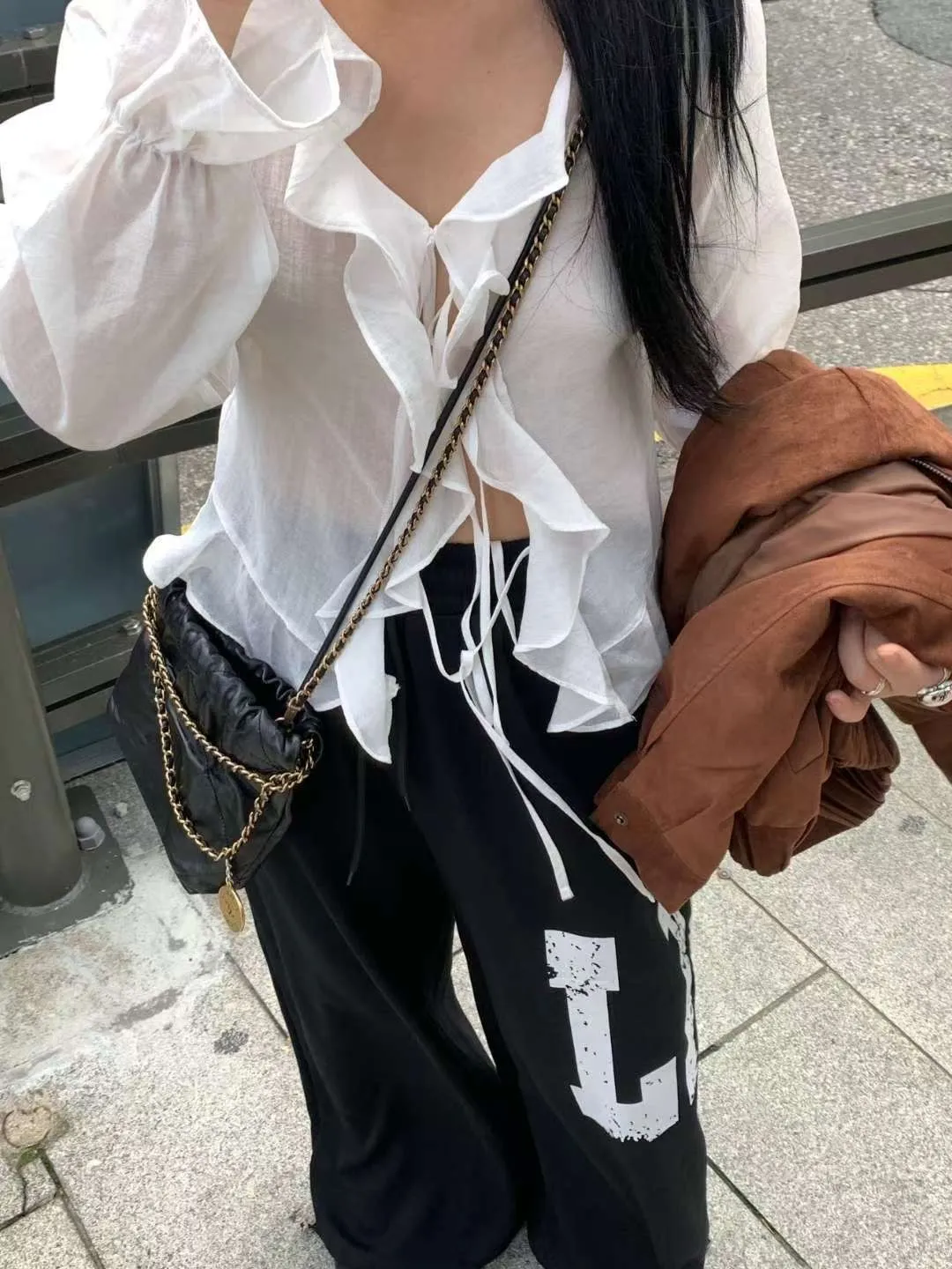 25HS18 荷葉雪紡綁帶法式上衣 3色