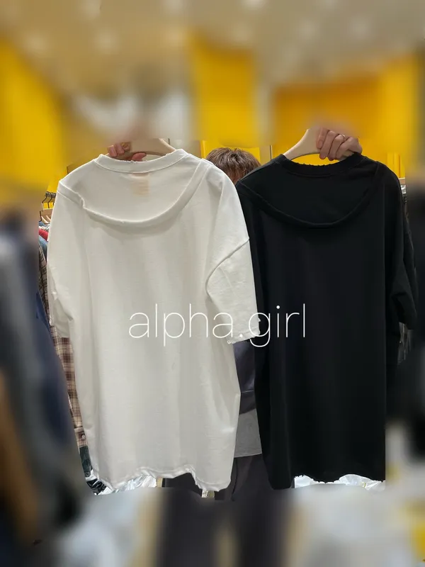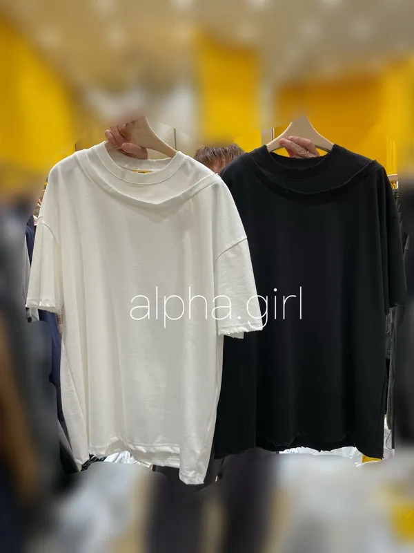 25HS45 (男裝)拼接領素色造型短T 2色