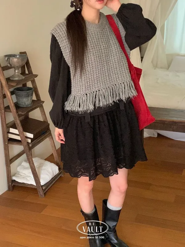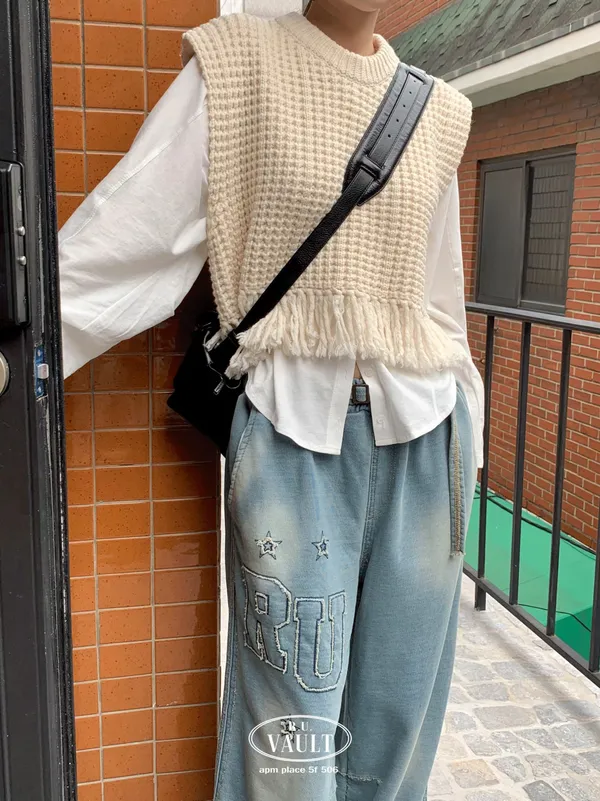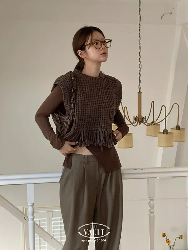 25IA13 針織羊毛60%流蘇背心 3色