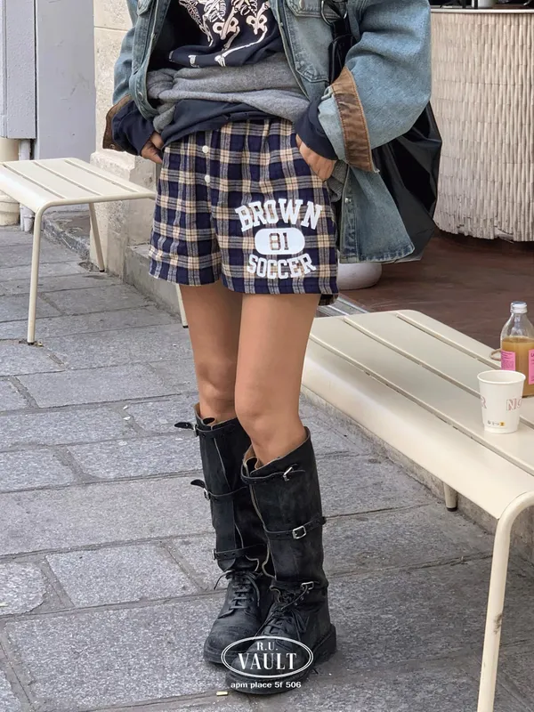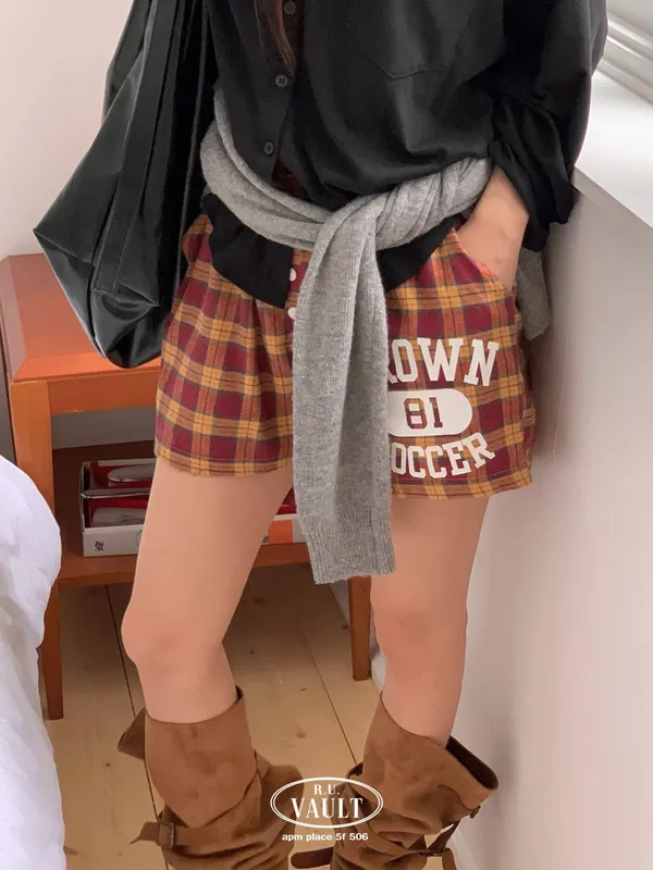 25IA17 格子紋排扣造型鬆緊短褲 2色