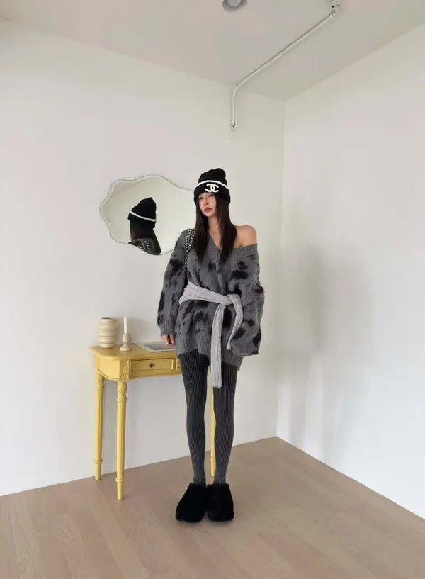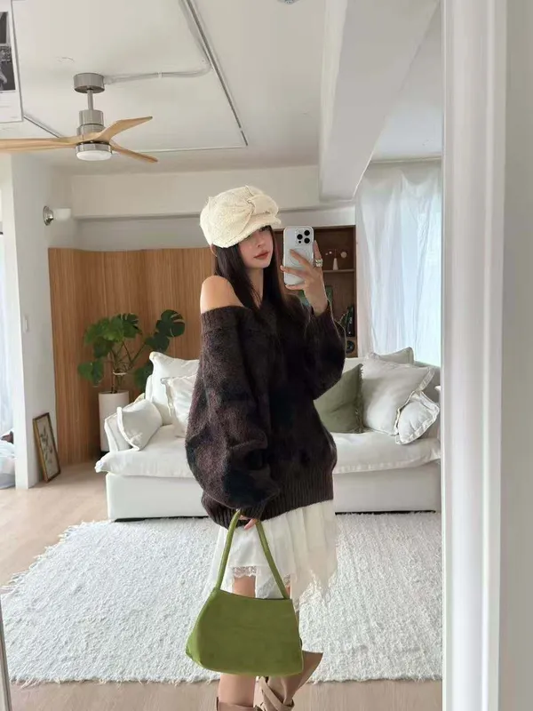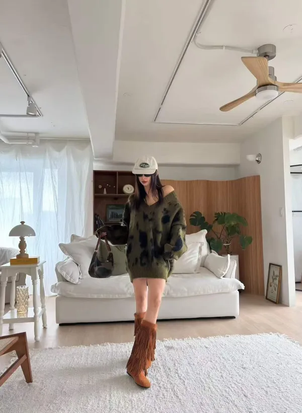 25IB12 暈染色塊毛毛V領毛衣 3色