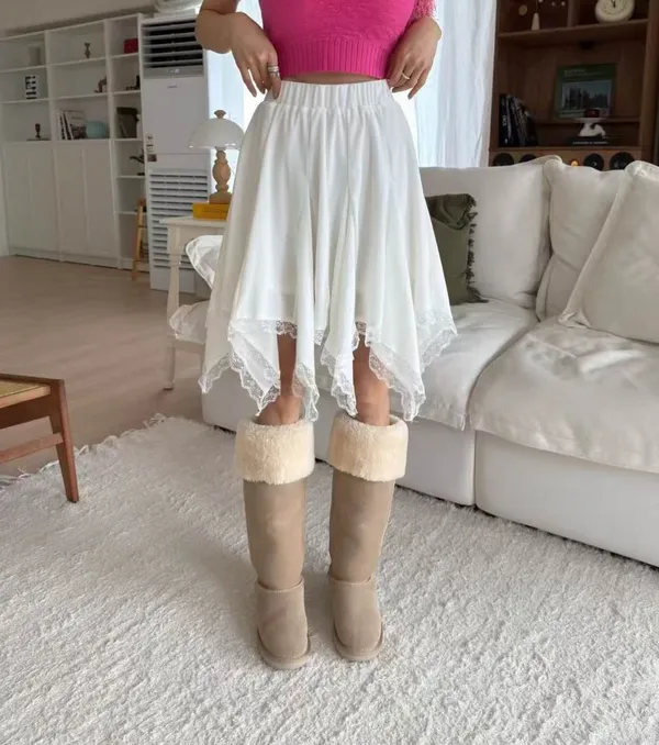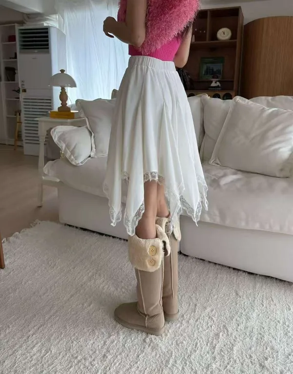 25IB16 天鵝絨拼蕾絲不規則短裙