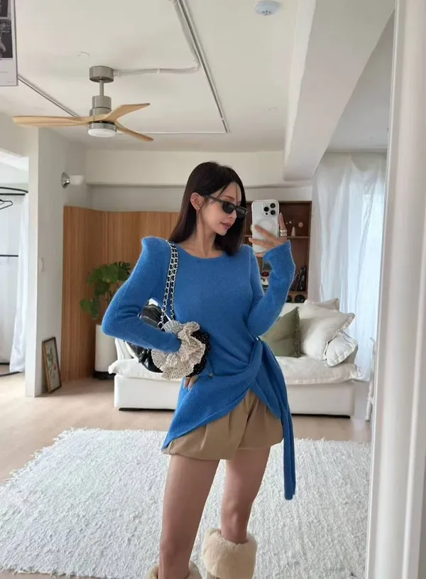 25IB19 斜交錯帶造形針織上衣 4色