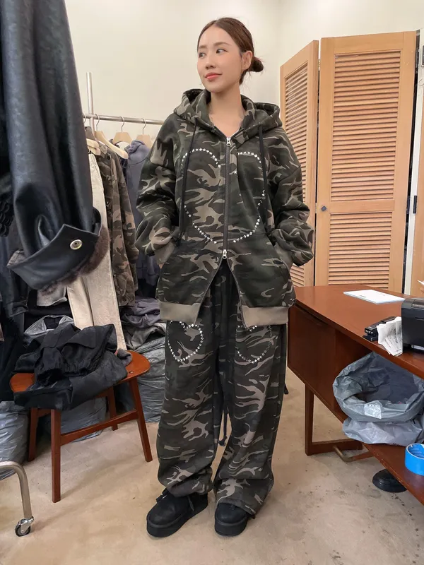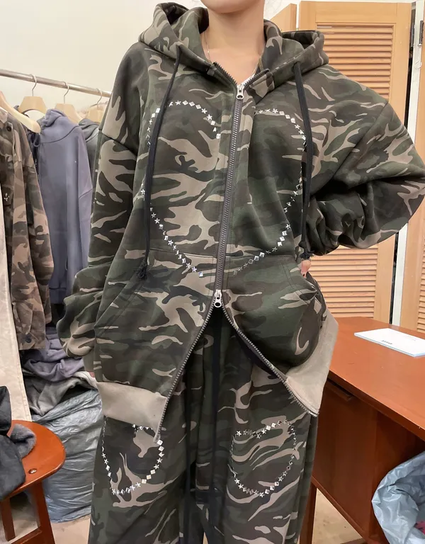 25IC06 方塊星星愛心中長版內加絨連帽外套 2色