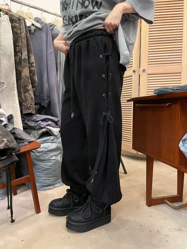 25IC11 側綁繩內加絨縮口棉長褲 2色