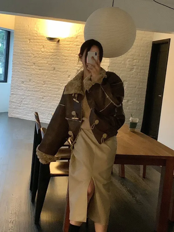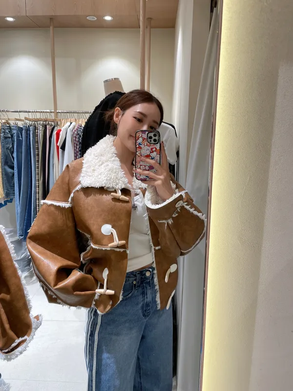 25ID03 長鬚毛毛牛角扣夾克外套 2色