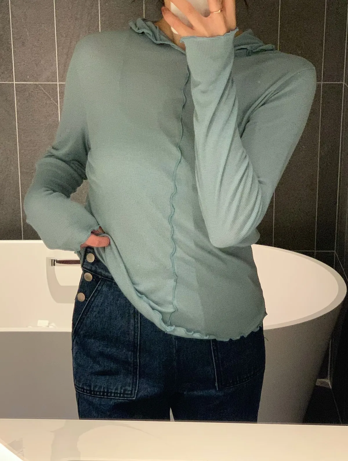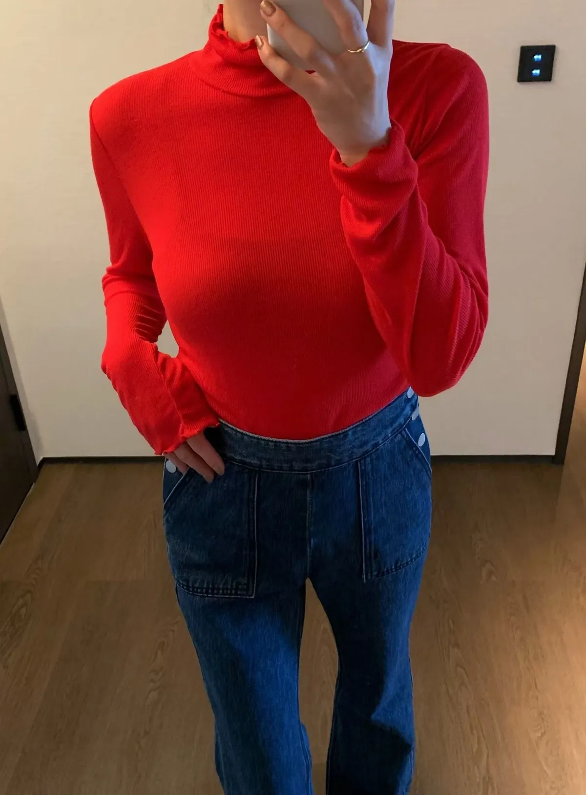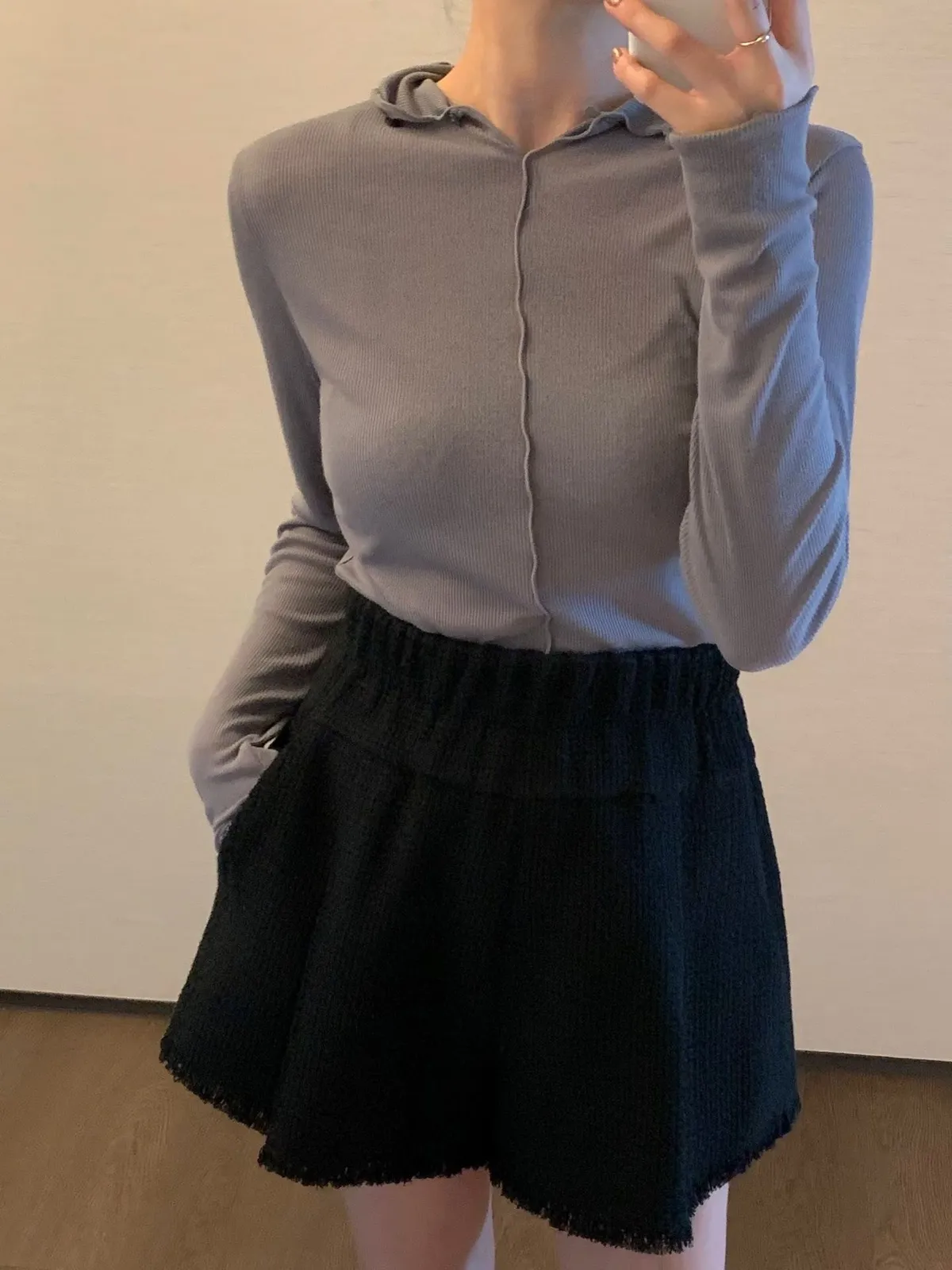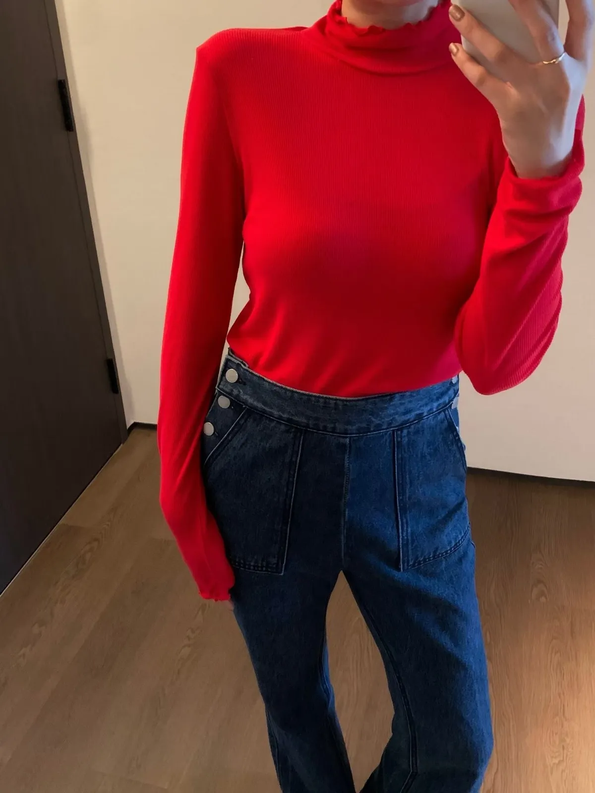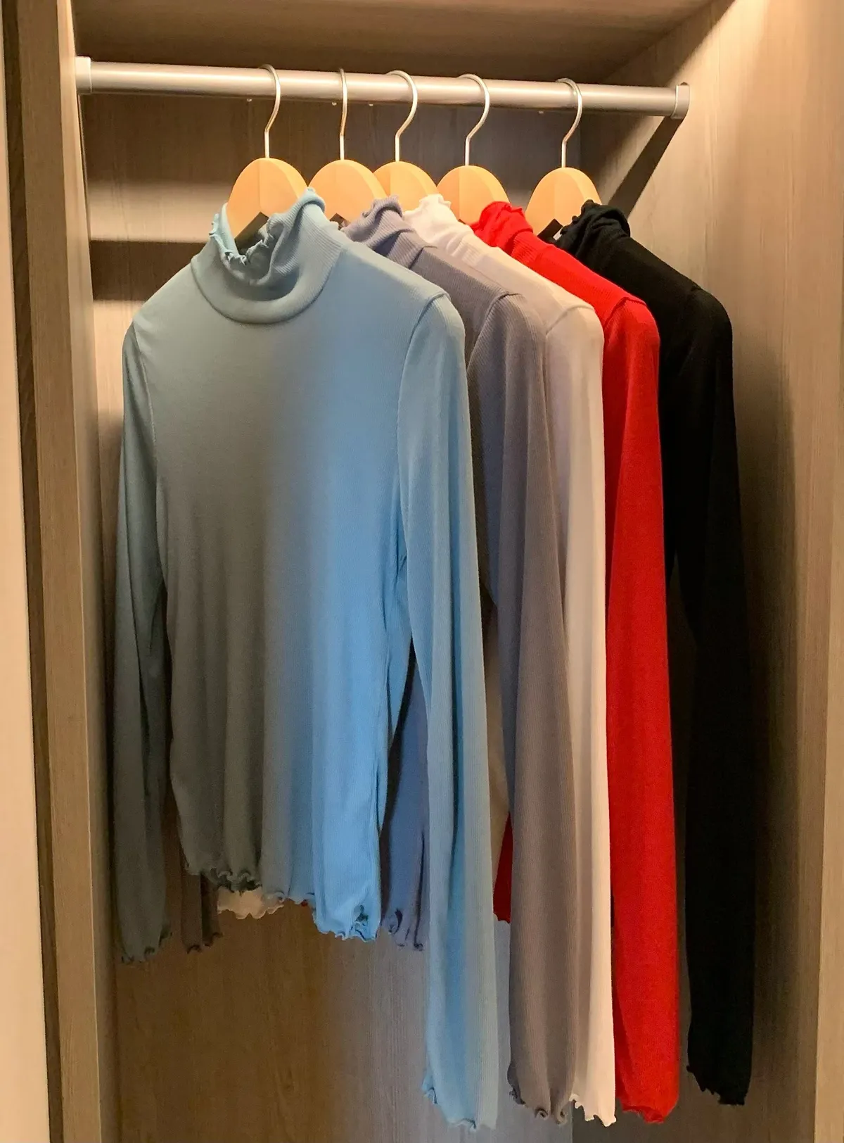 25ID07 兩面穿小高領雙扣木耳邊打底長T 5色