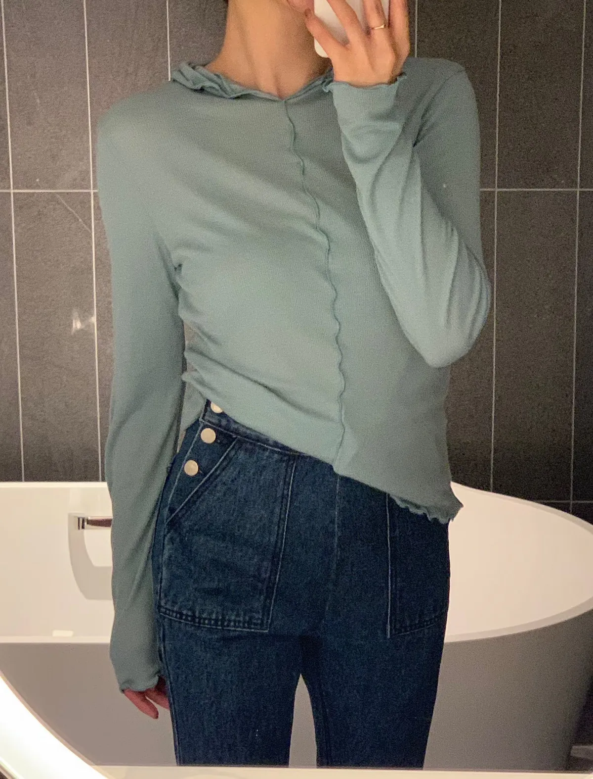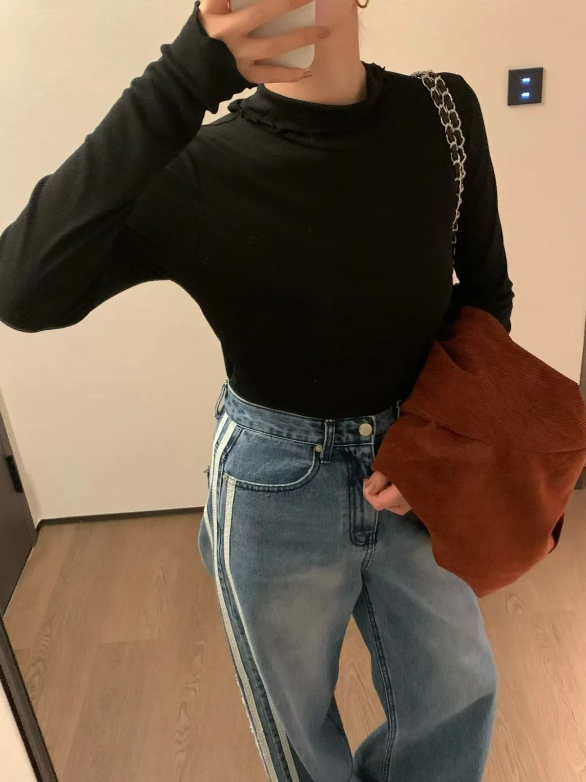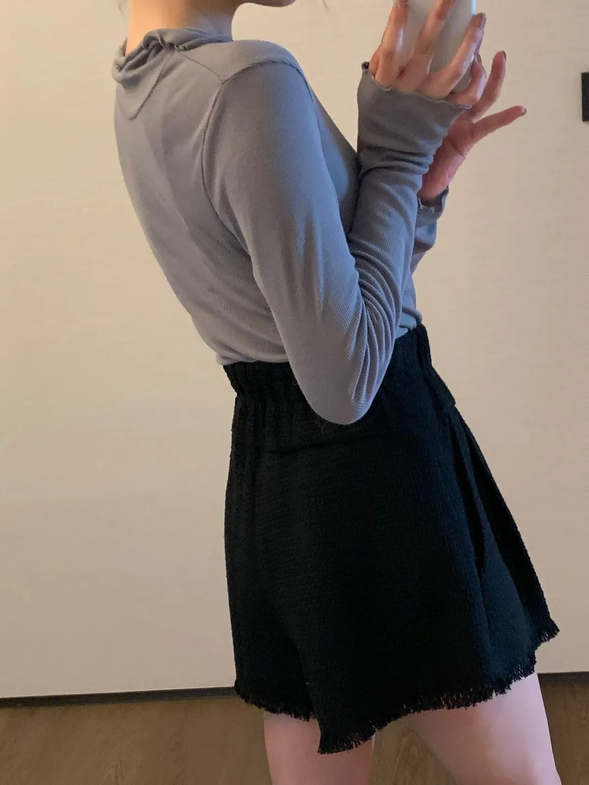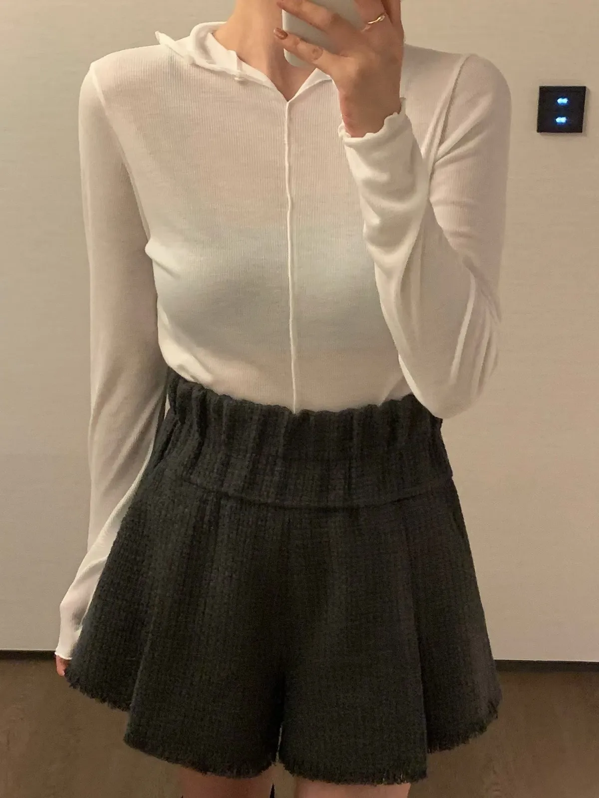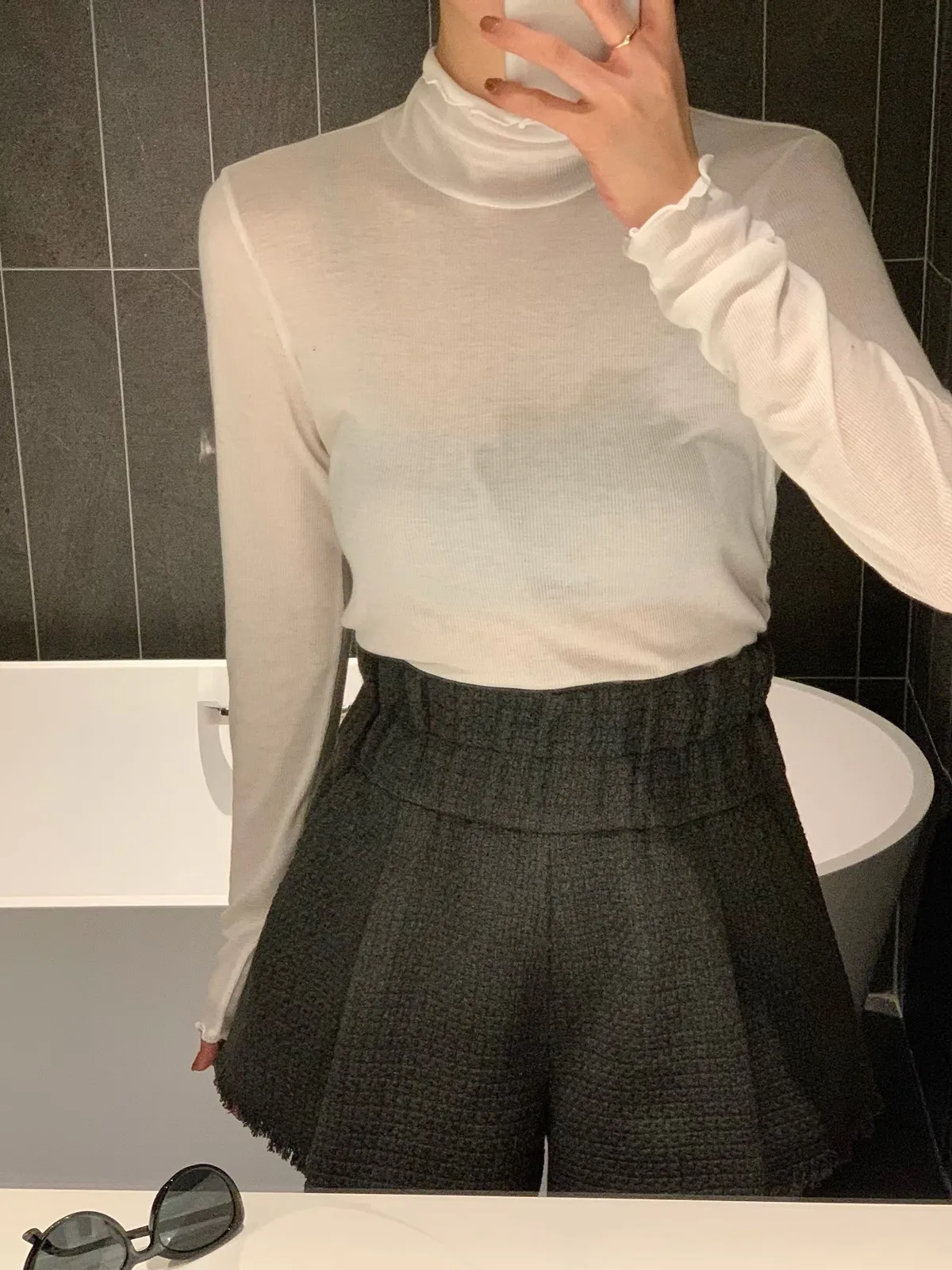 25ID07 兩面穿小高領雙扣木耳邊打底長T 5色