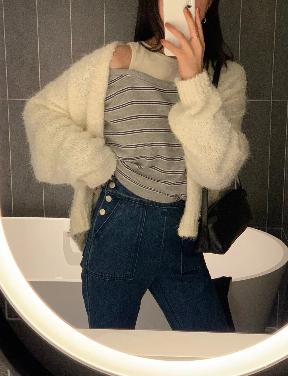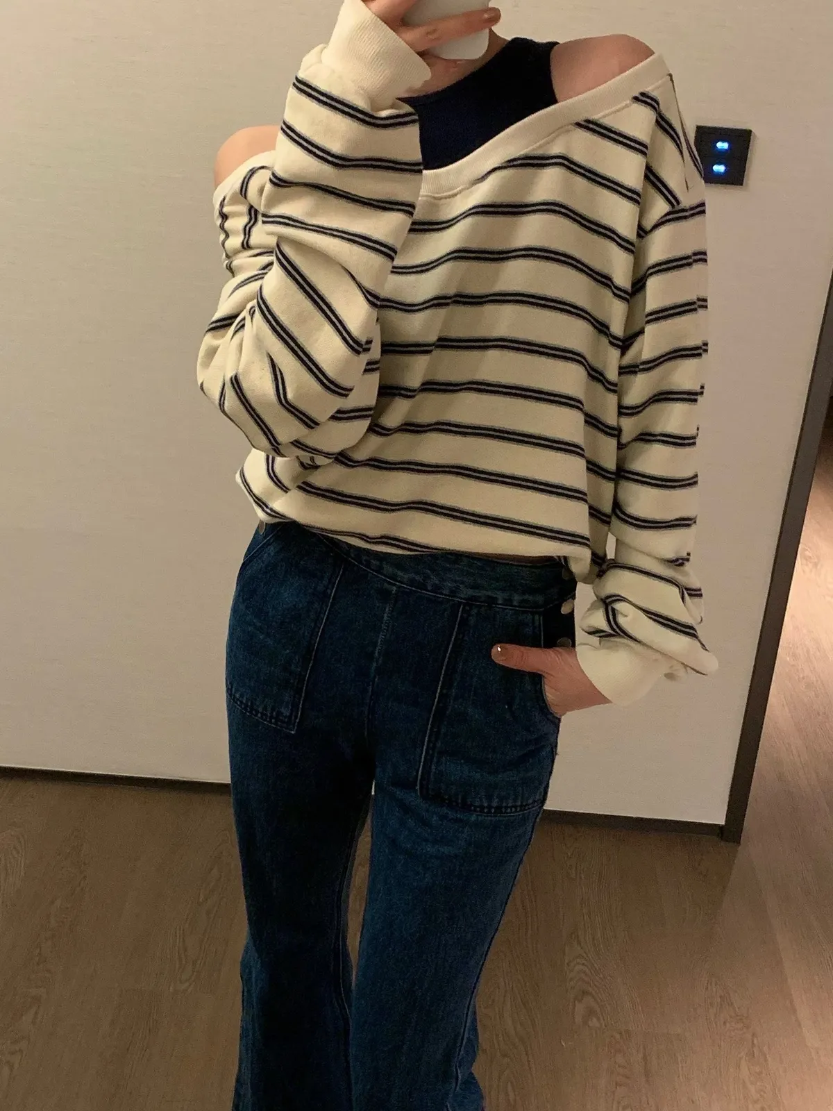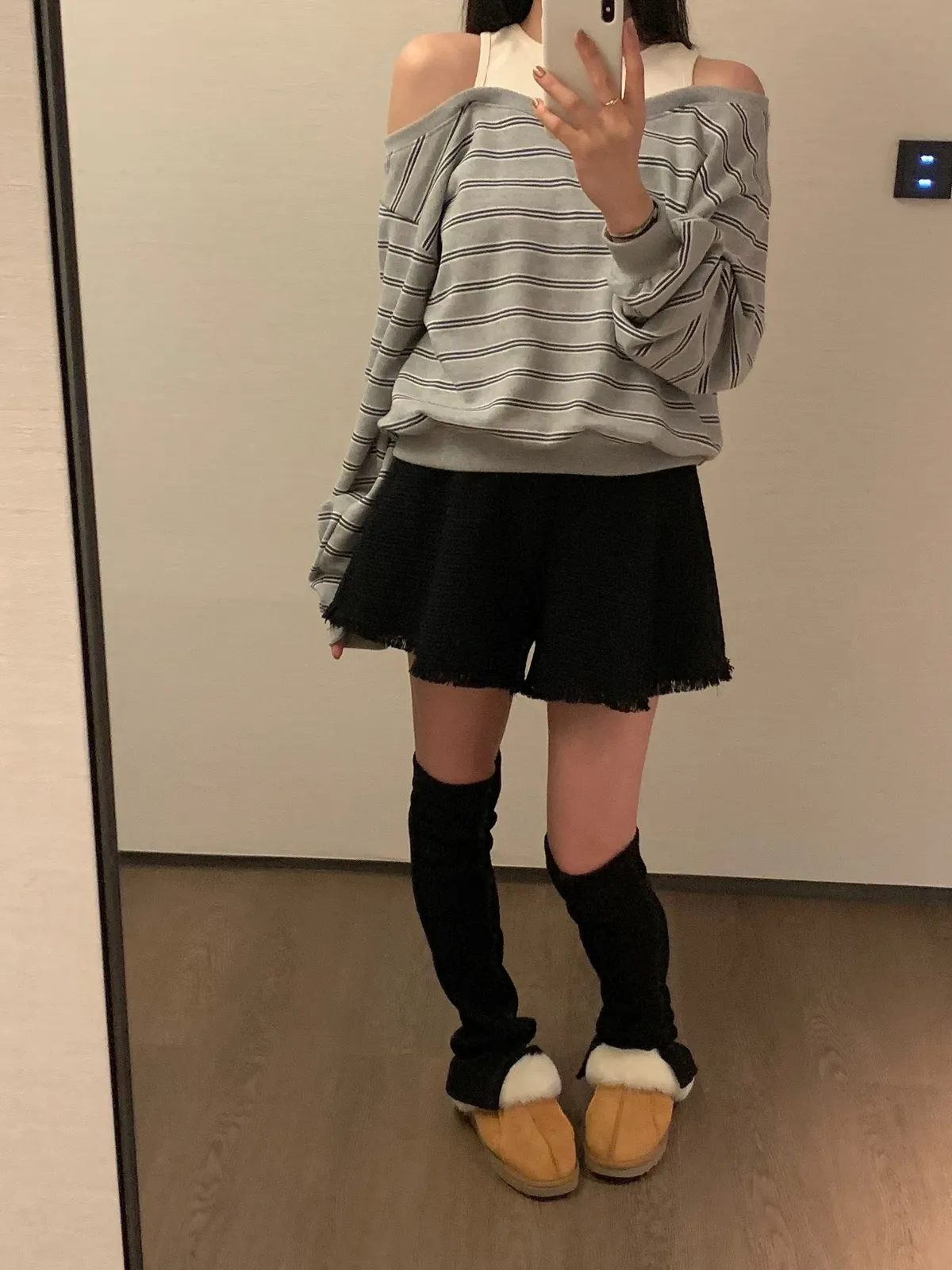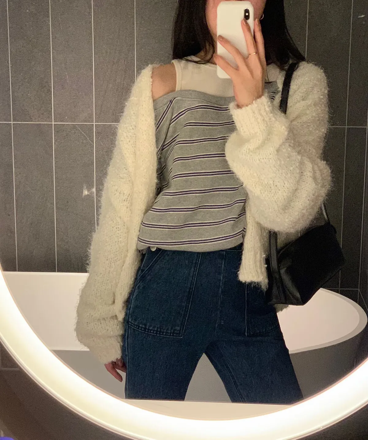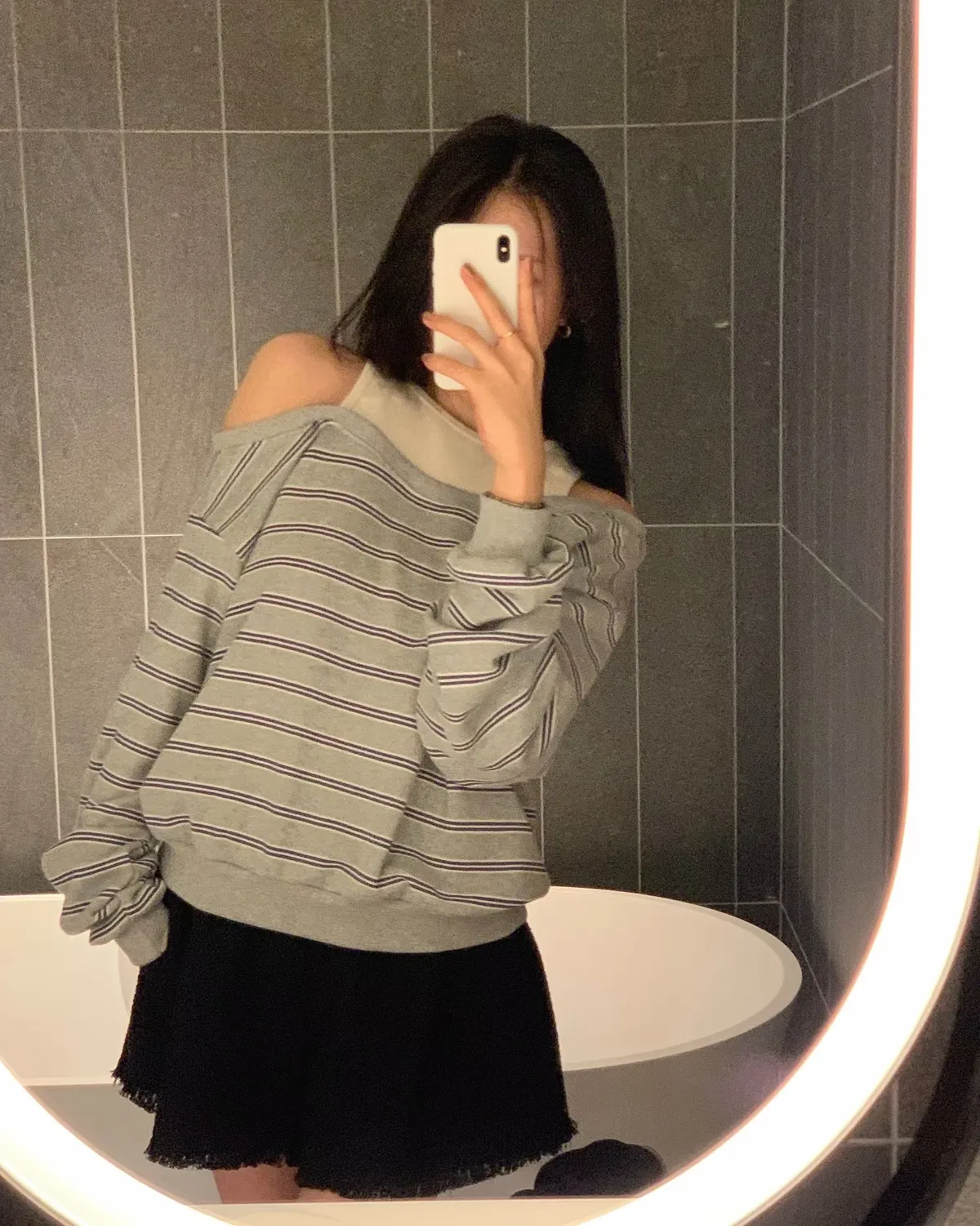 25ID22 假兩件背心條紋薄毛巾大學T 2色