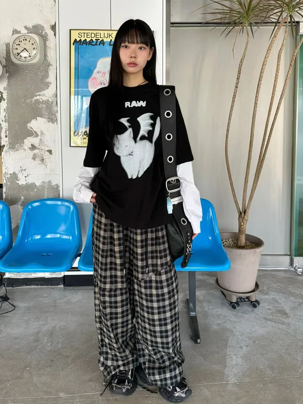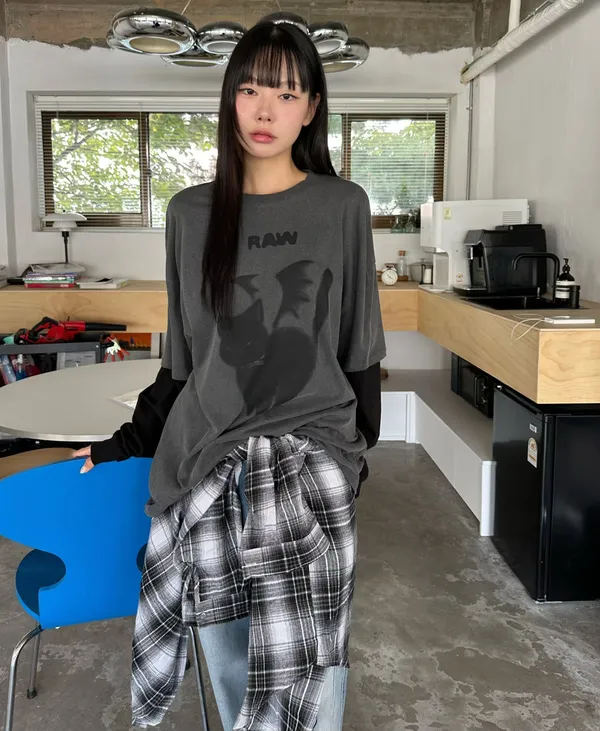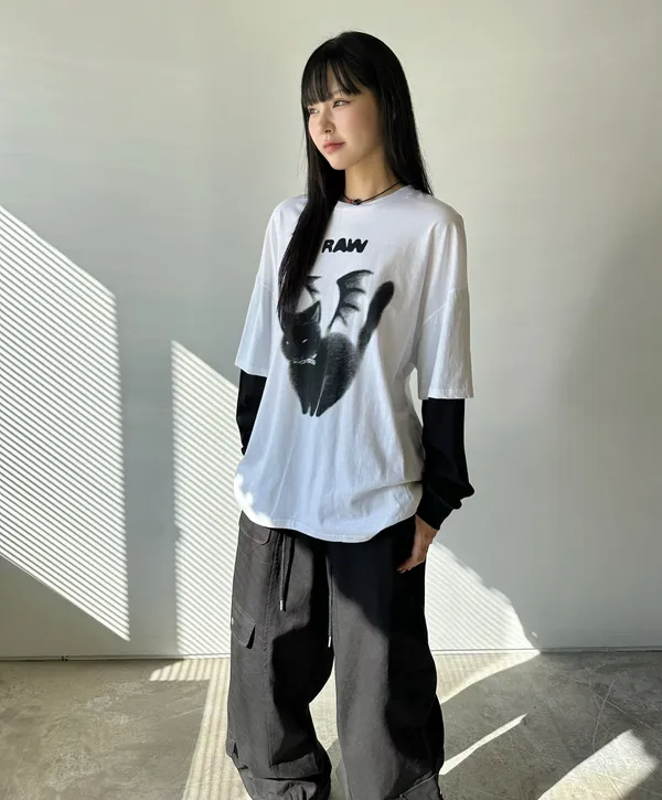 25IE01 貓咪惡魔假兩件薄棉長T 3色
