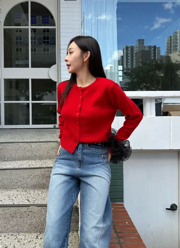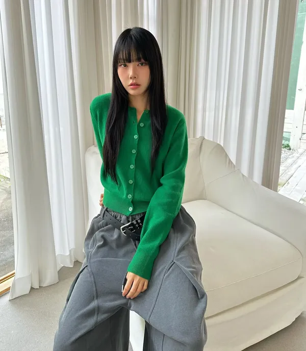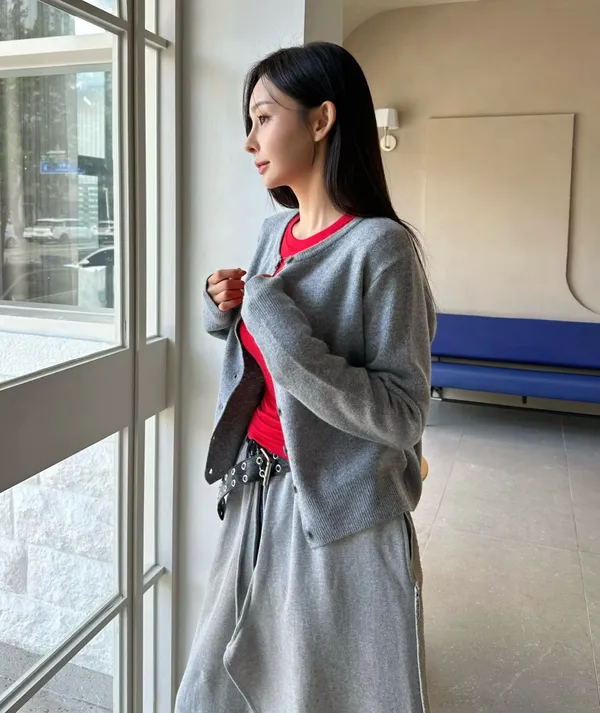 25IE10 素素克什米爾羊毛排扣針織罩衫 4色