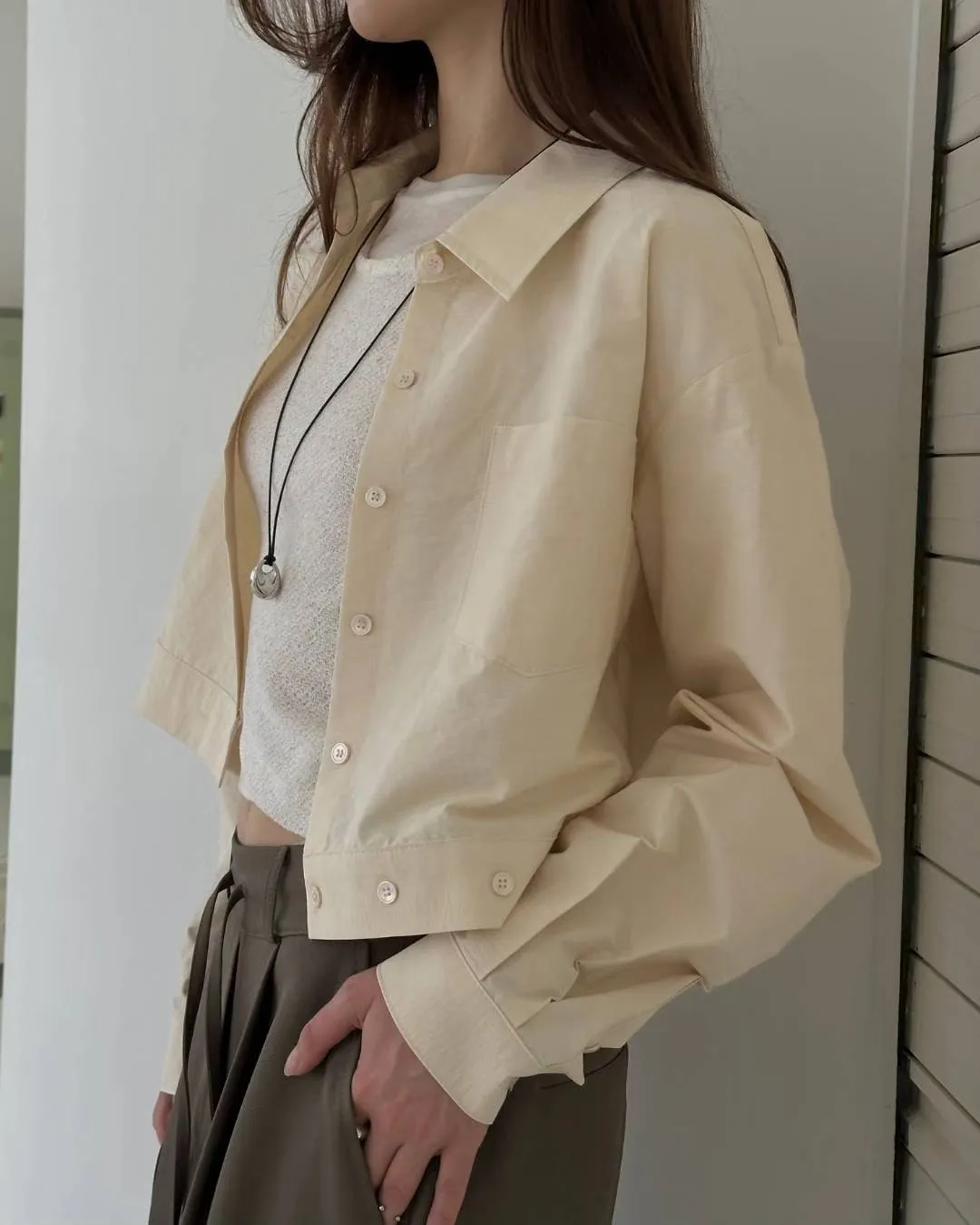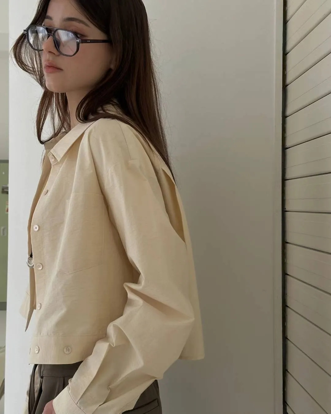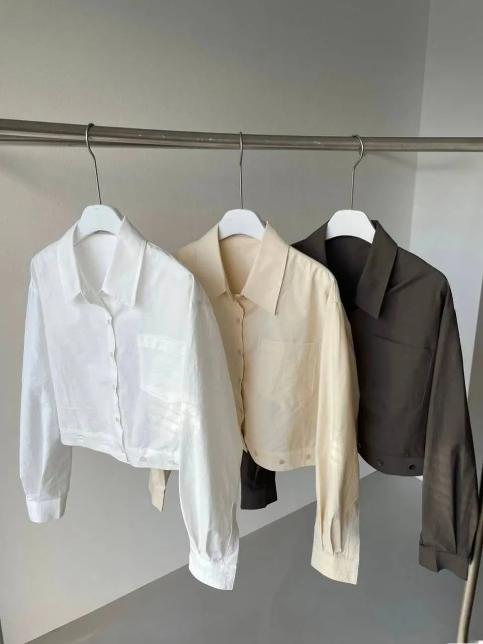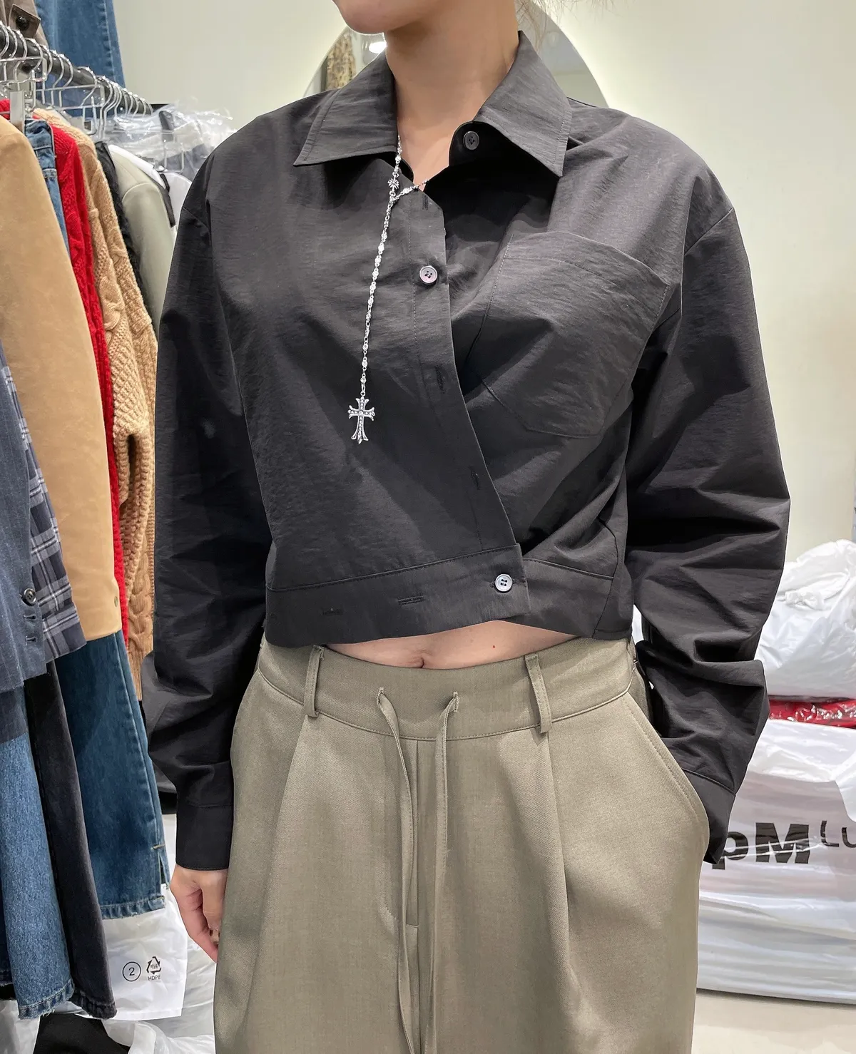 25IF01 短版滑料短版多扣造型襯衫 3色
