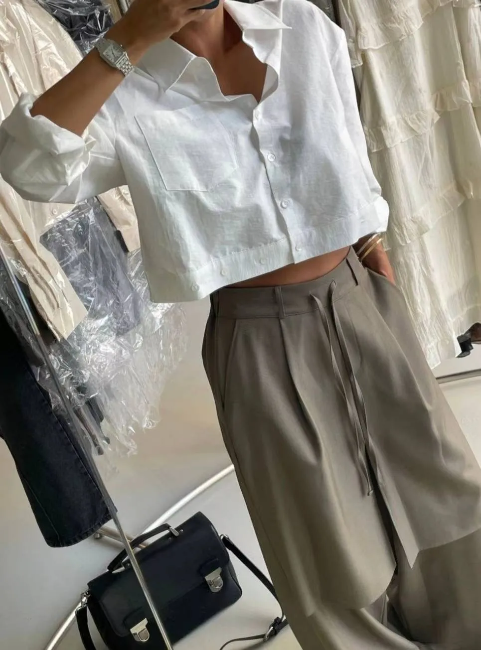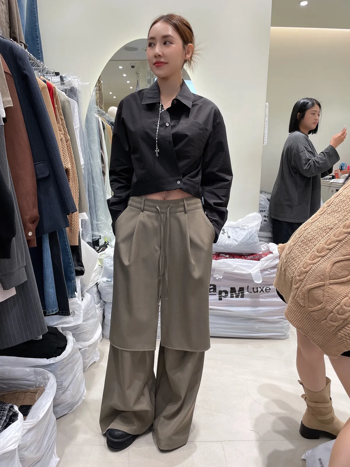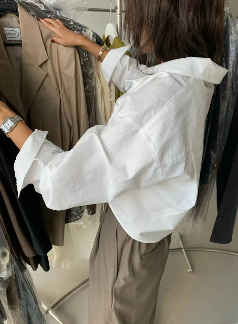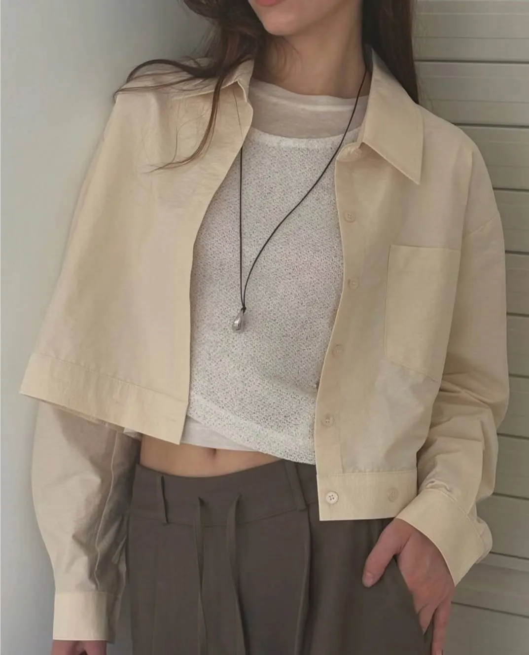 25IF01 短版滑料短版多扣造型襯衫 3色