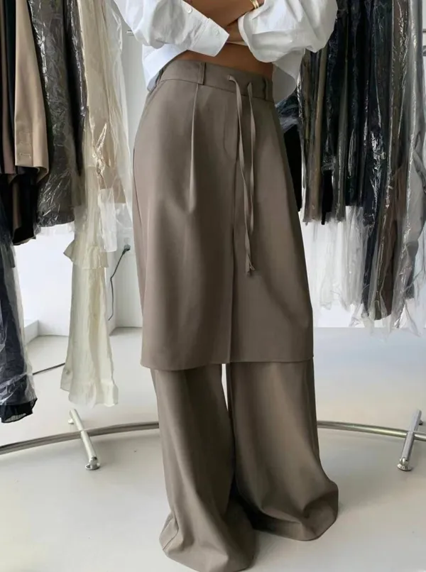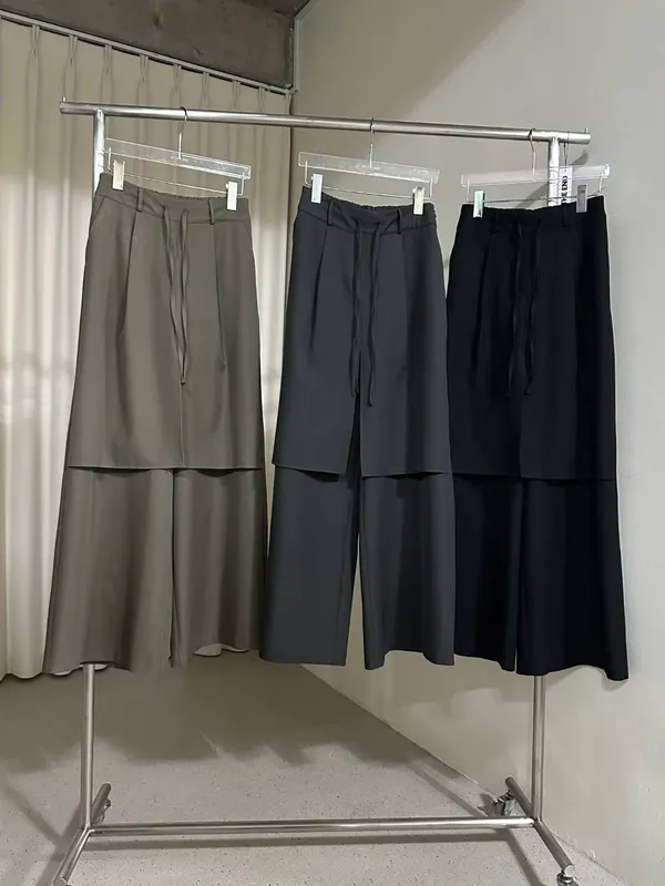 25IF02 假兩件五分開叉五分拼接西料長褲 3色