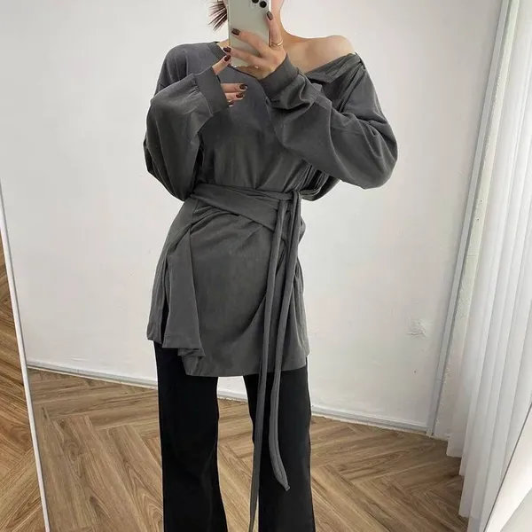 25IF06 腰綁帶中長版船領造型長T 2色