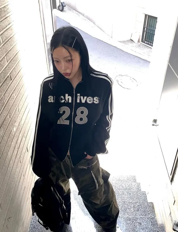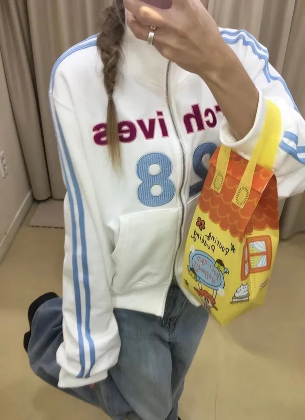 25IG09 立領邊條薄毛巾運動雙拉鍊夾克 2色
